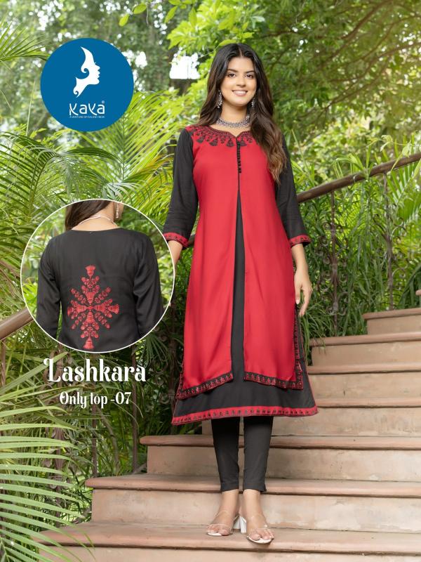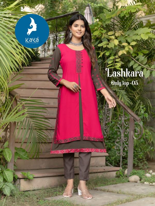 Looking for lashkara by kaya beautiful design rayon readymade long top for girls Full Catalouge at Best Price? Buy Now lashkara by kaya beautiful design rayon readymade long top for girls at Wholesale Rate of Rs 4480 with Total 8 Pcs from authroized dealer and supplier of Kaya Brand. Cost of Each piece is just only Rs 560 which is very low and affordable price to resale the product in your retail store. rrgandhi is Surat based Wholesale Supplier & Dealer of Kaya Brand. Click on Brand name to Know more about Brand's products.