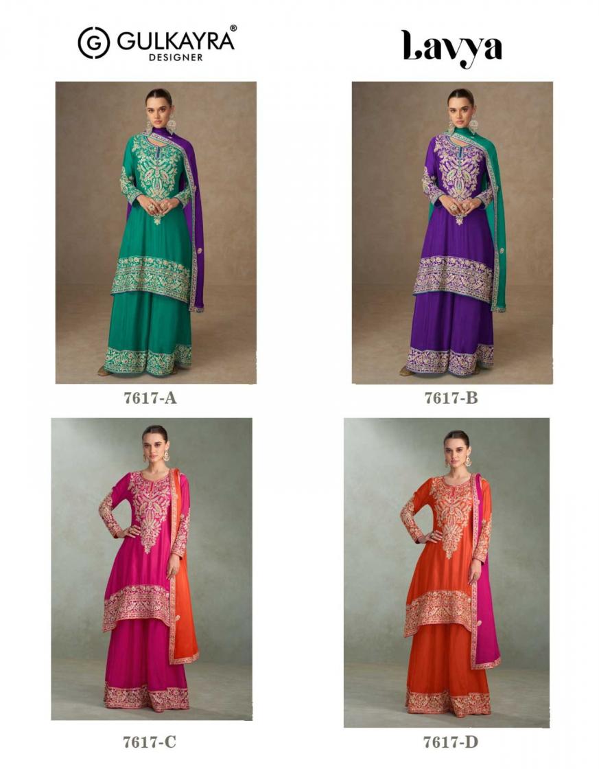 Looking for LAVYA BY GULKAYRA DESIGNER CHINON FULL STITCH FESTIVE PLAZZO DRESS Full Catalouge at Best Price? Buy Now LAVYA BY GULKAYRA DESIGNER CHINON FULL STITCH FESTIVE PLAZZO DRESS at Wholesale Rate of Rs 10780 with Total 4 Pcs from authroized dealer and supplier of Gulkayra Designer Brand. Cost of Each piece is just only Rs 2695 which is very low and affordable price to resale the product in your retail store. rrgandhi is Surat based Wholesale Supplier & Dealer of Gulkayra Designer Brand. Click on Brand name to Know more about Brand's products.