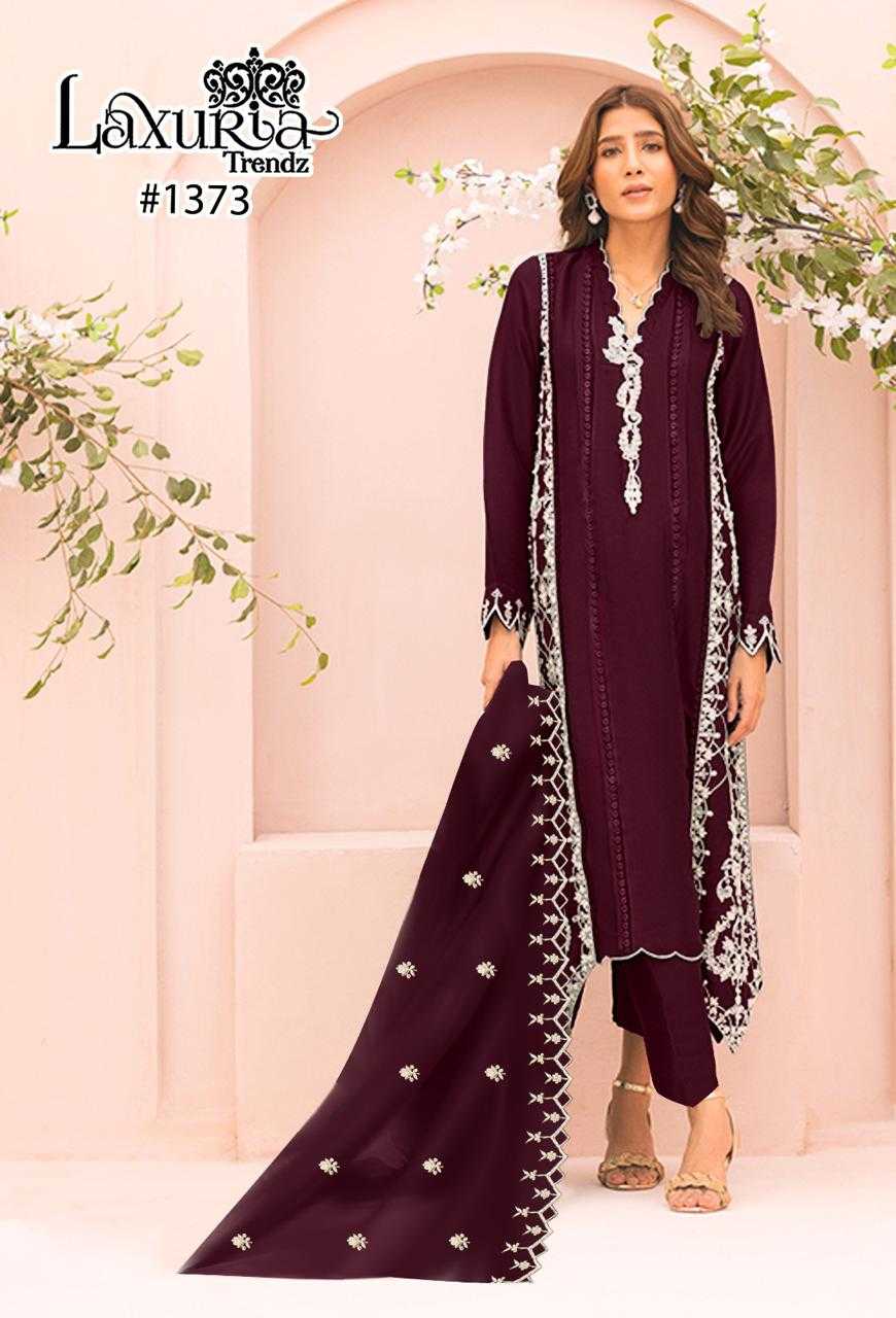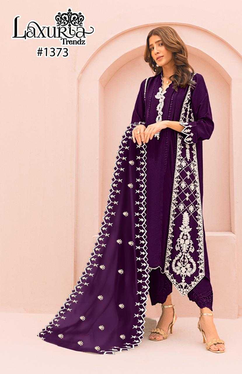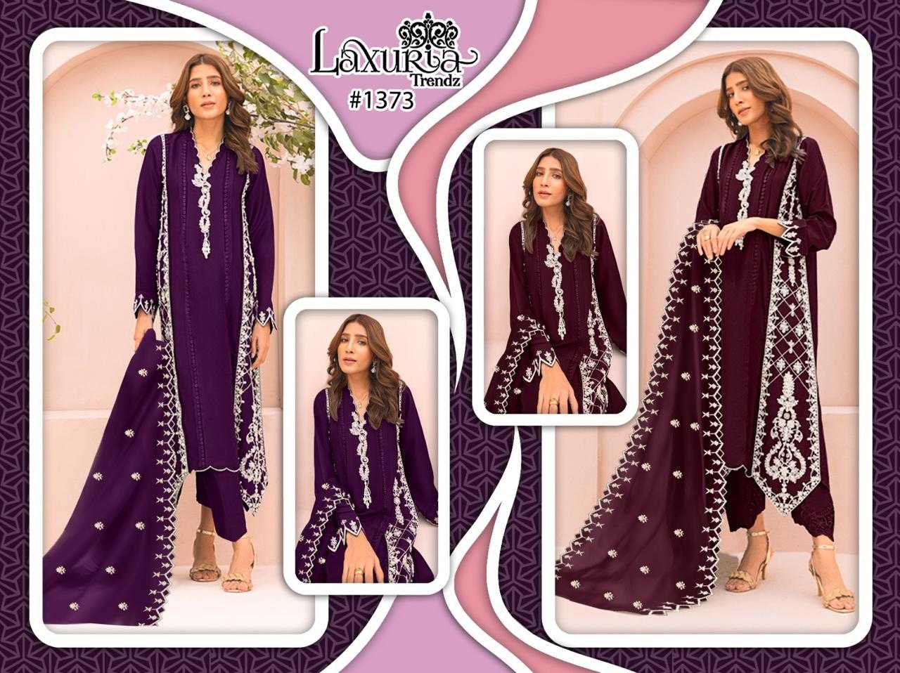 Looking for laxuria 1373 designer party wear georgette with handwork Pakistani ethnic style full stitch salwar kameez Full Catalouge at Best Price? Buy Now laxuria 1373 designer party wear georgette with handwork Pakistani ethnic style full stitch salwar kameez at Wholesale Rate of Rs 6200 with Total 4 Pcs from authroized dealer and supplier of Laxuria Trendz Brand. Cost of Each piece is just only Rs 1550 which is very low and affordable price to resale the product in your retail store. rrgandhi is Surat based Wholesale Supplier & Dealer of Laxuria Trendz Brand. Click on Brand name to Know more about Brand's products.