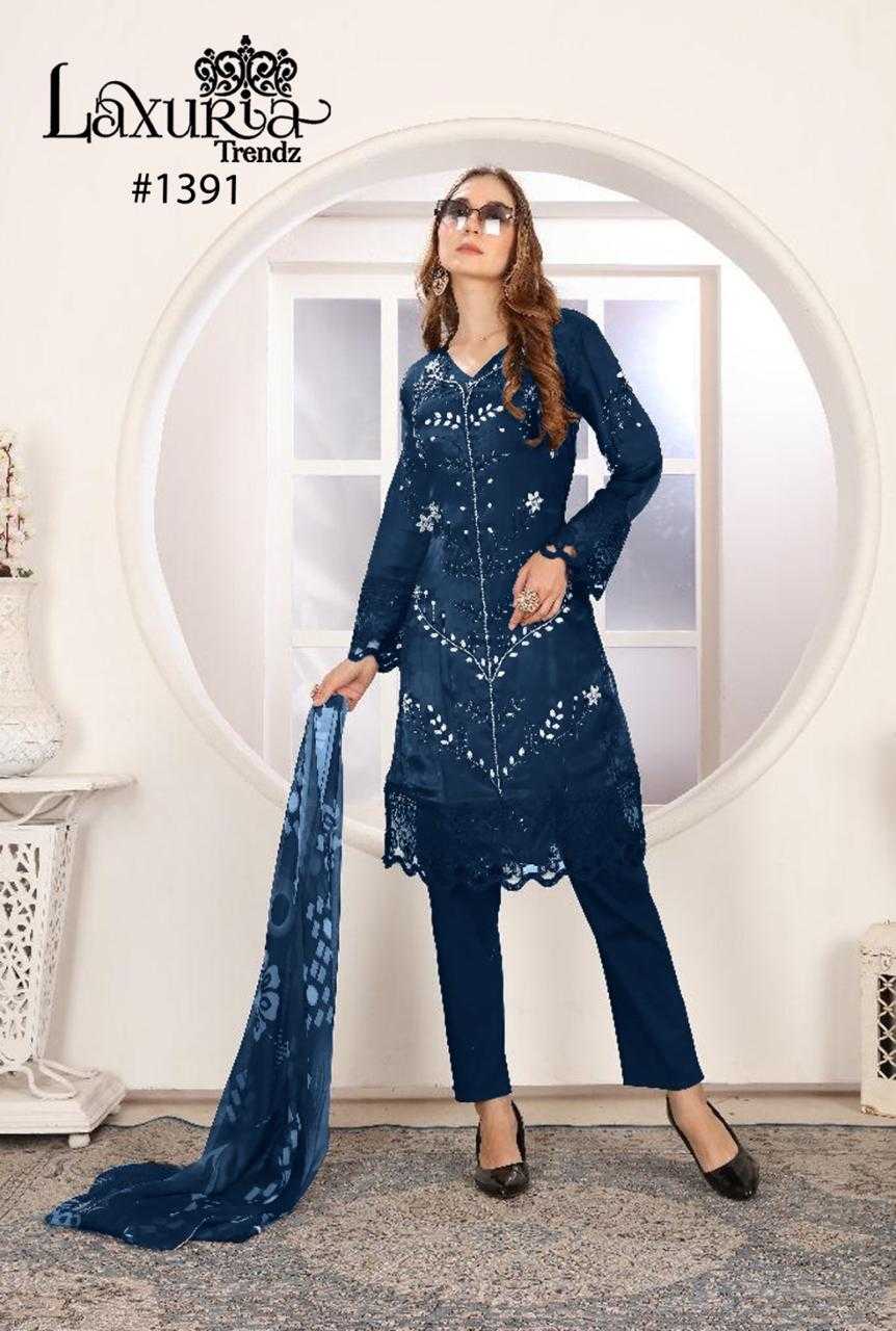 Looking for laxuria 1391 stylish wear readymade satin pakistani salwar suit Full Catalouge at Best Price? Buy Now laxuria 1391 stylish wear readymade satin pakistani salwar suit at Wholesale Rate of Rs 16200 with Total 9 Pcs from authroized dealer and supplier of Laxuria Trendz Brand. Cost of Each piece is just only Rs 1800 which is very low and affordable price to resale the product in your retail store. rrgandhi is Surat based Wholesale Supplier & Dealer of Laxuria Trendz Brand. Click on Brand name to Know more about Brand's products.