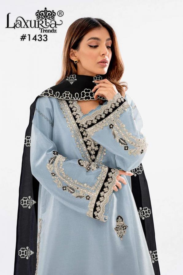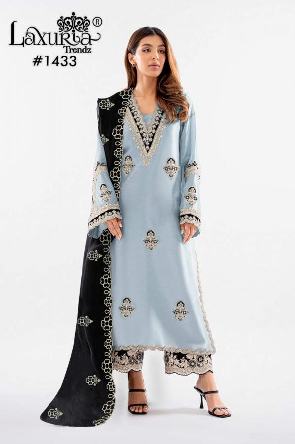 Looking for LAXURIA TRENDZ 1433 FULLY STITCH SHOP TRENDY PAKISTANI 3PCS DRESS Full Catalouge at Best Price? Buy Now LAXURIA TRENDZ 1433 FULLY STITCH SHOP TRENDY PAKISTANI 3PCS DRESS at Wholesale Rate of Rs 19800 with Total 12 Pcs from authroized dealer and supplier of Laxuria Trendz Brand. Cost of Each piece is just only Rs 1650 which is very low and affordable price to resale the product in your retail store. rrgandhi is Surat based Wholesale Supplier & Dealer of Laxuria Trendz Brand. Click on Brand name to Know more about Brand's products.