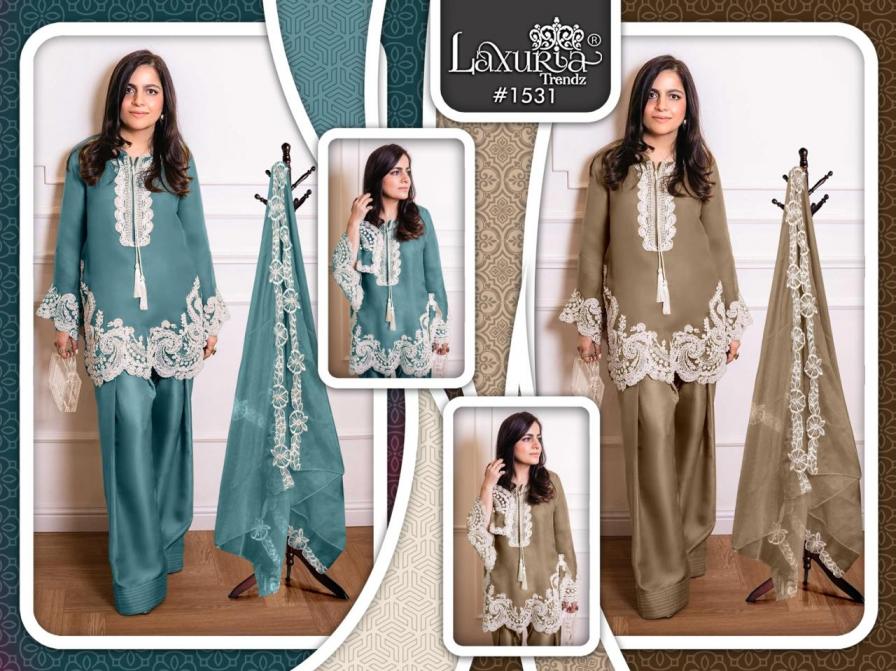 Looking for LAXURIA TRENDZ 1531 STYLISH VICHITRA FULL STITCH PAKISTANI SUITS Full Catalouge at Best Price? Buy Now LAXURIA TRENDZ 1531 STYLISH VICHITRA FULL STITCH PAKISTANI SUITS at Wholesale Rate of Rs 9000 with Total 6 Pcs from authroized dealer and supplier of Laxuria Trendz Brand. Cost of Each piece is just only Rs 1500 which is very low and affordable price to resale the product in your retail store. rrgandhi is Surat based Wholesale Supplier & Dealer of Laxuria Trendz Brand. Click on Brand name to Know more about Brand's products.