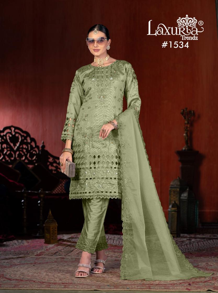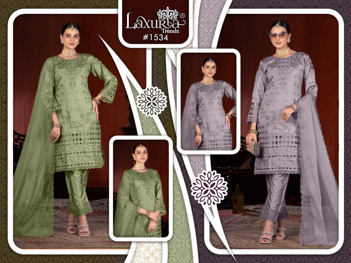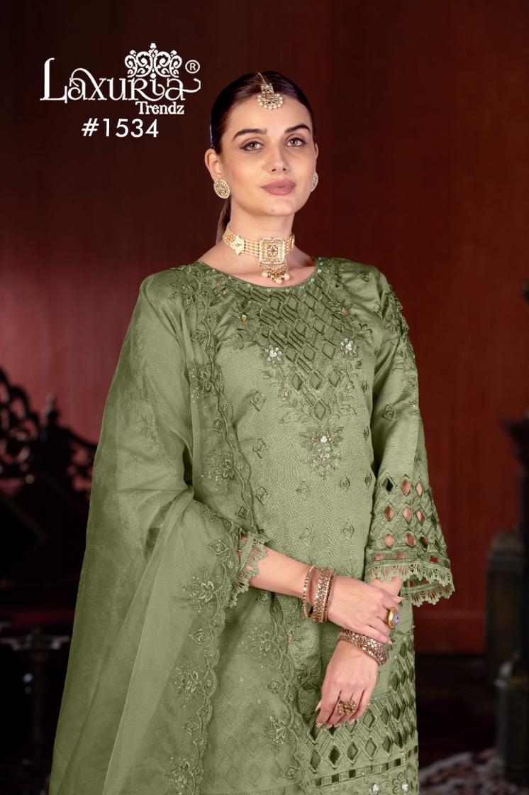 Looking for LAXURIA TRENDZ 1534 VICHITRA NEW DESIGN READYMADE PAKISTANI SUITS 2025 Full Catalouge at Best Price? Buy Now LAXURIA TRENDZ 1534 VICHITRA NEW DESIGN READYMADE PAKISTANI SUITS 2025 at Wholesale Rate of Rs 9900 with Total 6 Pcs from authroized dealer and supplier of Laxuria Trendz Brand. Cost of Each piece is just only Rs 1650 which is very low and affordable price to resale the product in your retail store. rrgandhi is Surat based Wholesale Supplier & Dealer of Laxuria Trendz Brand. Click on Brand name to Know more about Brand's products.