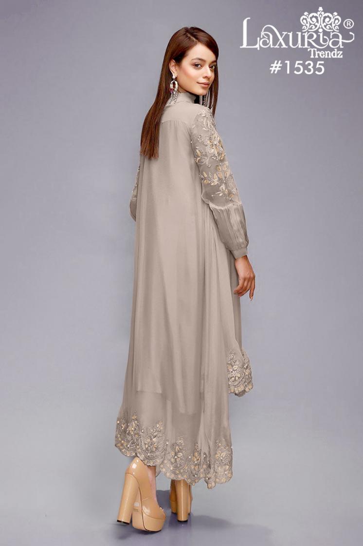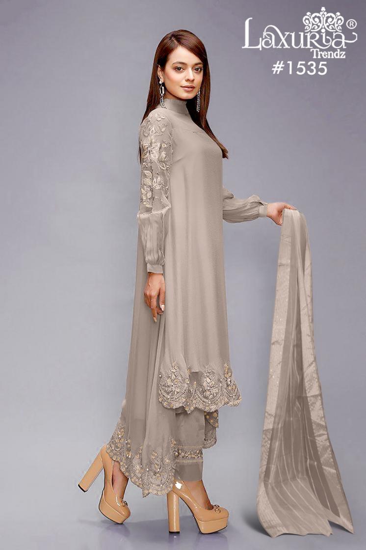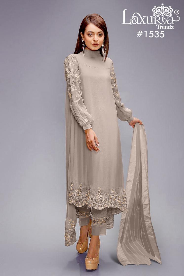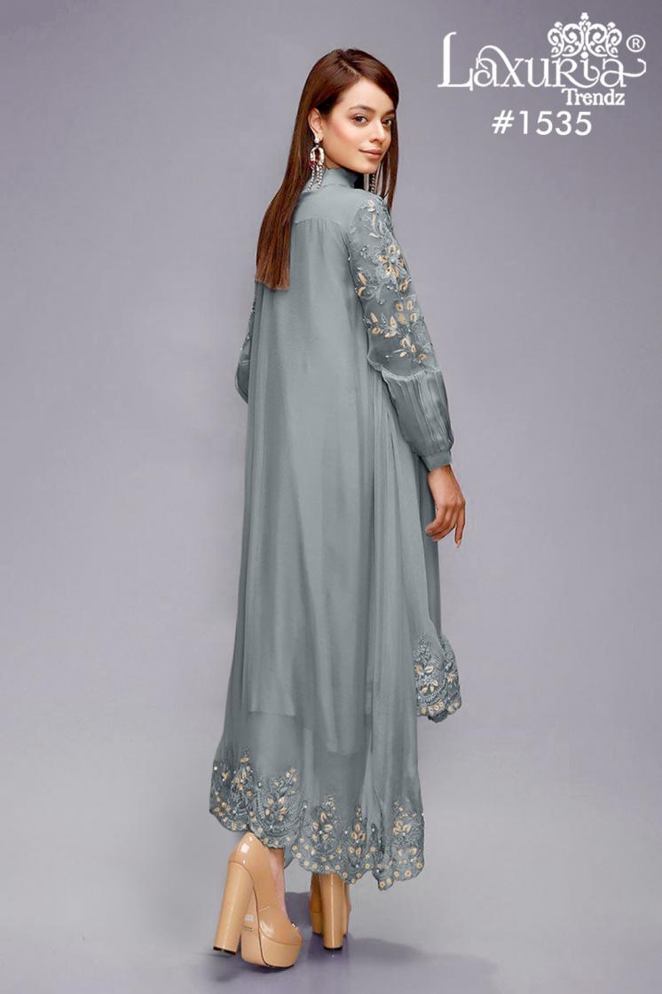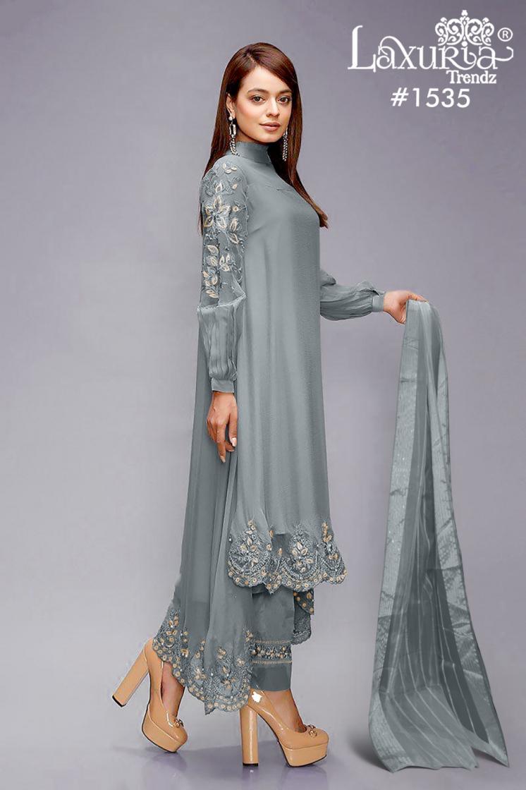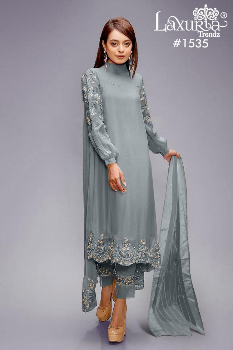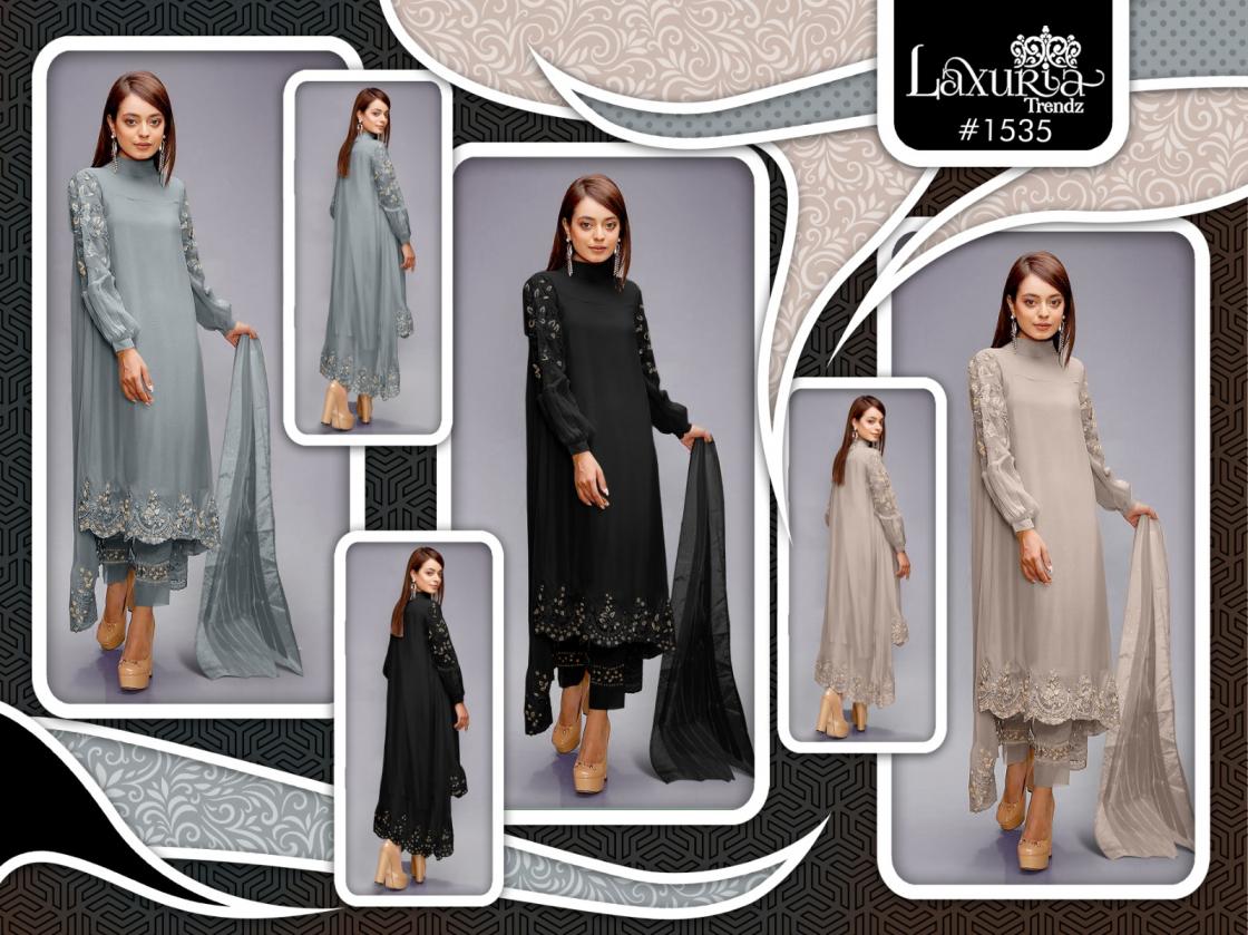 Looking for LAXURIA TRENDZ 1535 AMAZING FANDY FULL STITCH MODERN PAKISTANI SUIT FOR WOMEN Full Catalouge at Best Price? Buy Now LAXURIA TRENDZ 1535 AMAZING FANDY FULL STITCH MODERN PAKISTANI SUIT FOR WOMEN at Wholesale Rate of Rs 11700 with Total 9 Pcs from authroized dealer and supplier of Laxuria Trendz Brand. Cost of Each piece is just only Rs 1300 which is very low and affordable price to resale the product in your retail store. rrgandhi is Surat based Wholesale Supplier & Dealer of Laxuria Trendz Brand. Click on Brand name to Know more about Brand's products.
