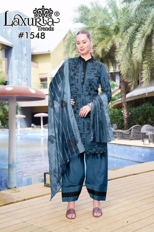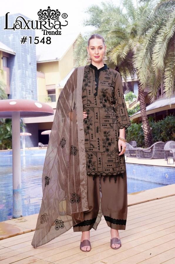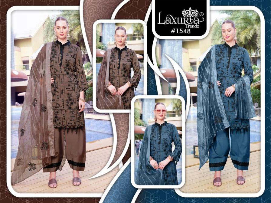 Looking for LAXURIA TRENDZ 1548 HIT DESIGN VICHITRA FULL STITCH PAKISTANI SUITS Full Catalouge at Best Price? Buy Now LAXURIA TRENDZ 1548 HIT DESIGN VICHITRA FULL STITCH PAKISTANI SUITS at Wholesale Rate of Rs 8700 with Total 6 Pcs from authroized dealer and supplier of Laxuria Trendz Brand. Cost of Each piece is just only Rs 1450 which is very low and affordable price to resale the product in your retail store. rrgandhi is Surat based Wholesale Supplier & Dealer of Laxuria Trendz Brand. Click on Brand name to Know more about Brand's products.