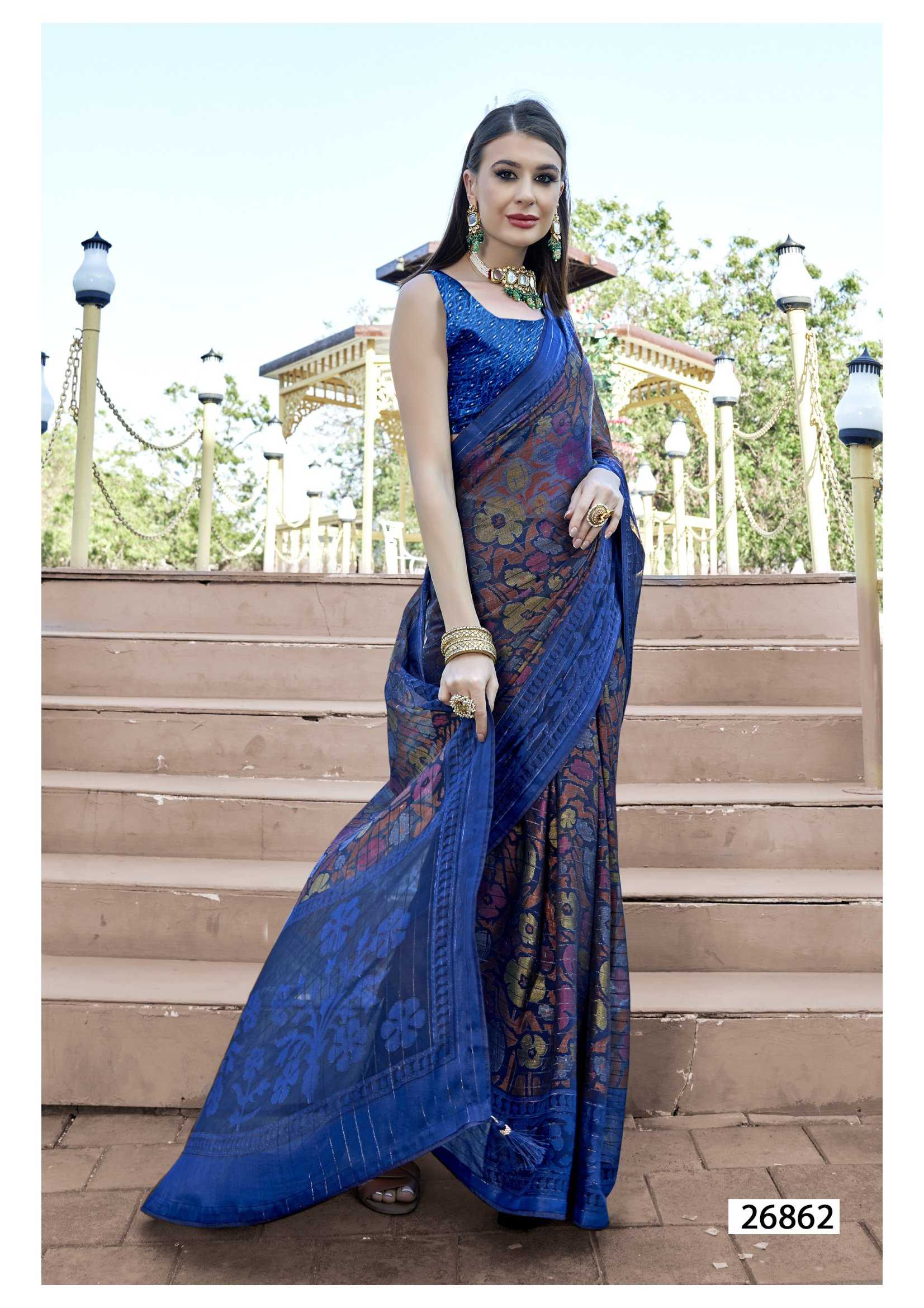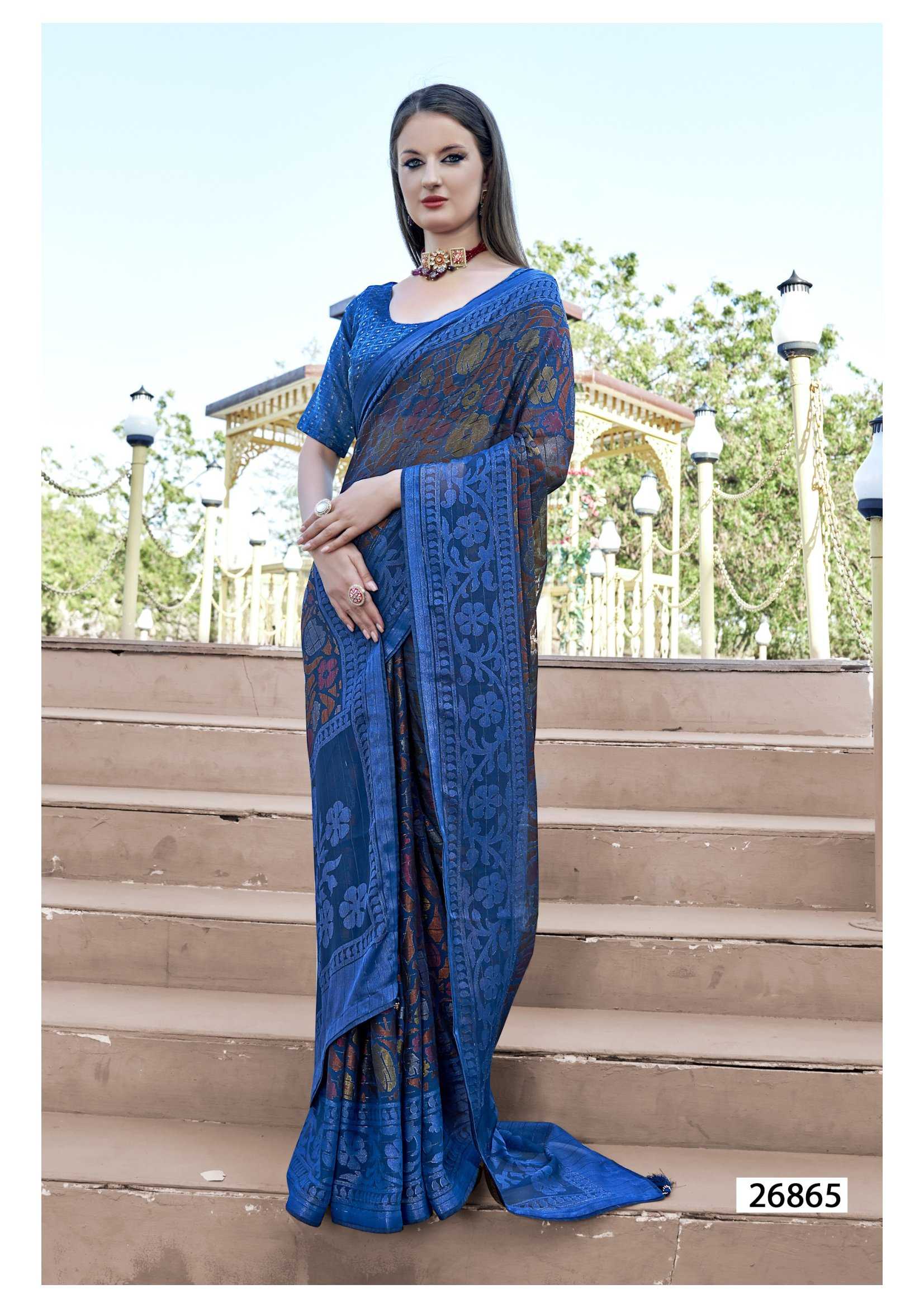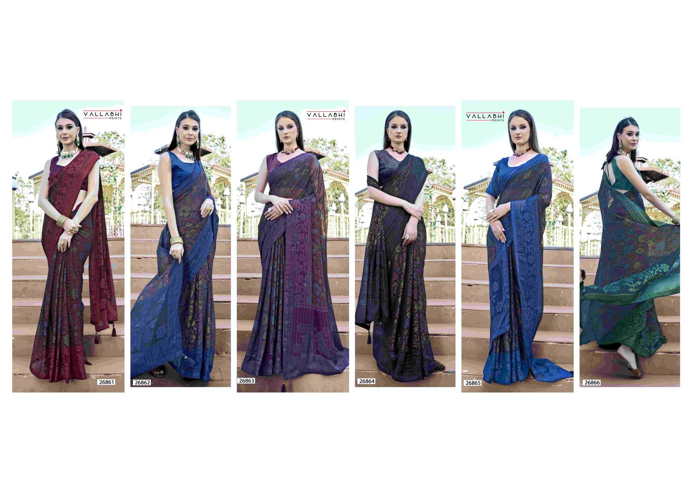Looking for leeza vol 3 by vallabhi prints 26861-26866 fancy brasso ethnic style designer saree Full Catalouge at Best Price? Buy Now leeza vol 3 by vallabhi prints 26861-26866 fancy brasso ethnic style designer saree at Wholesale Rate of Rs 6920 with Total 8 Pcs from authroized dealer and supplier of Vallabhi Prints Brand. Cost of Each piece is just only Rs 865 which is very low and affordable price to resale the product in your retail store. rrgandhi is Surat based Wholesale Supplier & Dealer of Vallabhi Prints Brand. Click on Brand name to Know more about Brand's products.