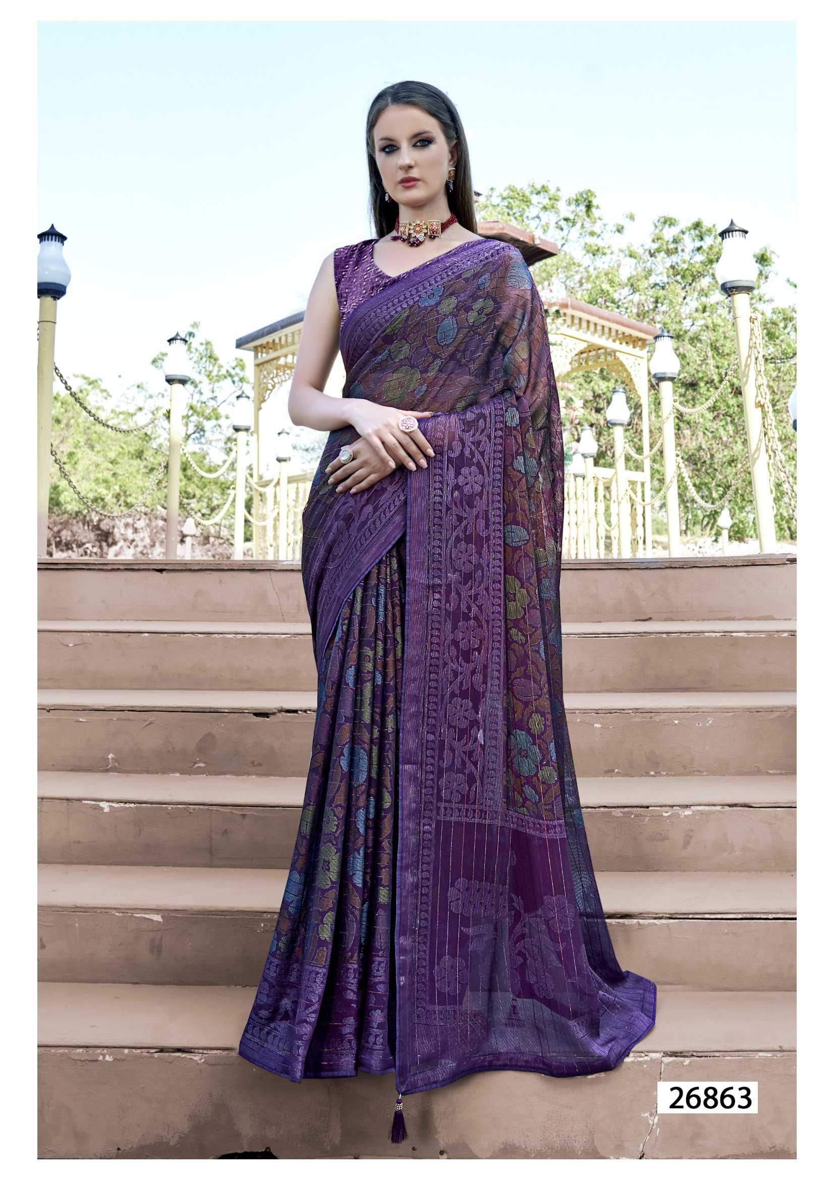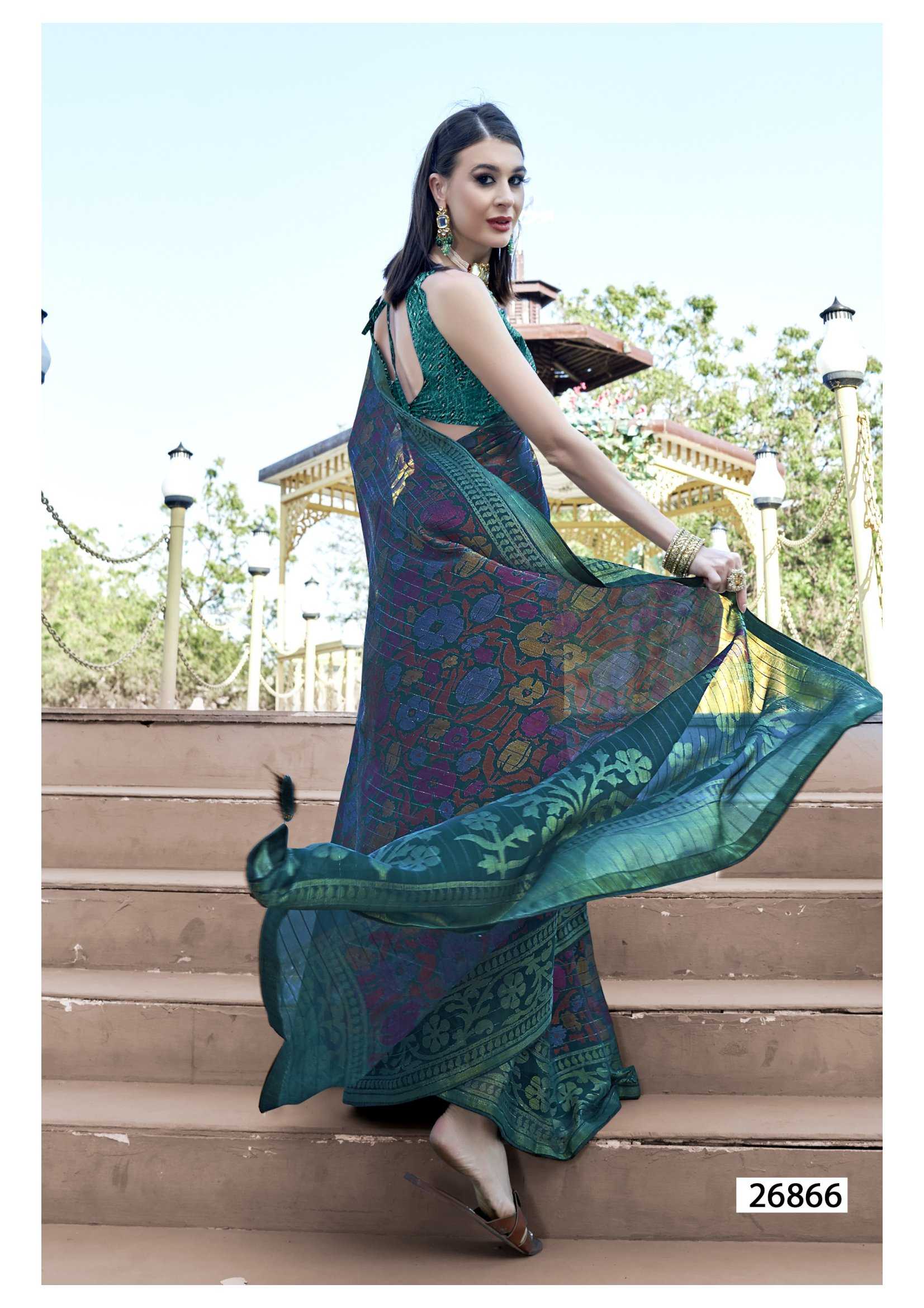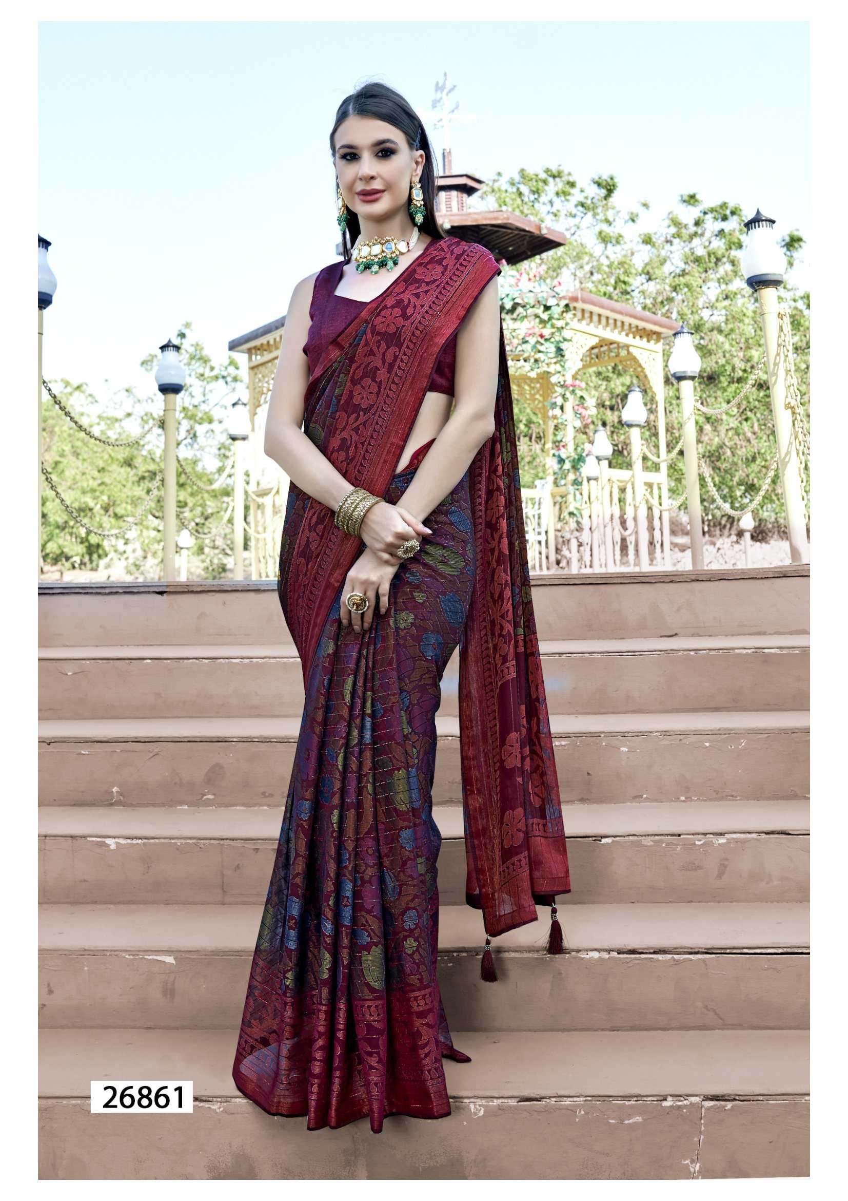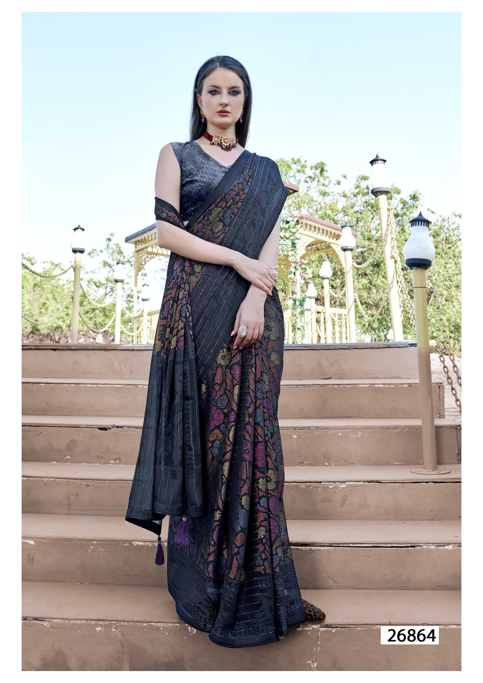 Looking for leeza vol 3 by vallabhi prints 26861-26866 fancy brasso ethnic style designer saree Full Catalouge at Best Price? Buy Now leeza vol 3 by vallabhi prints 26861-26866 fancy brasso ethnic style designer saree at Wholesale Rate of Rs 6920 with Total 8 Pcs from authroized dealer and supplier of Vallabhi Prints Brand. Cost of Each piece is just only Rs 865 which is very low and affordable price to resale the product in your retail store. rrgandhi is Surat based Wholesale Supplier & Dealer of Vallabhi Prints Brand. Click on Brand name to Know more about Brand's products.