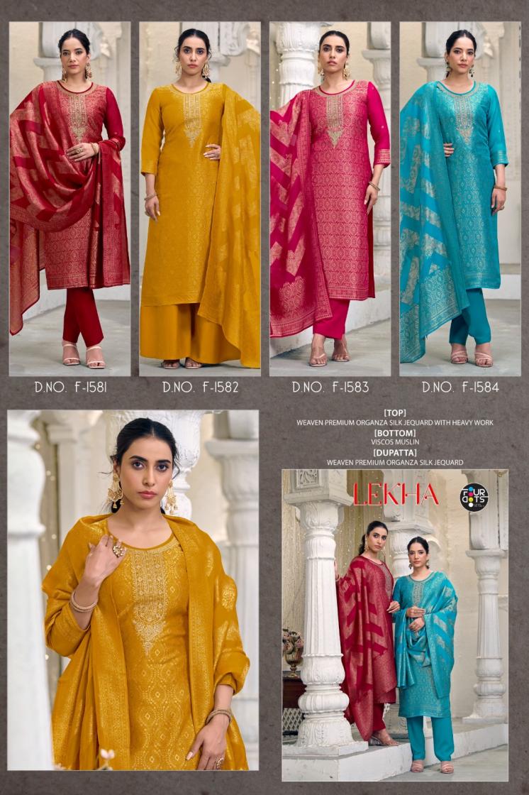 Looking for LEKHA BY FOURDOTS ORGANZA SILK ELEGANCE SALWAR KAMEEZ Full Catalouge at Best Price? Buy Now LEKHA BY FOURDOTS ORGANZA SILK ELEGANCE SALWAR KAMEEZ at Wholesale Rate of Rs 5596 with Total 4 Pcs from authroized dealer and supplier of Fourdots Brand. Cost of Each piece is just only Rs 1399 which is very low and affordable price to resale the product in your retail store. rrgandhi is Surat based Wholesale Supplier & Dealer of Fourdots Brand. Click on Brand name to Know more about Brand's products.