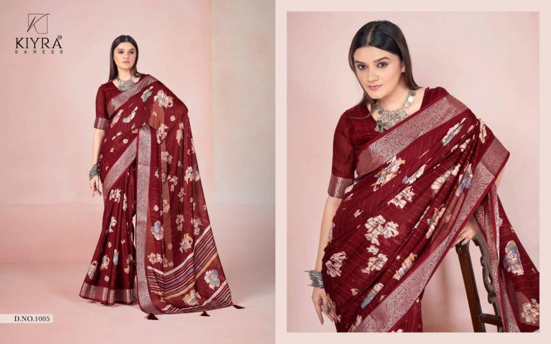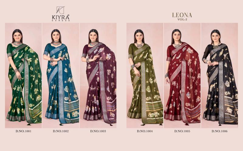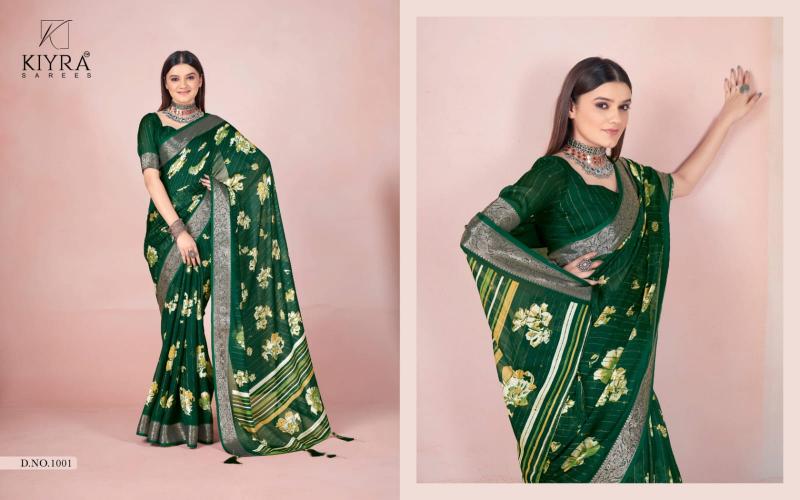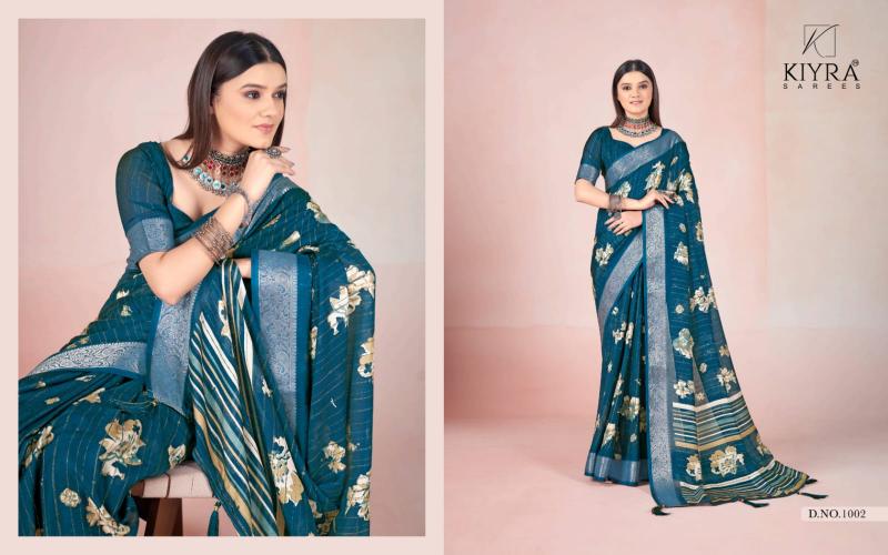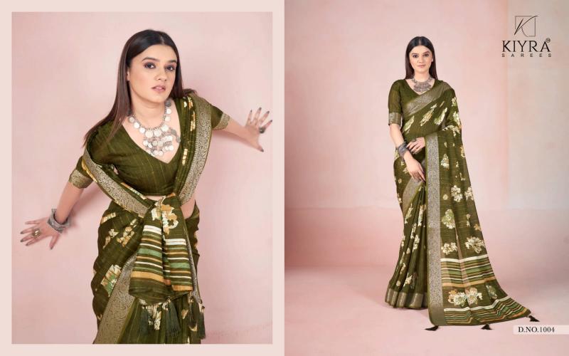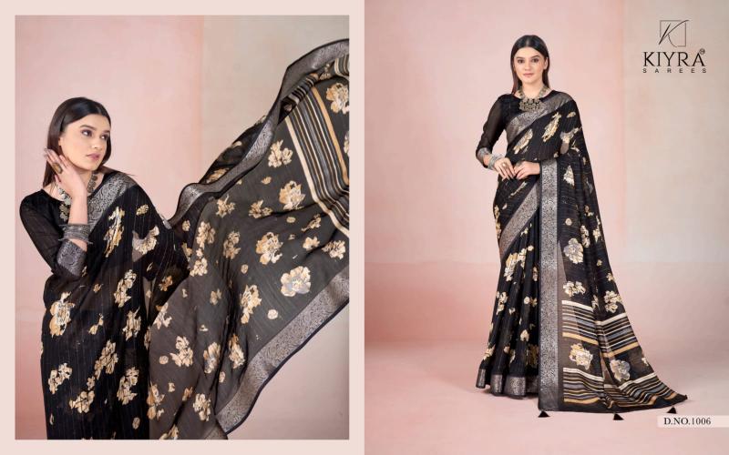 Looking for leona vol 2 by kiyra saree foil printed masmello unique saree Full Catalouge at Best Price? Buy Now leona vol 2 by kiyra saree foil printed masmello unique saree at Wholesale Rate of Rs 4950 with Total 6 Pcs from authroized dealer and supplier of Kiyra Sarees Brand. Cost of Each piece is just only Rs 825 which is very low and affordable price to resale the product in your retail store. rrgandhi is Surat based Wholesale Supplier & Dealer of Kiyra Sarees Brand. Click on Brand name to Know more about Brand's products.