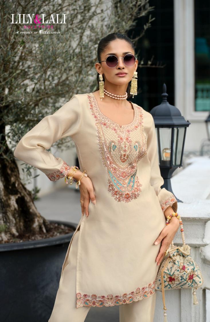 Looking for LILY & LALI ANORA VOL 1 READYMADE STYLISH TUSSER SILK CO-ORD SET ONLINE Full Catalouge at Best Price? Buy Now LILY & LALI ANORA VOL 1 READYMADE STYLISH TUSSER SILK CO-ORD SET ONLINE at Wholesale Rate of Rs 5060 with Total 4 Pcs from authroized dealer and supplier of Lily and Lali Brand. Cost of Each piece is just only Rs 1265 which is very low and affordable price to resale the product in your retail store. rrgandhi is Surat based Wholesale Supplier & Dealer of Lily and Lali Brand. Click on Brand name to Know more about Brand's products.