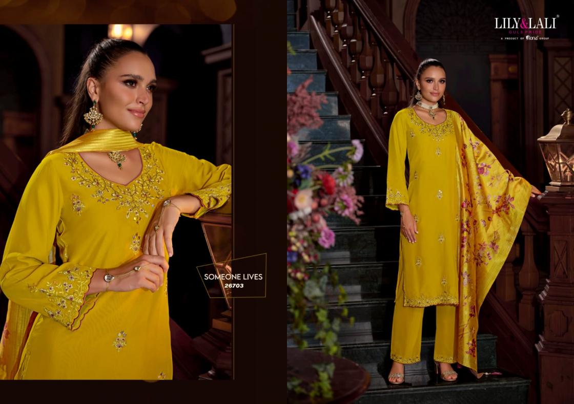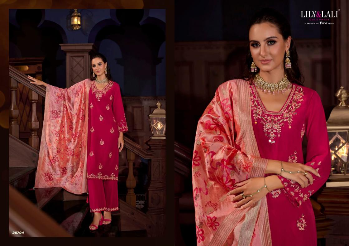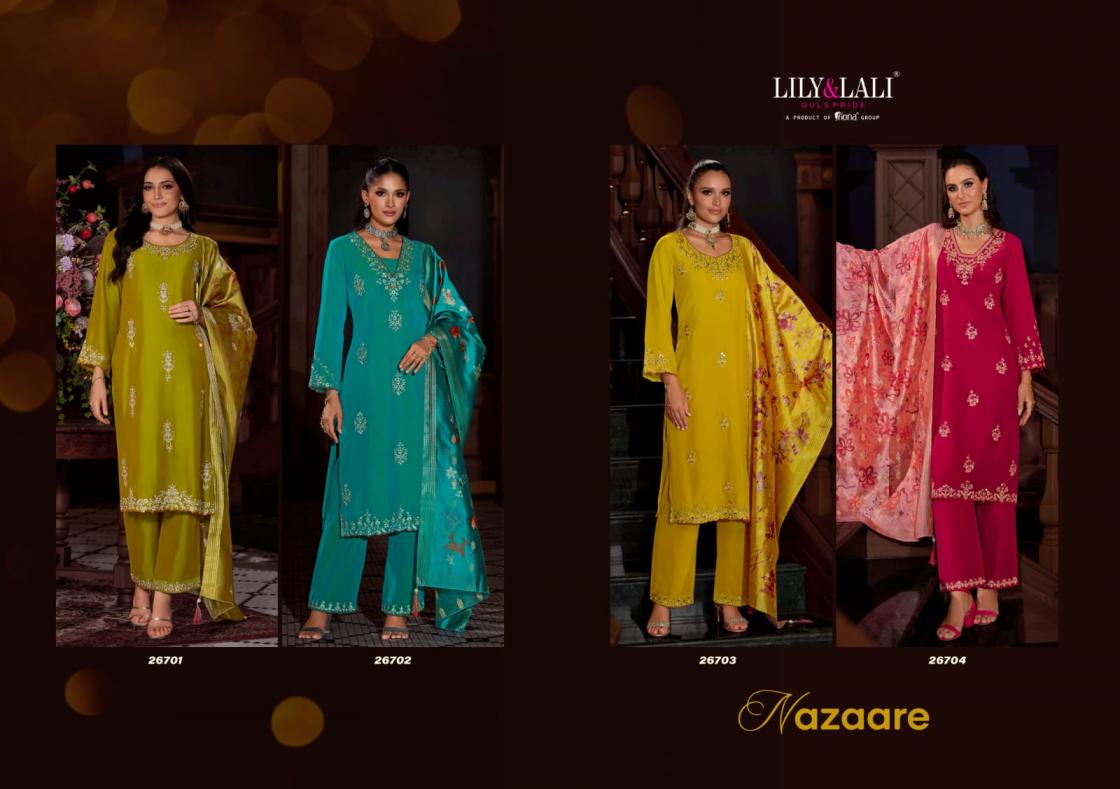 Looking for LILY & LALI NAZAARE VISCOSE SILK READYMADE EXCLUSIVE SALWAR SUIT Full Catalouge at Best Price? Buy Now LILY & LALI NAZAARE VISCOSE SILK READYMADE EXCLUSIVE SALWAR SUIT at Wholesale Rate of Rs 5780 with Total 4 Pcs from authroized dealer and supplier of Lily and Lali Brand. Cost of Each piece is just only Rs 1445 which is very low and affordable price to resale the product in your retail store. rrgandhi is Surat based Wholesale Supplier & Dealer of Lily and Lali Brand. Click on Brand name to Know more about Brand's products.