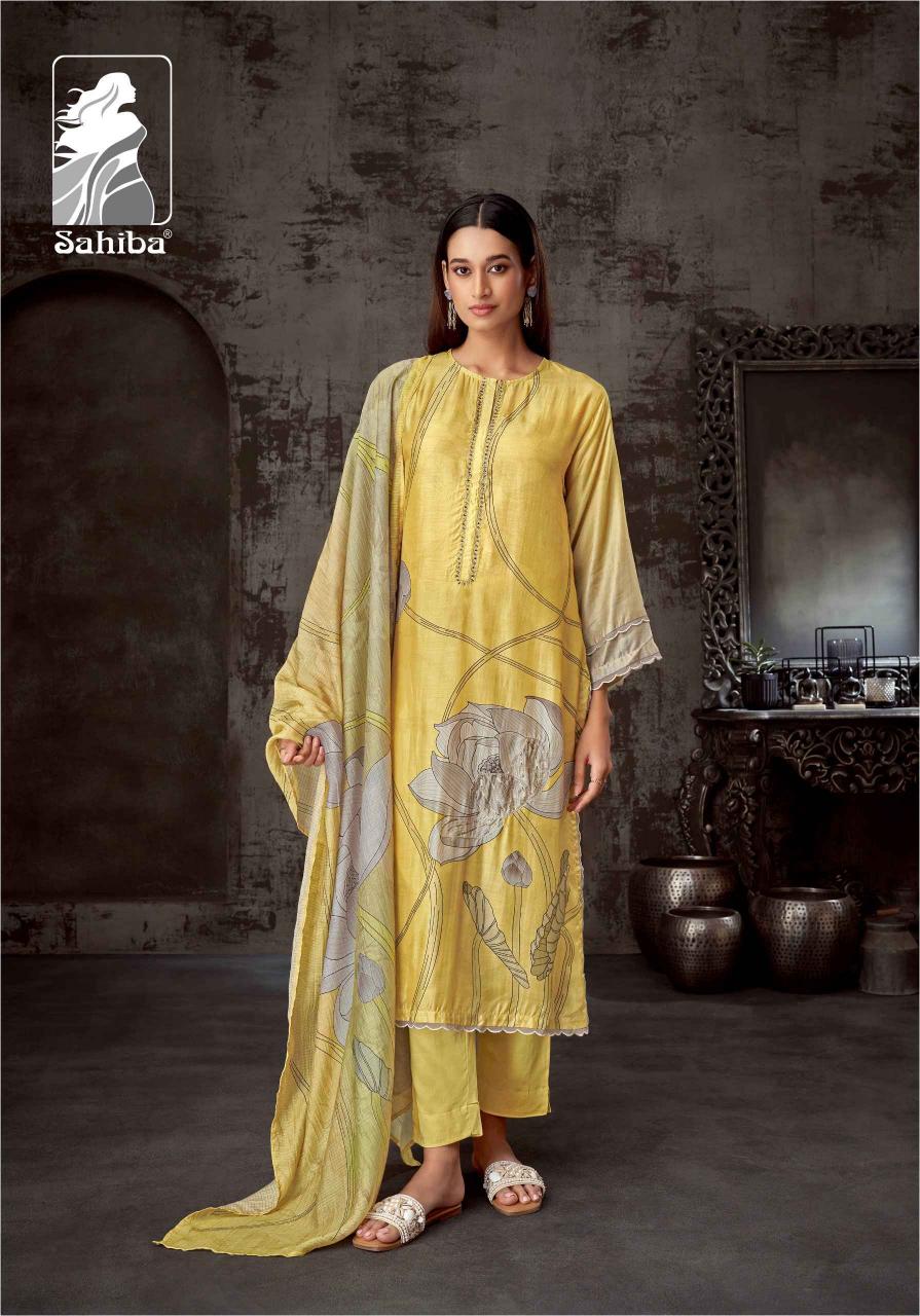 Looking for lotus by sahiba unique muslin silk print salwar kameez Full Catalouge at Best Price? Buy Now lotus by sahiba unique muslin silk print salwar kameez at Wholesale Rate of Rs 5985 with Total 3 Pcs from authroized dealer and supplier of Sahiba Brand. Cost of Each piece is just only Rs 1995 which is very low and affordable price to resale the product in your retail store. rrgandhi is Surat based Wholesale Supplier & Dealer of Sahiba Brand. Click on Brand name to Know more about Brand's products.