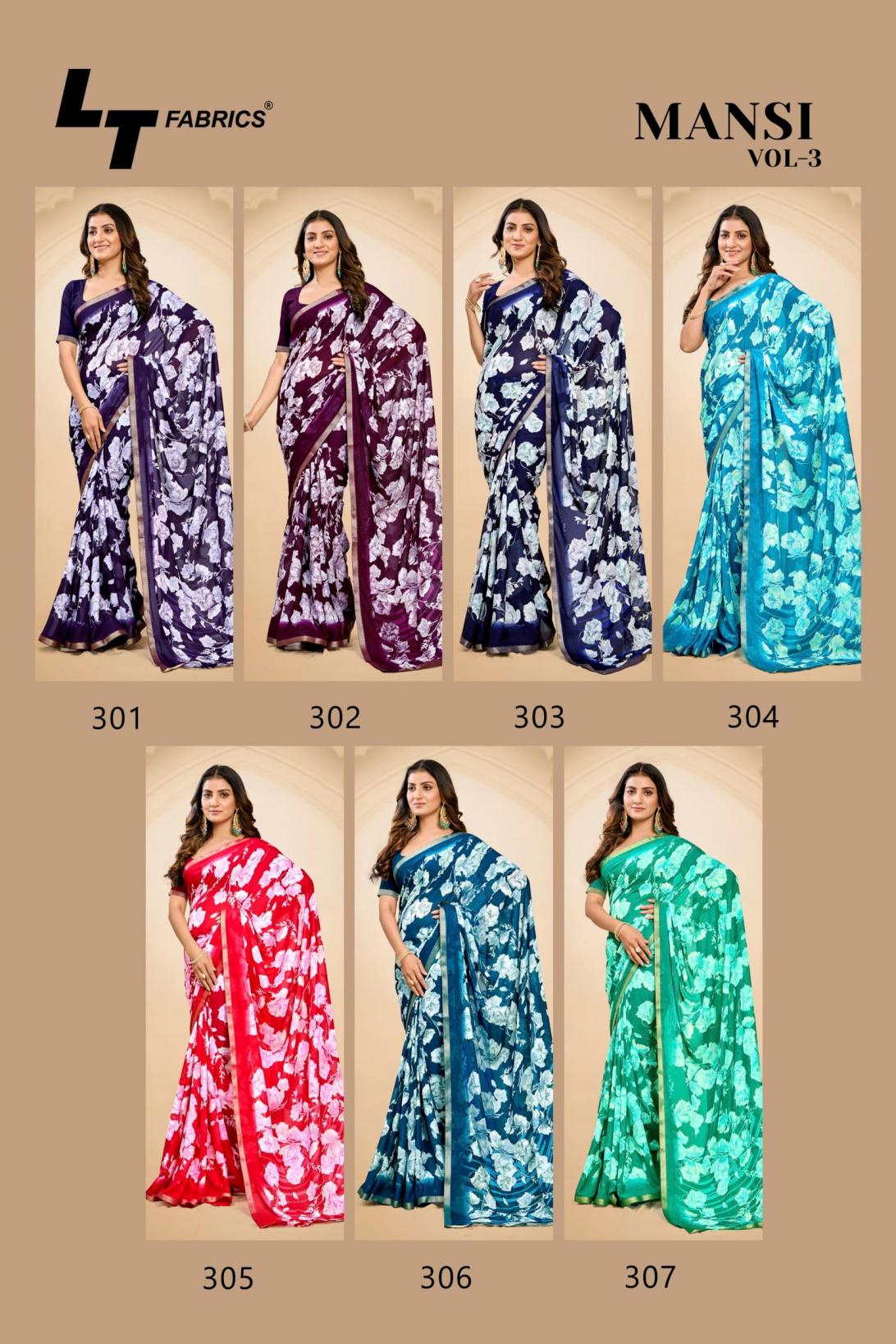 Looking for LT FASHION MANSI VOL 3 POPULAR DESIGN MICRO SAREES ONLINE Full Catalouge at Best Price? Buy Now LT FASHION MANSI VOL 3 POPULAR DESIGN MICRO SAREES ONLINE at Wholesale Rate of Rs 2240 with Total 7 Pcs from authroized dealer and supplier of LT Fashions Brand. Cost of Each piece is just only Rs 320 which is very low and affordable price to resale the product in your retail store. rrgandhi is Surat based Wholesale Supplier & Dealer of LT Fashions Brand. Click on Brand name to Know more about Brand's products.