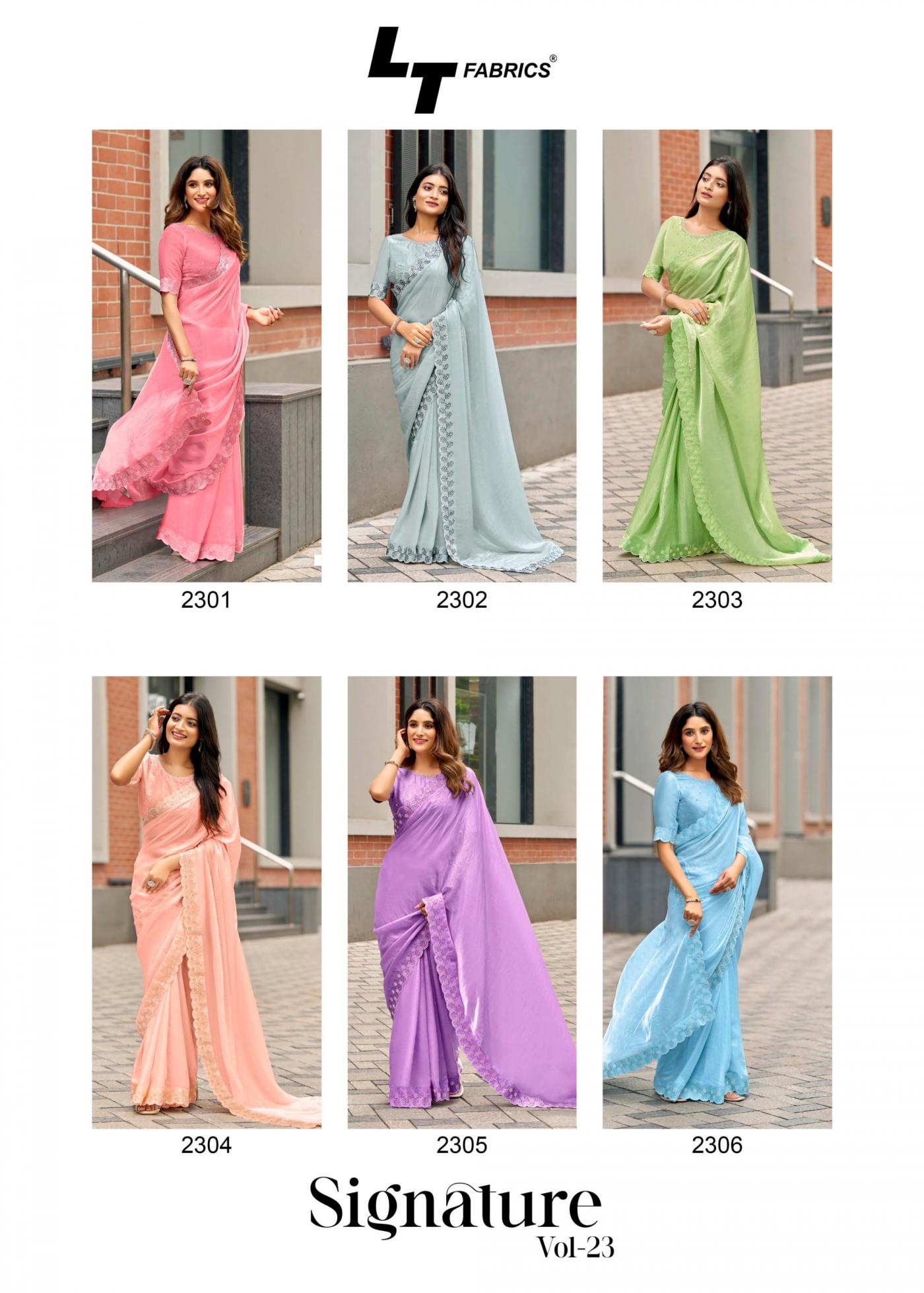 Looking for LT FASHION SIGNATURE VOL 23 MALAI SILK ELEGANCE SAREES ONLINE Full Catalouge at Best Price? Buy Now LT FASHION SIGNATURE VOL 23 MALAI SILK ELEGANCE SAREES ONLINE at Wholesale Rate of Rs 7530 with Total 6 Pcs from authroized dealer and supplier of LT Fashions Brand. Cost of Each piece is just only Rs 1255 which is very low and affordable price to resale the product in your retail store. rrgandhi is Surat based Wholesale Supplier & Dealer of LT Fashions Brand. Click on Brand name to Know more about Brand's products.