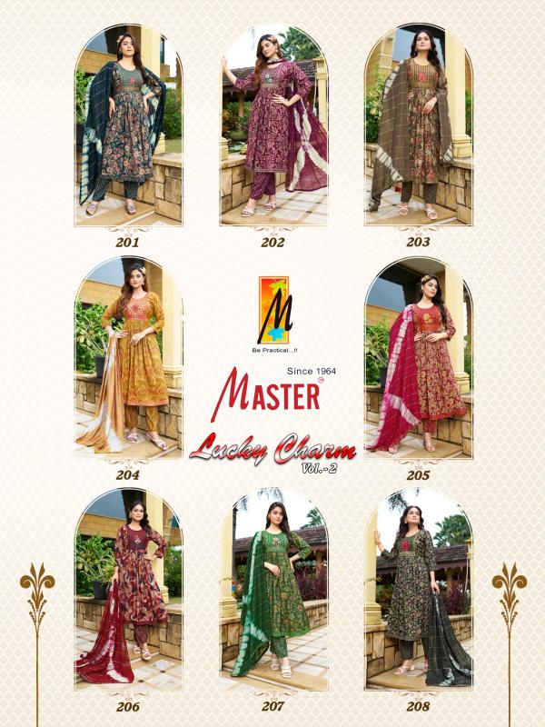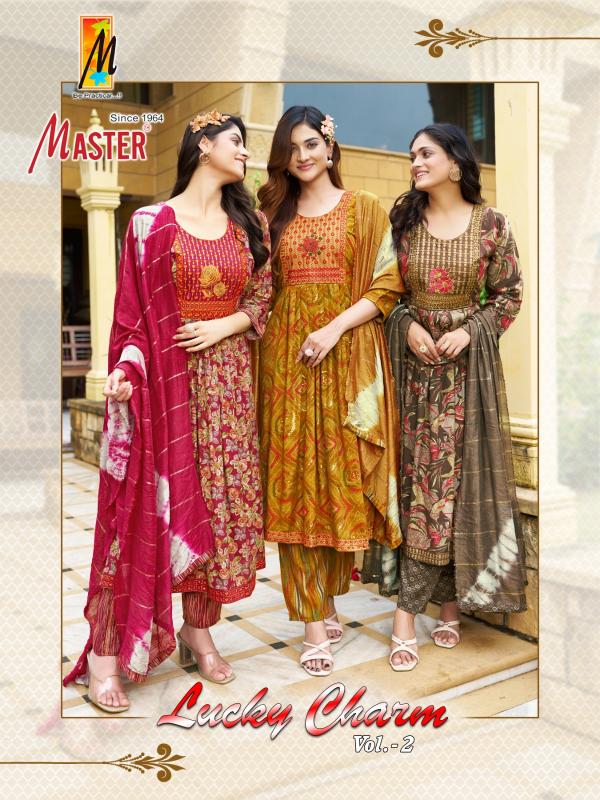 Looking for lucky charm vol 2 by master unique colours capsule churidar suit Full Catalouge at Best Price? Buy Now lucky charm vol 2 by master unique colours capsule churidar suit at Wholesale Rate of Rs 5160 with Total 8 Pcs from authroized dealer and supplier of Master Kurti Brand. Cost of Each piece is just only Rs 645 which is very low and affordable price to resale the product in your retail store. rrgandhi is Surat based Wholesale Supplier & Dealer of Master Kurti Brand. Click on Brand name to Know more about Brand's products.