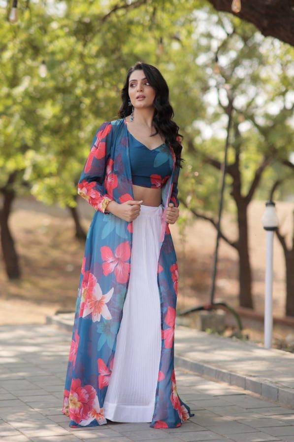 Looking for LW 7107 GEORGETTE FULL STITCH TRADITIONAL SHRUG STYLE INDO WESTERN DRESS Full Catalouge at Best Price? Buy Now LW 7107 GEORGETTE FULL STITCH TRADITIONAL SHRUG STYLE INDO WESTERN DRESS at Wholesale Rate of Rs 3450 with Total 3 Pcs from authroized dealer and supplier of P R Clothing Brand. Cost of Each piece is just only Rs 1150 which is very low and affordable price to resale the product in your retail store. rrgandhi is Surat based Wholesale Supplier & Dealer of P R Clothing Brand. Click on Brand name to Know more about Brand's products.