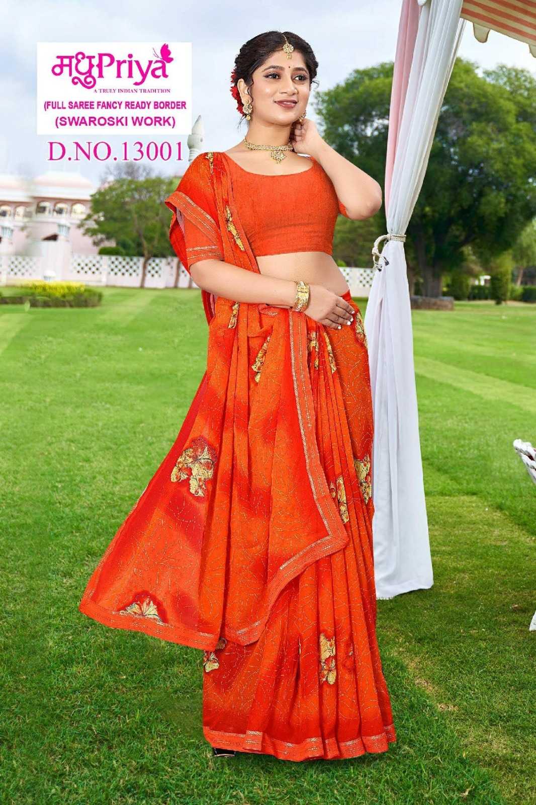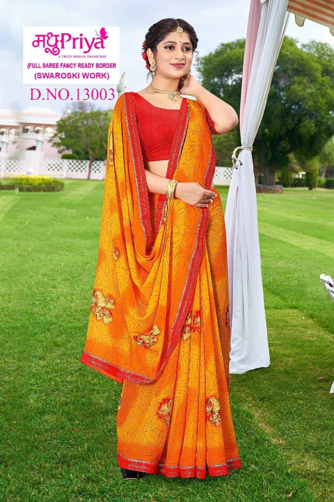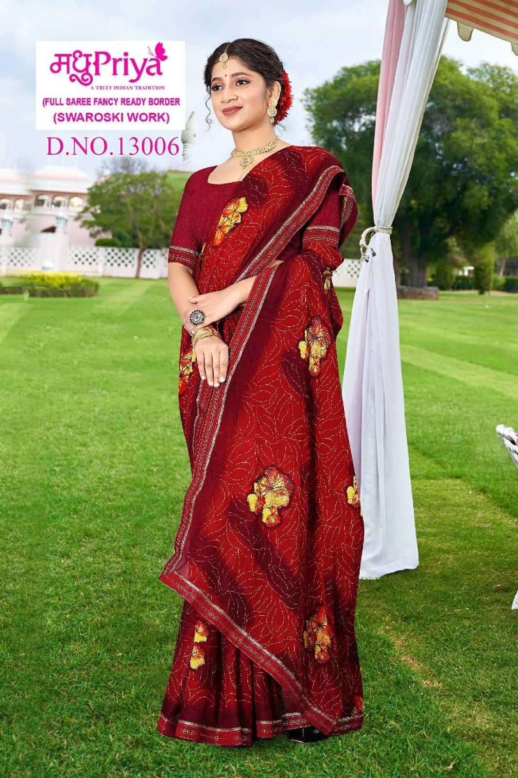 Looking for madhupriya coca cola vol 13 summer swaroski work fancy print saree Full Catalouge at Best Price? Buy Now madhupriya coca cola vol 13 summer swaroski work fancy print saree at Wholesale Rate of Rs 2000 with Total 8 Pcs from authroized dealer and supplier of Madhupriya Brand. Cost of Each piece is just only Rs 250 which is very low and affordable price to resale the product in your retail store. rrgandhi is Surat based Wholesale Supplier & Dealer of Madhupriya Brand. Click on Brand name to Know more about Brand's products.