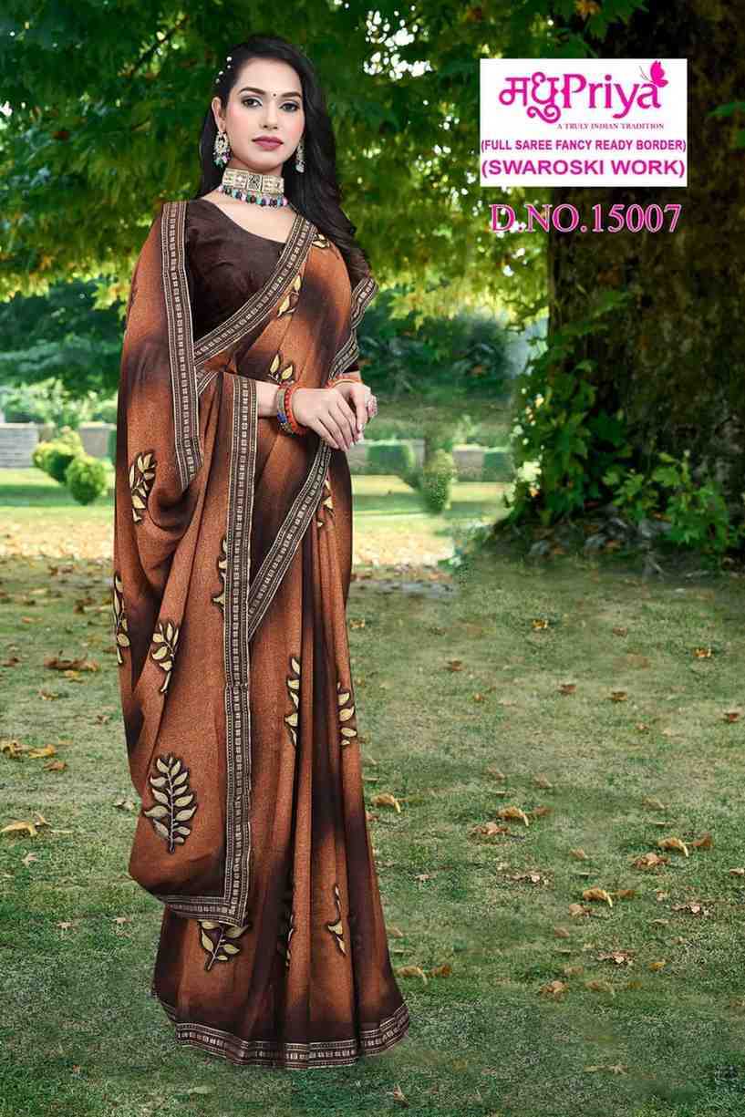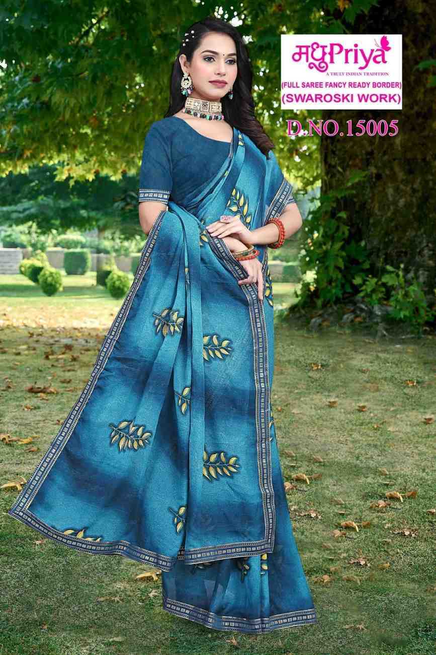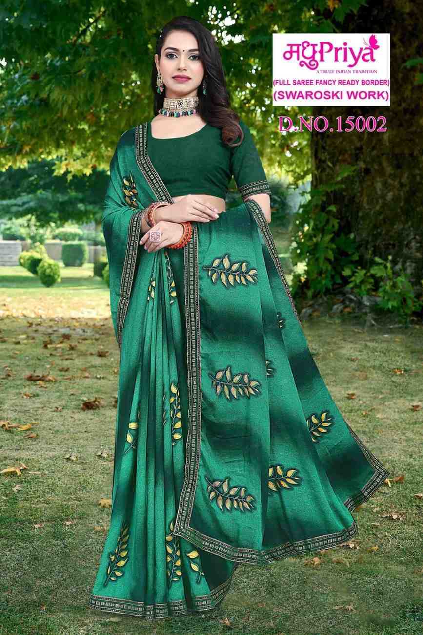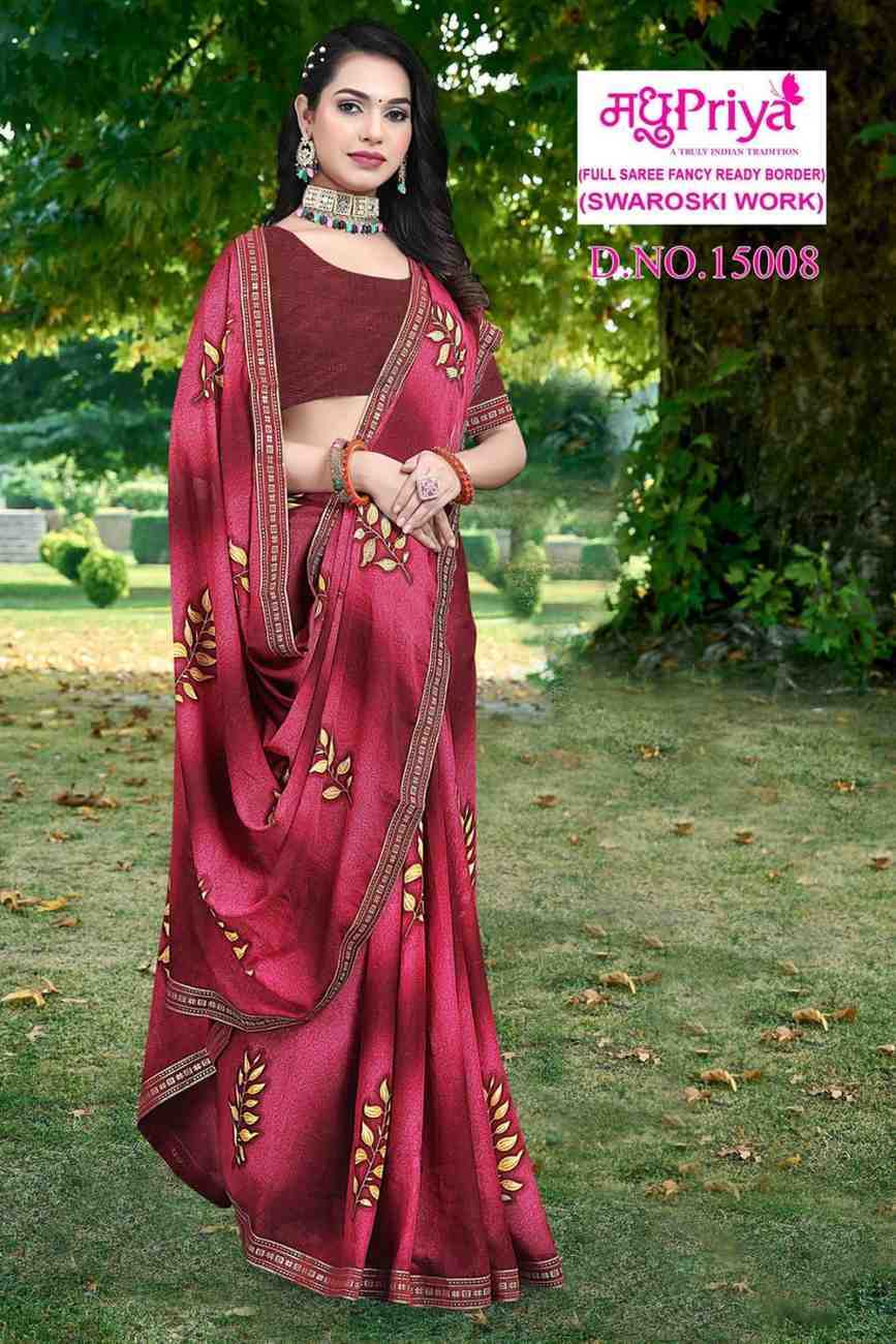 Looking for madhupriya coca cola vol 15 pretty look swaroski work saree with blouse Full Catalouge at Best Price? Buy Now madhupriya coca cola vol 15 pretty look swaroski work saree with blouse at Wholesale Rate of Rs 2000 with Total 8 Pcs from authroized dealer and supplier of Madhupriya Brand. Cost of Each piece is just only Rs 250 which is very low and affordable price to resale the product in your retail store. rrgandhi is Surat based Wholesale Supplier & Dealer of Madhupriya Brand. Click on Brand name to Know more about Brand's products.