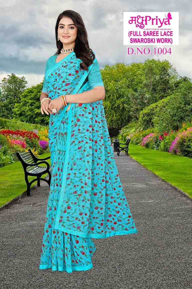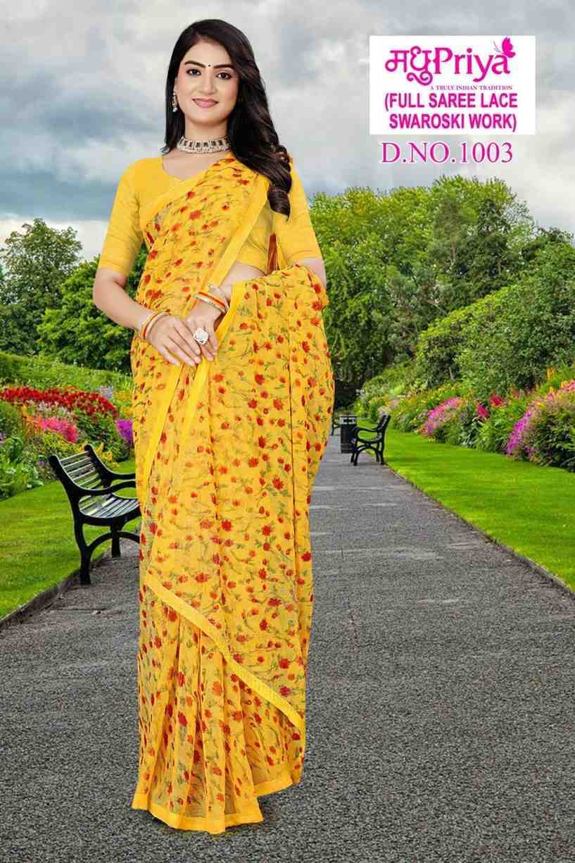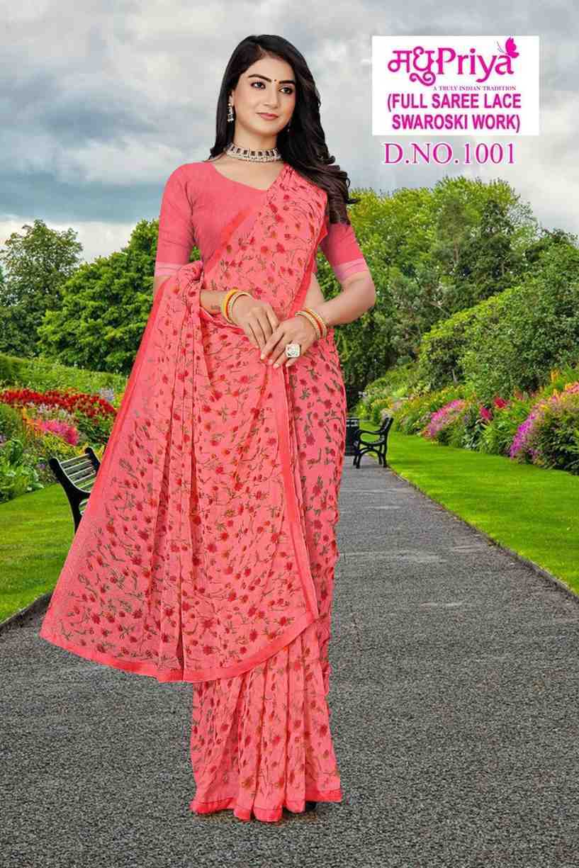 Looking for madhupriya dolly vol 10 fancy chiffon amazing work saree with blouse Full Catalouge at Best Price? Buy Now madhupriya dolly vol 10 fancy chiffon amazing work saree with blouse at Wholesale Rate of Rs 1920 with Total 8 Pcs from authroized dealer and supplier of Madhupriya Brand. Cost of Each piece is just only Rs 240 which is very low and affordable price to resale the product in your retail store. rrgandhi is Surat based Wholesale Supplier & Dealer of Madhupriya Brand. Click on Brand name to Know more about Brand's products.