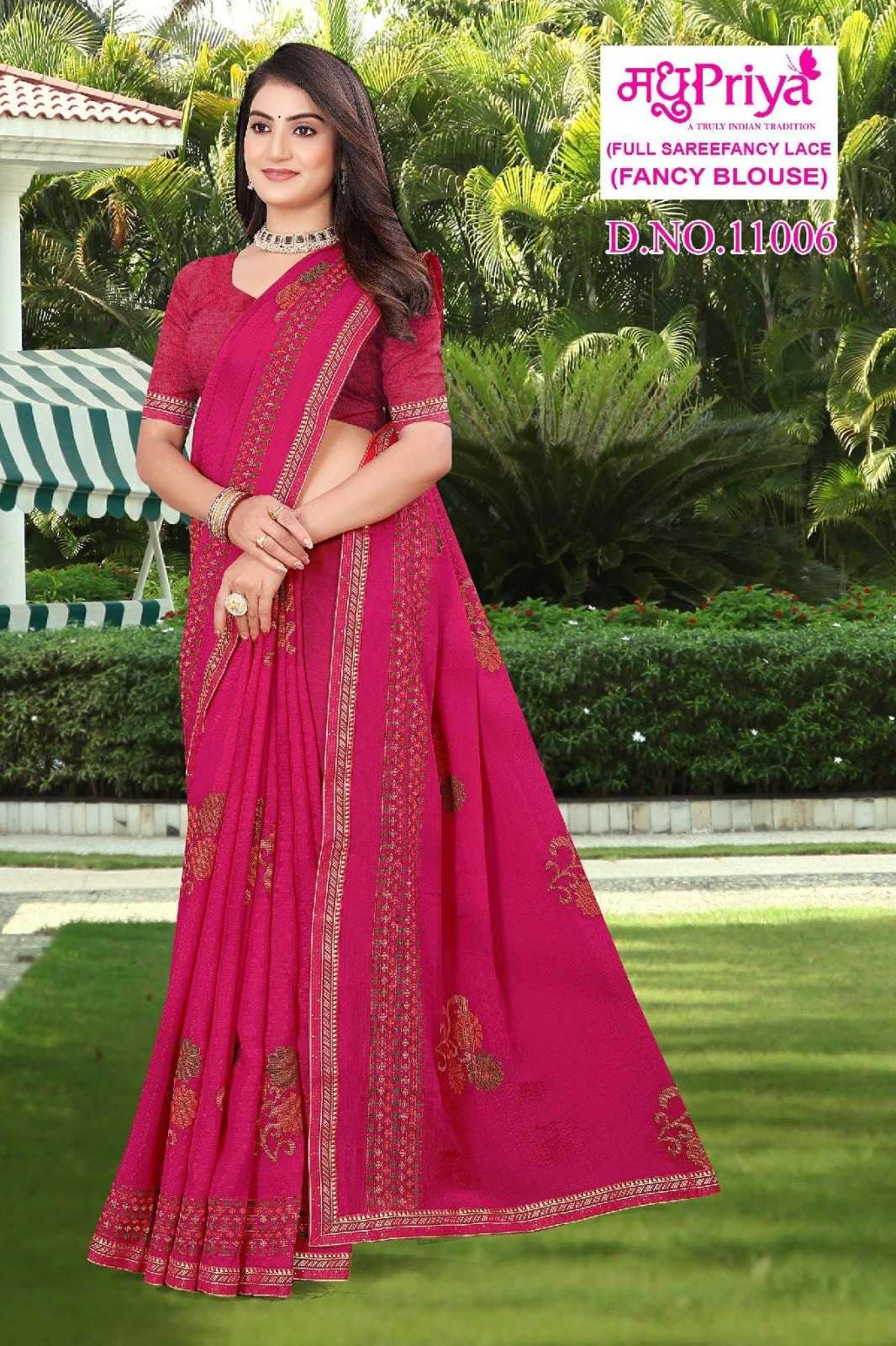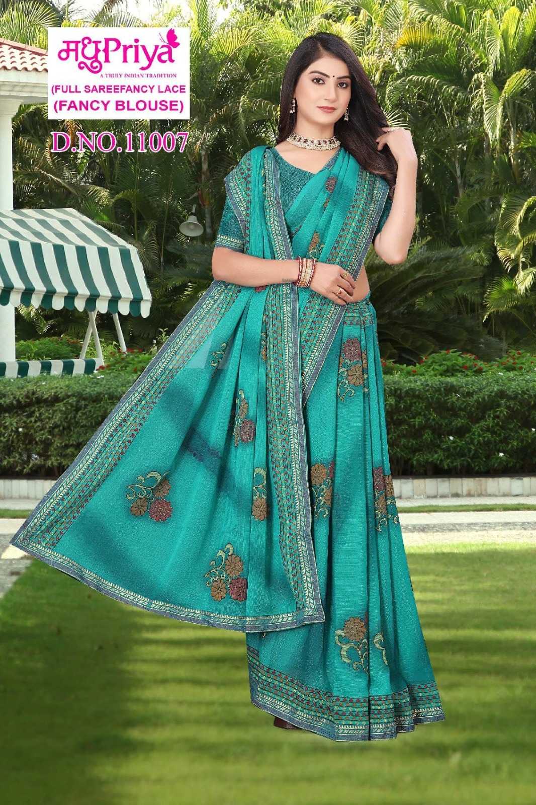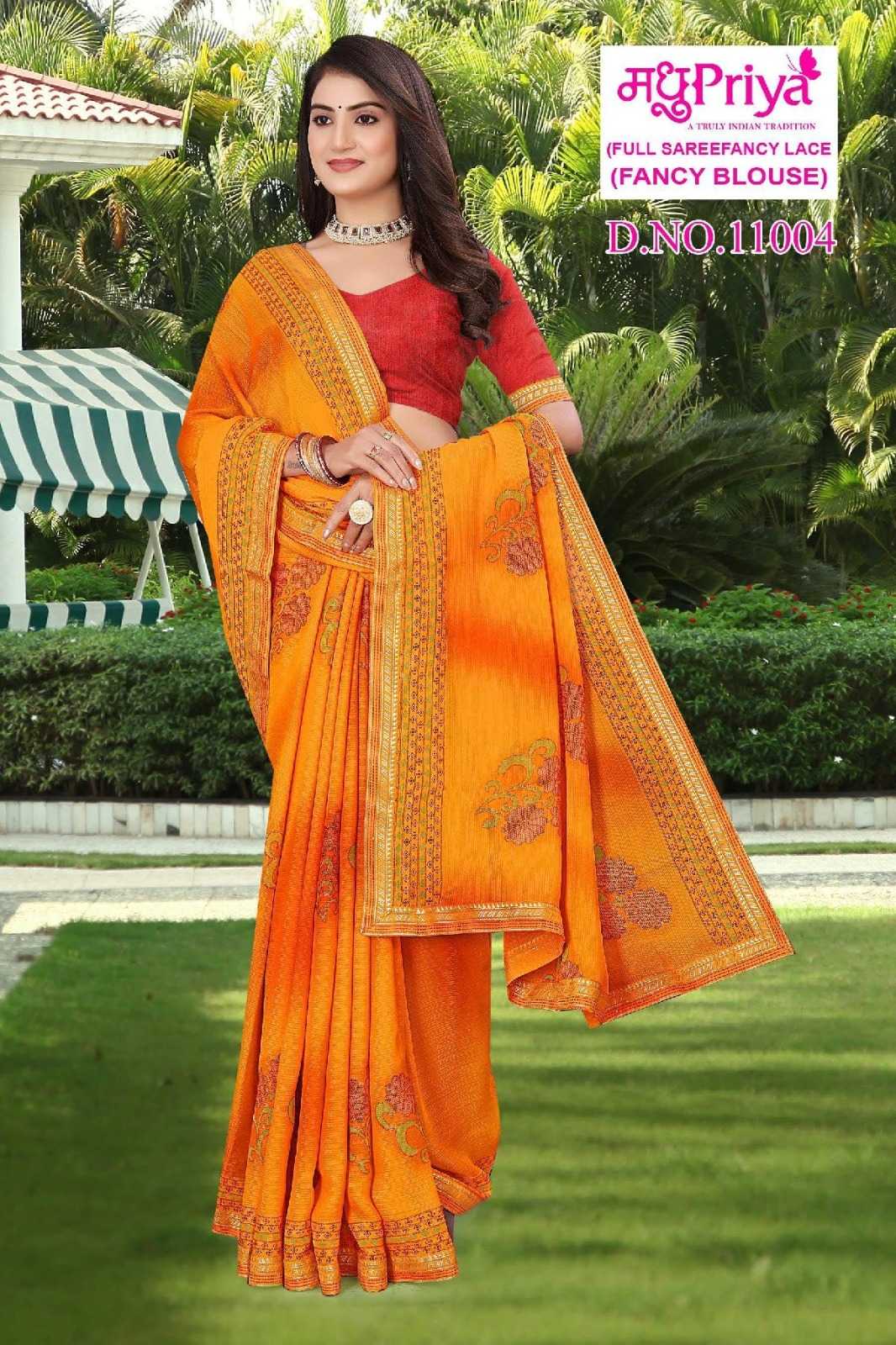 Looking for madhupriya mirinda vol 11 fancy wear printed saree collection Full Catalouge at Best Price? Buy Now madhupriya mirinda vol 11 fancy wear printed saree collection at Wholesale Rate of Rs 2240 with Total 8 Pcs from authroized dealer and supplier of Madhupriya Brand. Cost of Each piece is just only Rs 280 which is very low and affordable price to resale the product in your retail store. rrgandhi is Surat based Wholesale Supplier & Dealer of Madhupriya Brand. Click on Brand name to Know more about Brand's products.