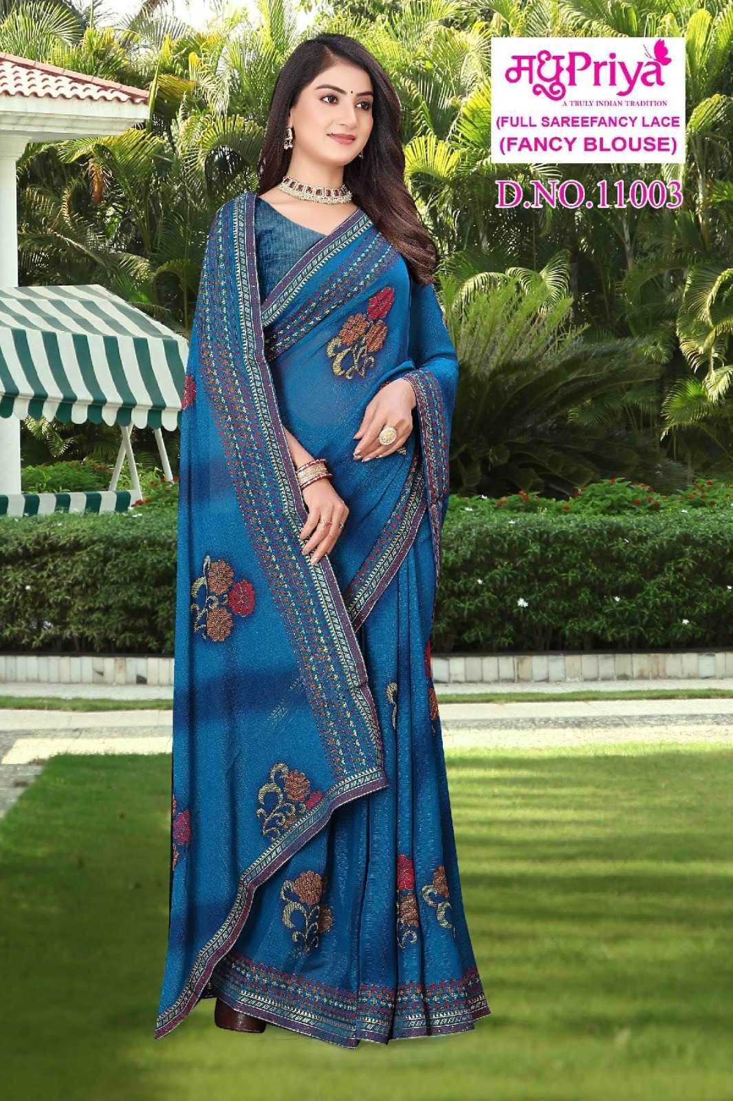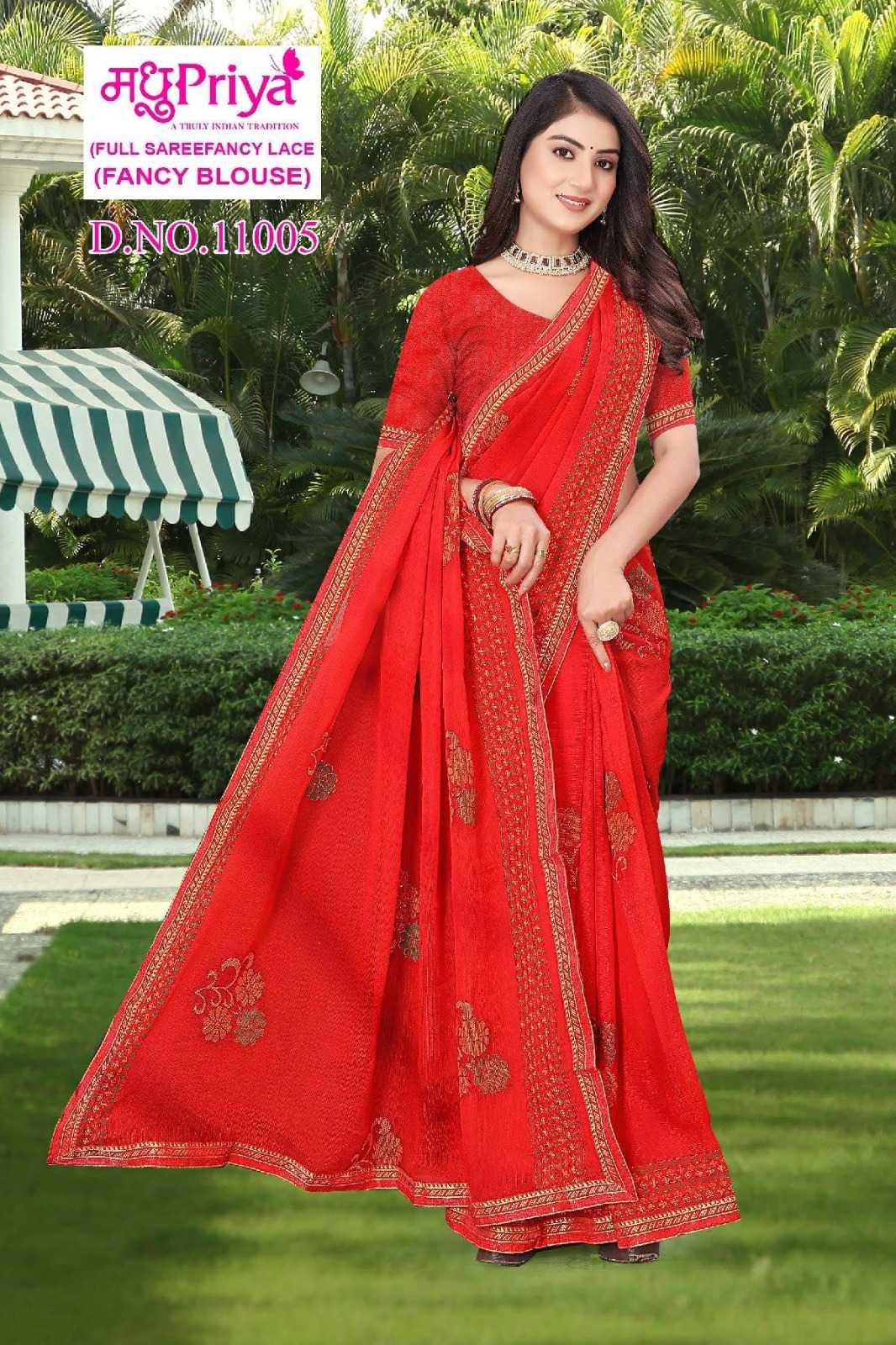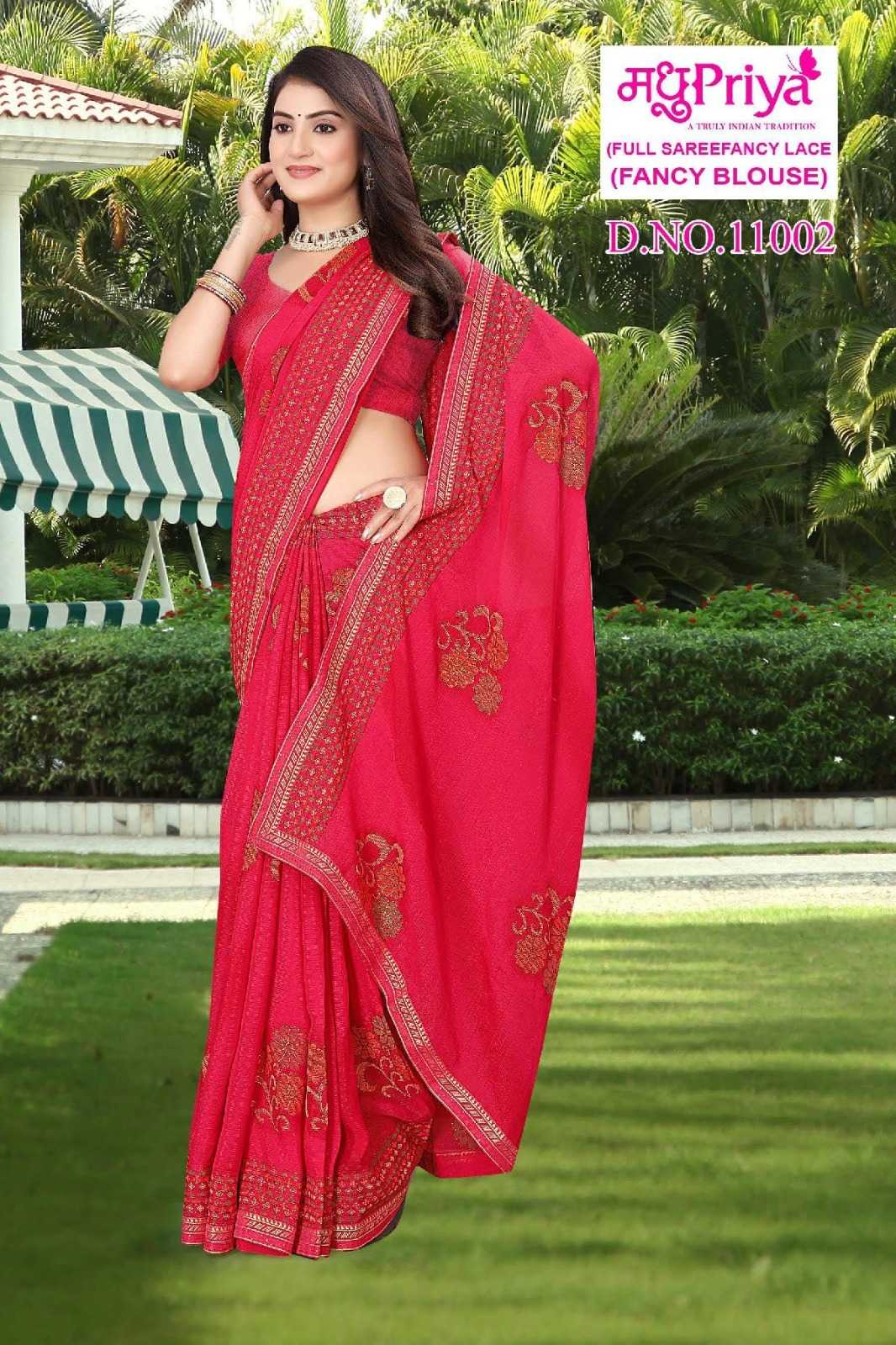 Looking for madhupriya mirinda vol 11 fancy wear printed saree collection Full Catalouge at Best Price? Buy Now madhupriya mirinda vol 11 fancy wear printed saree collection at Wholesale Rate of Rs 2240 with Total 8 Pcs from authroized dealer and supplier of Madhupriya Brand. Cost of Each piece is just only Rs 280 which is very low and affordable price to resale the product in your retail store. rrgandhi is Surat based Wholesale Supplier & Dealer of Madhupriya Brand. Click on Brand name to Know more about Brand's products.