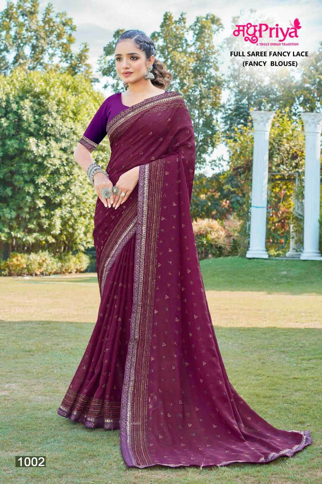 Looking for madhupriya mirinda vol 4 fancy wear saree supplier Full Catalouge at Best Price? Buy Now madhupriya mirinda vol 4 fancy wear saree supplier at Wholesale Rate of Rs 2240 with Total 8 Pcs from authroized dealer and supplier of Madhupriya Brand. Cost of Each piece is just only Rs 280 which is very low and affordable price to resale the product in your retail store. rrgandhi is Surat based Wholesale Supplier & Dealer of Madhupriya Brand. Click on Brand name to Know more about Brand's products.