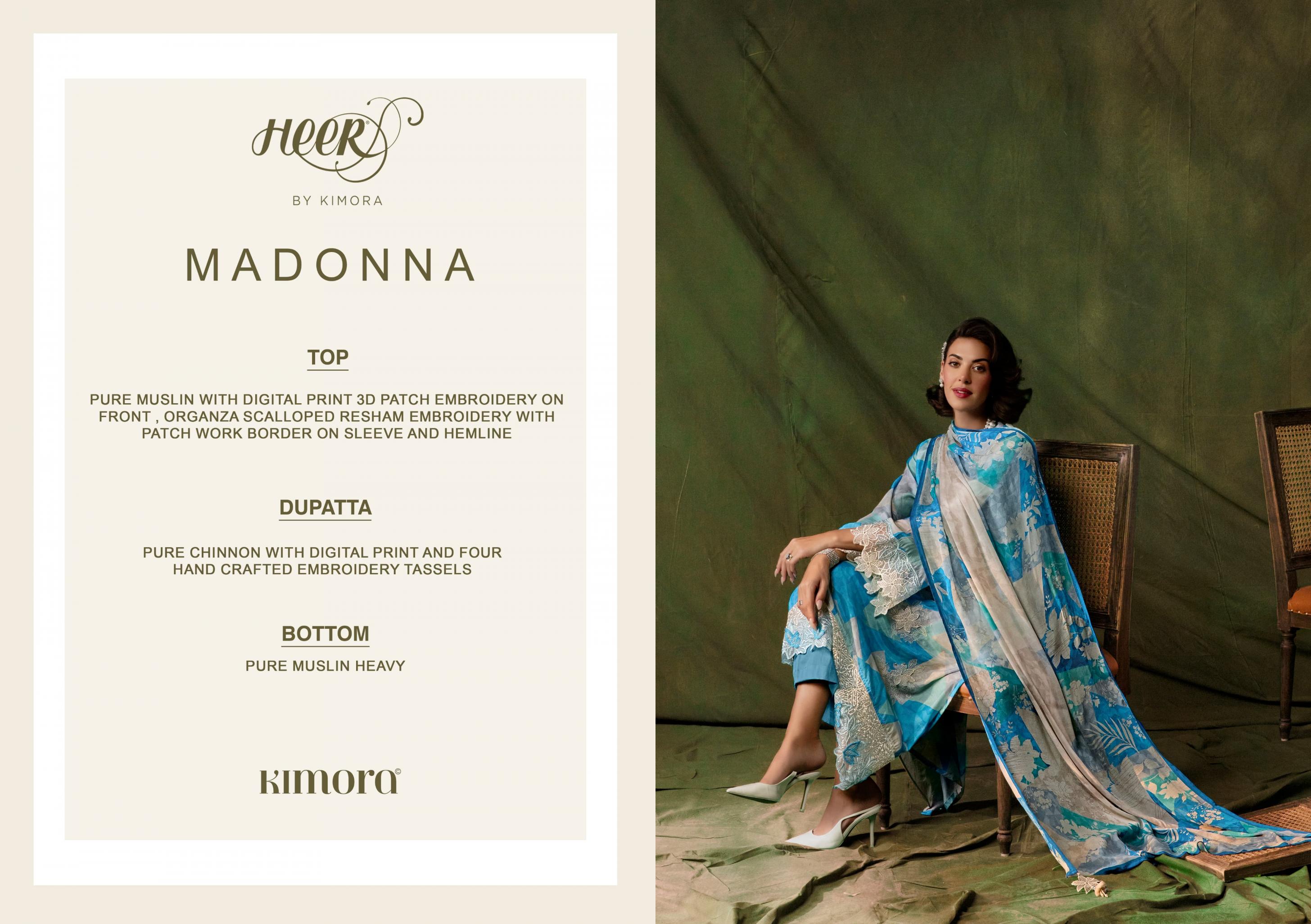 Looking for MADONNA VOL 211 BY HEER KIMORA MUSLIN SALWAR KAMEEZ Full Catalouge at Best Price? Buy Now MADONNA VOL 211 BY HEER KIMORA MUSLIN SALWAR KAMEEZ at Wholesale Rate of Rs 12540 with Total 6 Pcs from authroized dealer and supplier of KIMORA Brand. Cost of Each piece is just only Rs 2090 which is very low and affordable price to resale the product in your retail store. rrgandhi is Surat based Wholesale Supplier & Dealer of KIMORA Brand. Click on Brand name to Know more about Brand's products.
