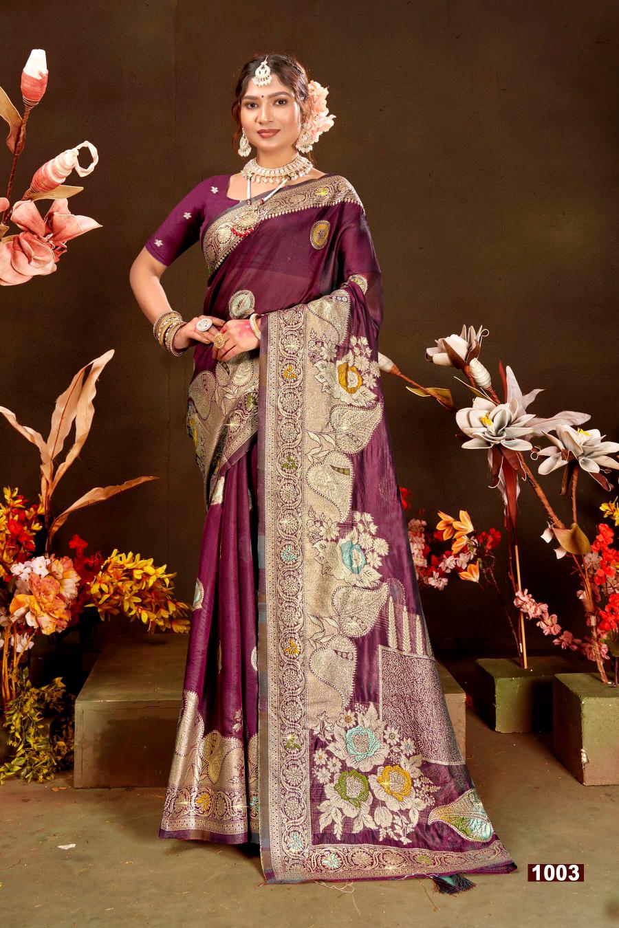 Looking for Mahabharat dola sarovski Saroj vol.4 soft dola silk saree Full Catalouge at Best Price? Buy Now Mahabharat dola sarovski Saroj vol.4 soft dola silk saree at Wholesale Rate of Rs 6300 with Total 6 Pcs from authroized dealer and supplier of Saroj Textiles Brand. Cost of Each piece is just only Rs 1050 which is very low and affordable price to resale the product in your retail store. rrgandhi is Surat based Wholesale Supplier & Dealer of Saroj Textiles Brand. Click on Brand name to Know more about Brand's products.
