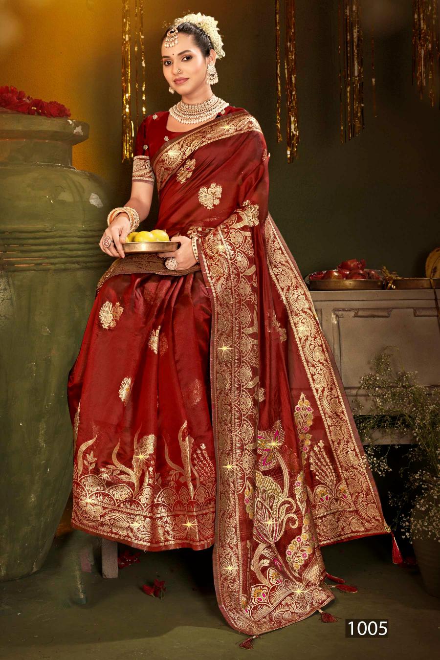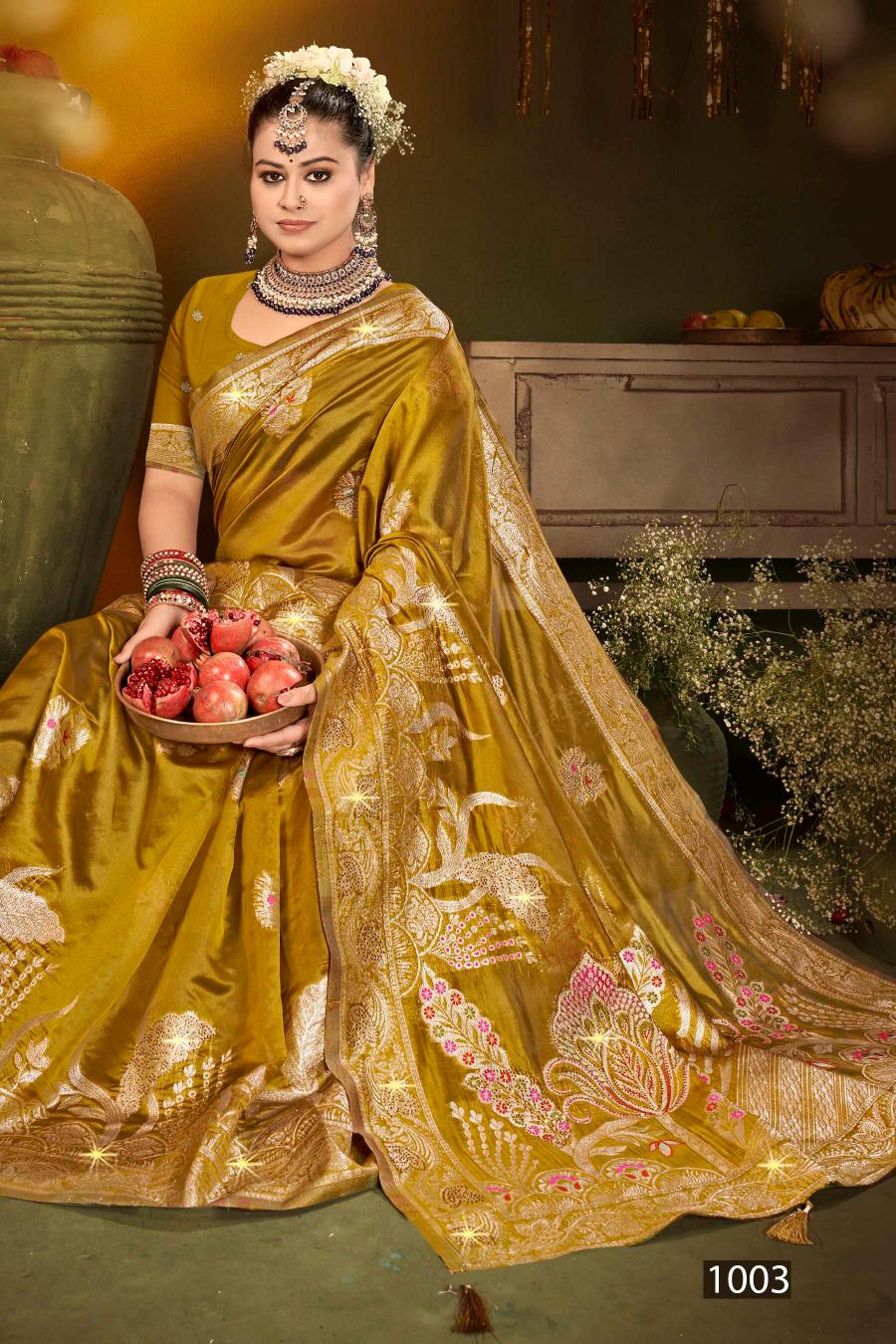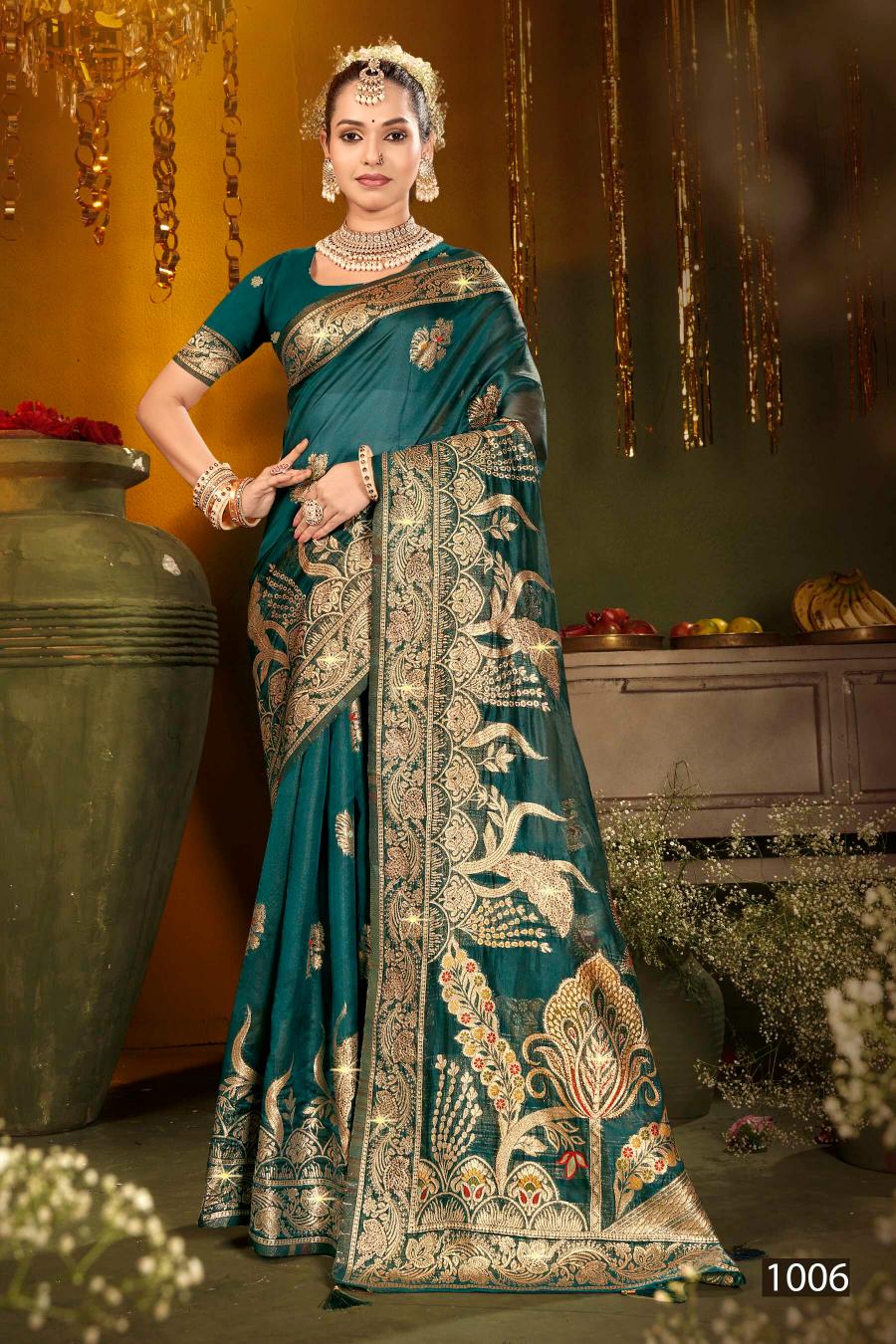Looking for Mahabharat dola sarovski Saroj vol.6 soft dola silk saree Full Catalouge at Best Price? Buy Now Mahabharat dola sarovski Saroj vol.6 soft dola silk saree at Wholesale Rate of Rs 6300 with Total 6 Pcs from authroized dealer and supplier of Saroj Textiles Brand. Cost of Each piece is just only Rs 1050 which is very low and affordable price to resale the product in your retail store. rrgandhi is Surat based Wholesale Supplier & Dealer of Saroj Textiles Brand. Click on Brand name to Know more about Brand's products.