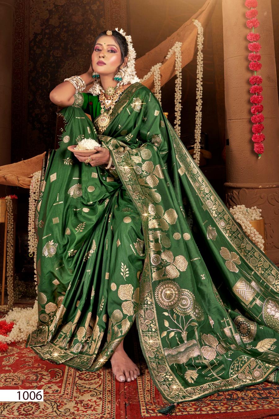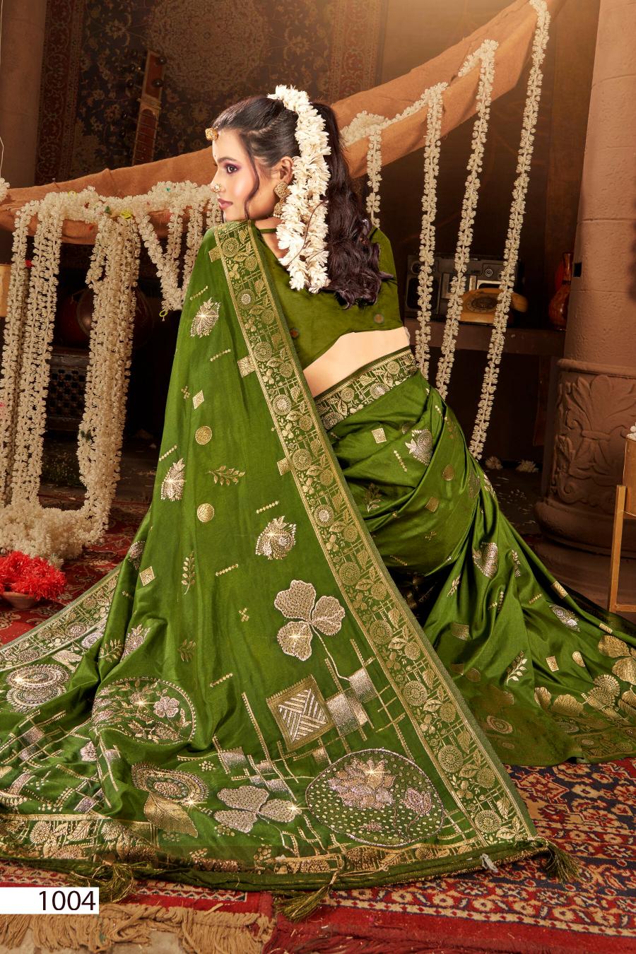 Looking for Mahabharat dola sarovski Saroj vol.9 soft dola silk saree Full Catalouge at Best Price? Buy Now Mahabharat dola sarovski Saroj vol.9 soft dola silk saree at Wholesale Rate of Rs 6300 with Total 6 Pcs from authroized dealer and supplier of Saroj Textiles Brand. Cost of Each piece is just only Rs 1050 which is very low and affordable price to resale the product in your retail store. rrgandhi is Surat based Wholesale Supplier & Dealer of Saroj Textiles Brand. Click on Brand name to Know more about Brand's products.
