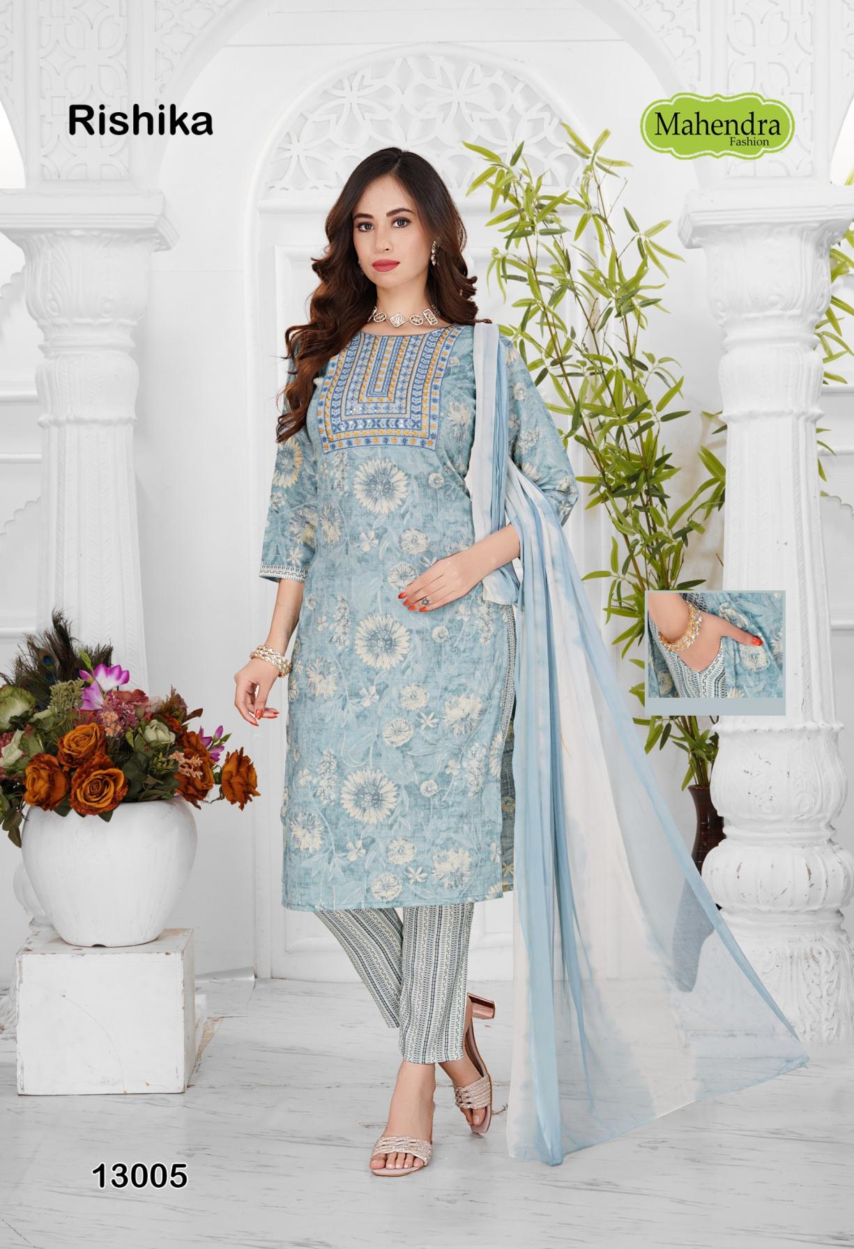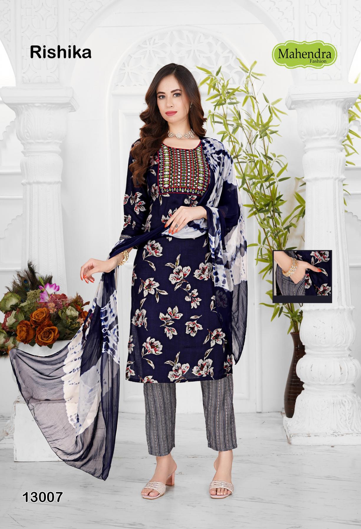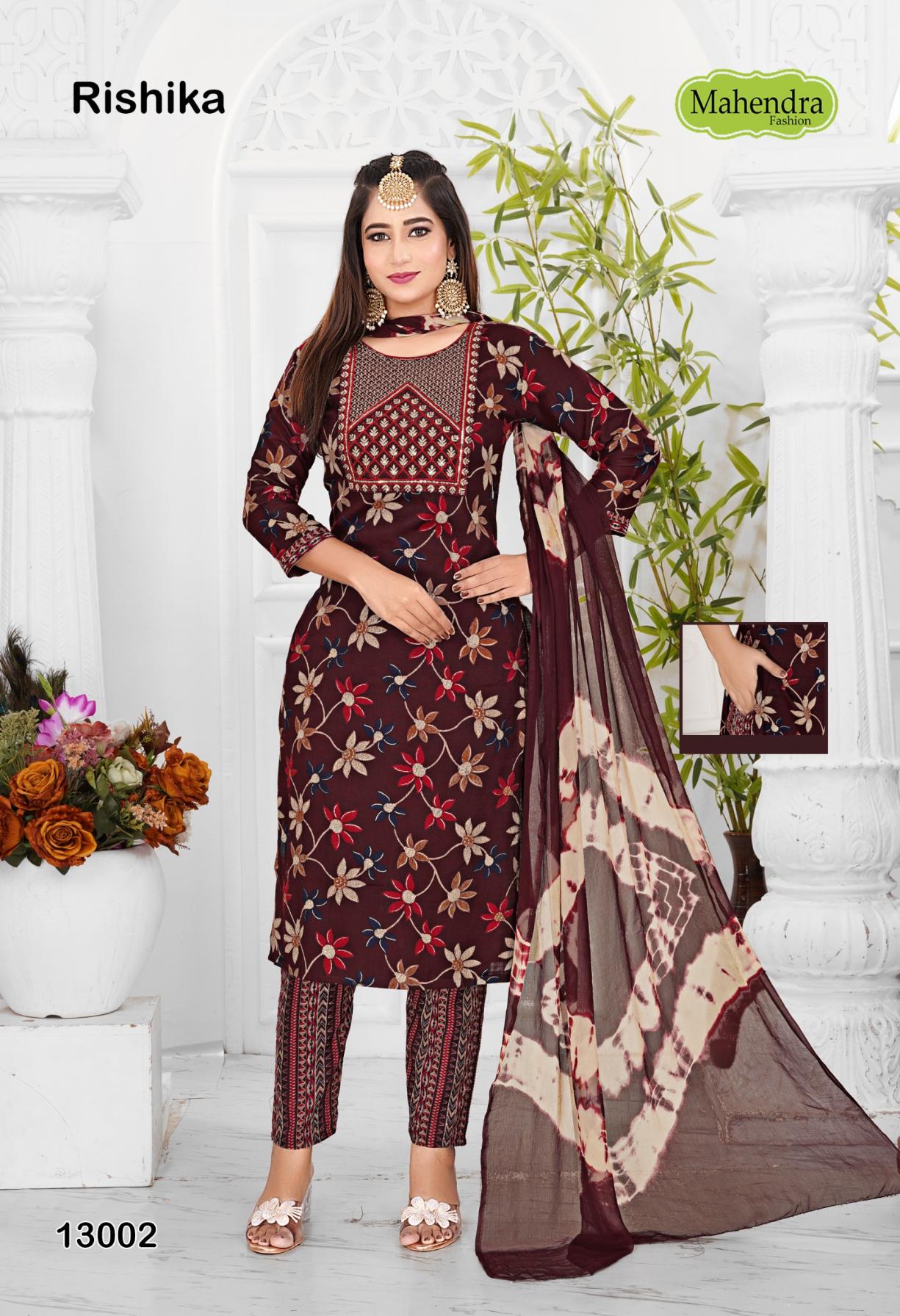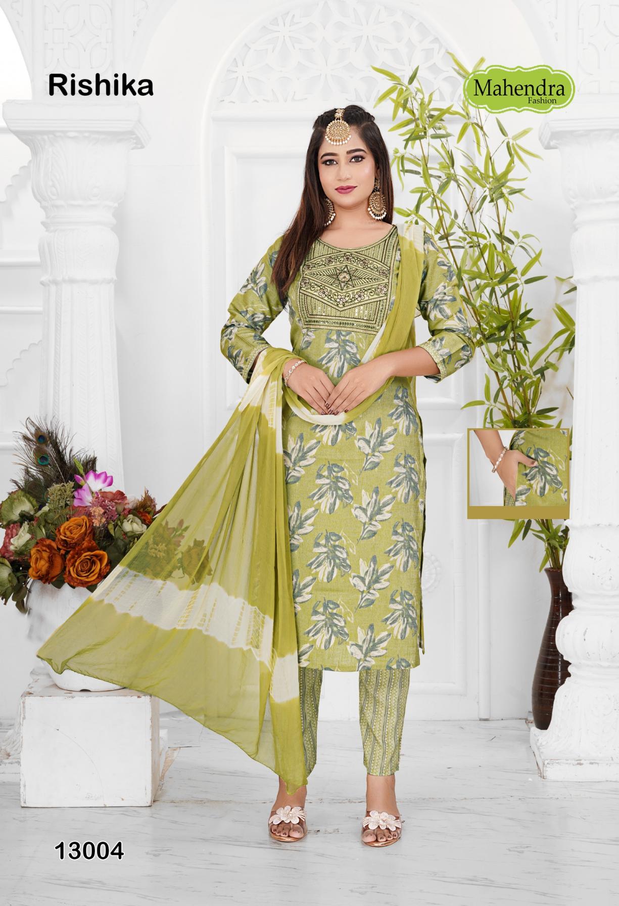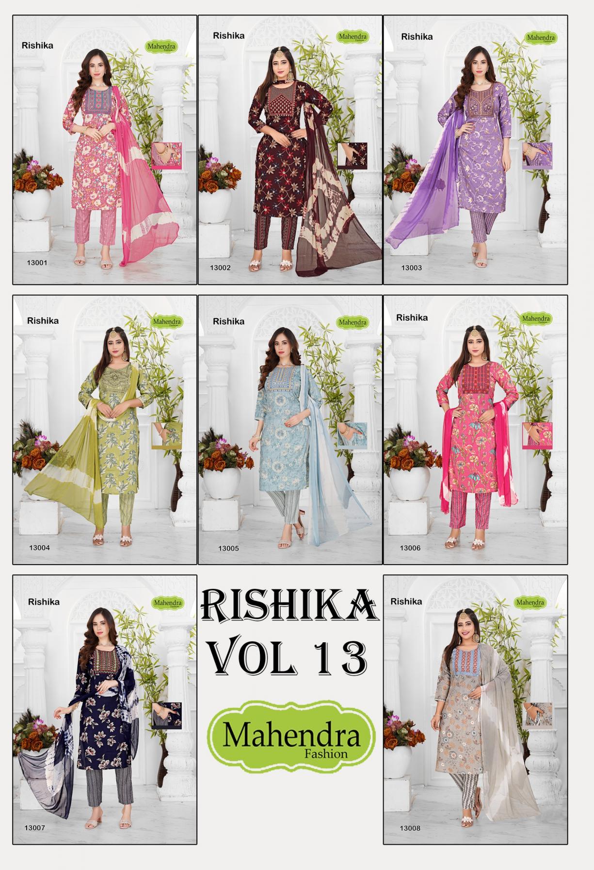Looking for MAHENDRA FASHION RISHIKA VOL 13 HIT DESIGN CAPSULE FULLY STITCH SUITS Full Catalouge at Best Price? Buy Now MAHENDRA FASHION RISHIKA VOL 13 HIT DESIGN CAPSULE FULLY STITCH SUITS at Wholesale Rate of Rs 3440 with Total 8 Pcs from authroized dealer and supplier of Mahendra Fashion Brand. Cost of Each piece is just only Rs 430 which is very low and affordable price to resale the product in your retail store. rrgandhi is Surat based Wholesale Supplier & Dealer of Mahendra Fashion Brand. Click on Brand name to Know more about Brand's products.
