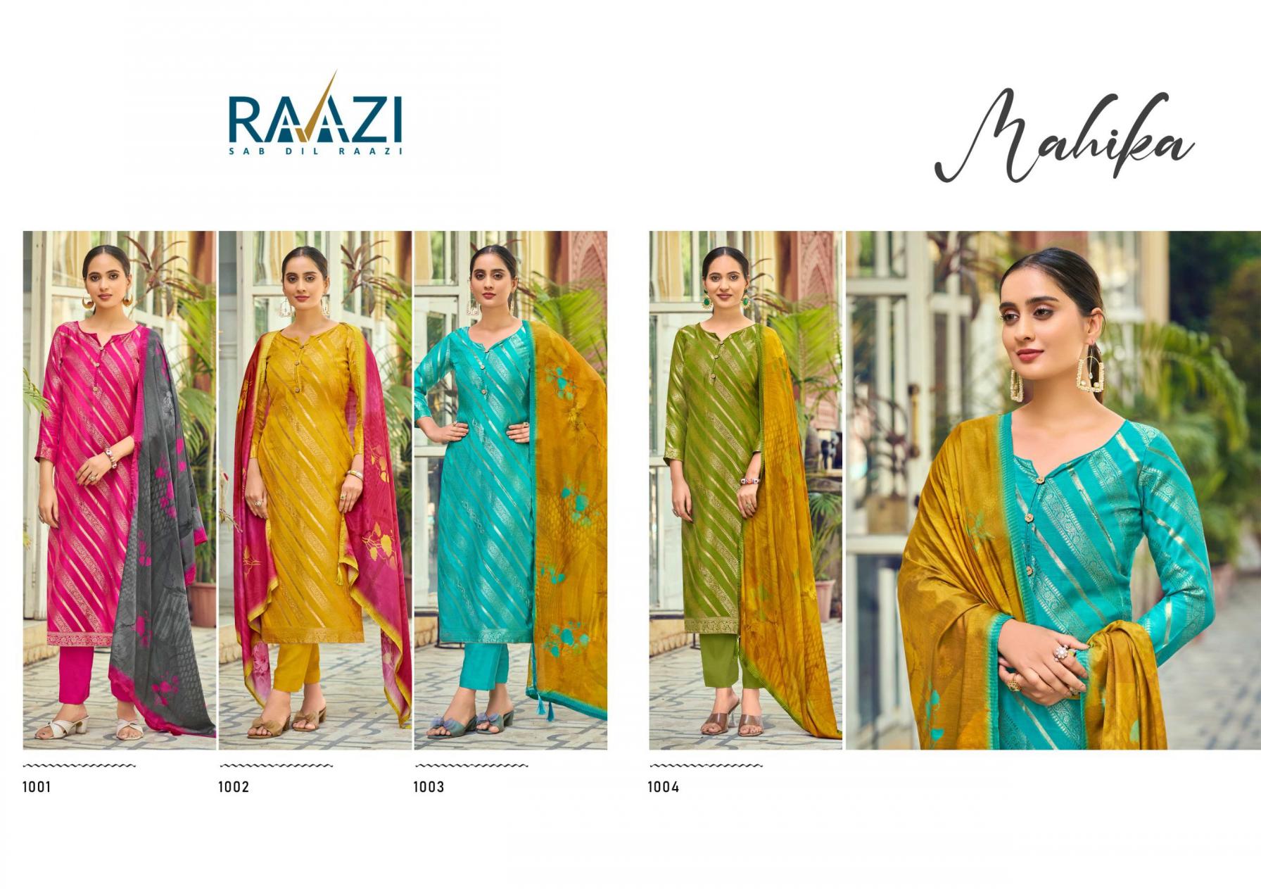 Looking for MAHIKA BY RAMA FASHIONS RAAZI BEMBERG SILK NEW DESIGN DRESS 2025 Full Catalouge at Best Price? Buy Now MAHIKA BY RAMA FASHIONS RAAZI BEMBERG SILK NEW DESIGN DRESS 2025 at Wholesale Rate of Rs 5580 with Total 4 Pcs from authroized dealer and supplier of Rama Fashion Brand. Cost of Each piece is just only Rs 1395 which is very low and affordable price to resale the product in your retail store. rrgandhi is Surat based Wholesale Supplier & Dealer of Rama Fashion Brand. Click on Brand name to Know more about Brand's products.