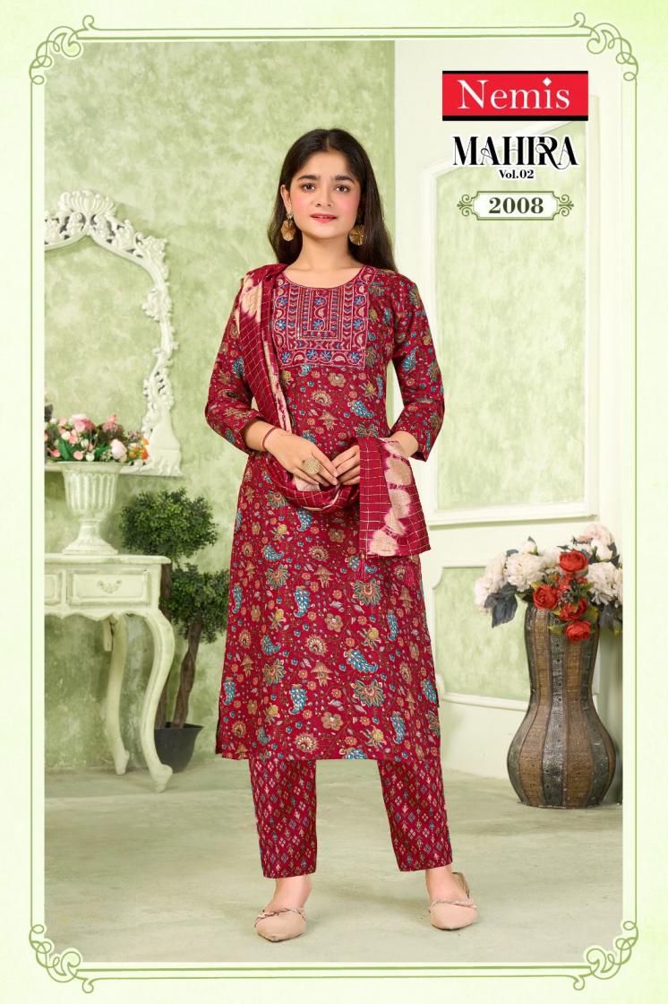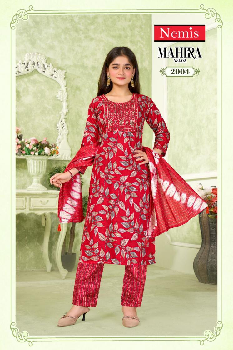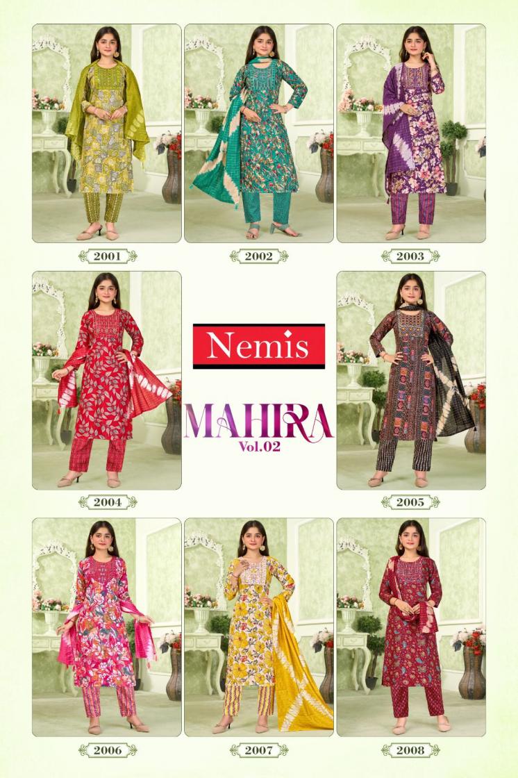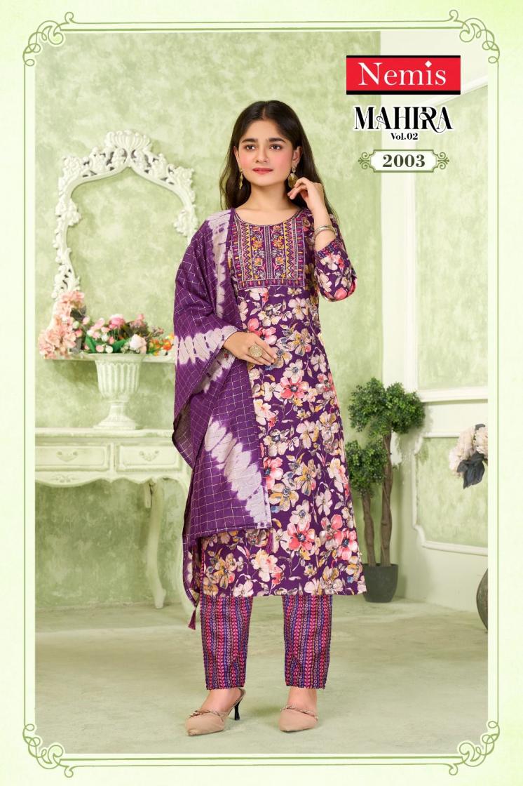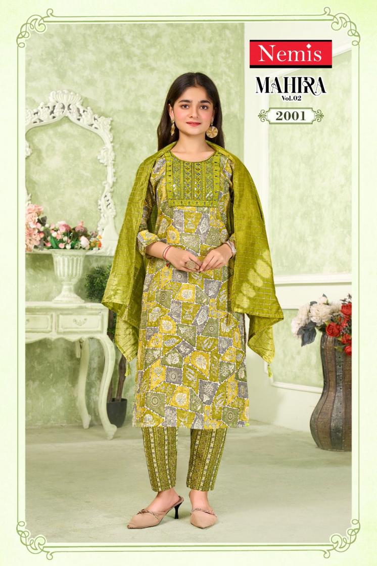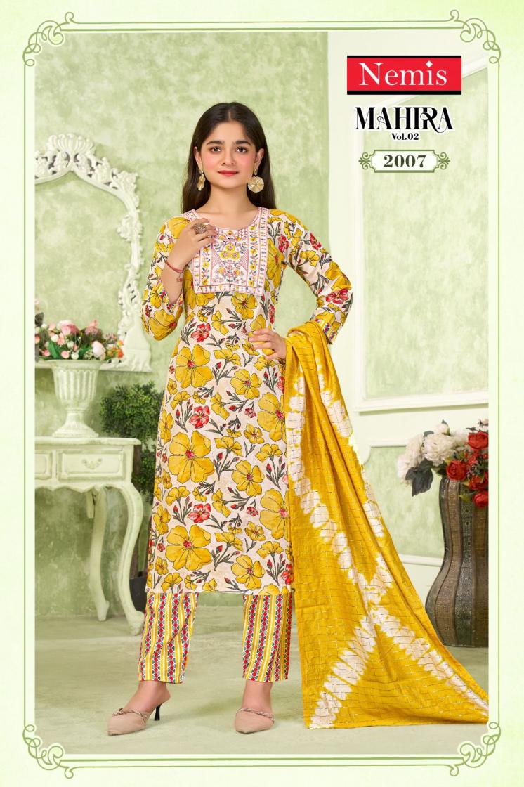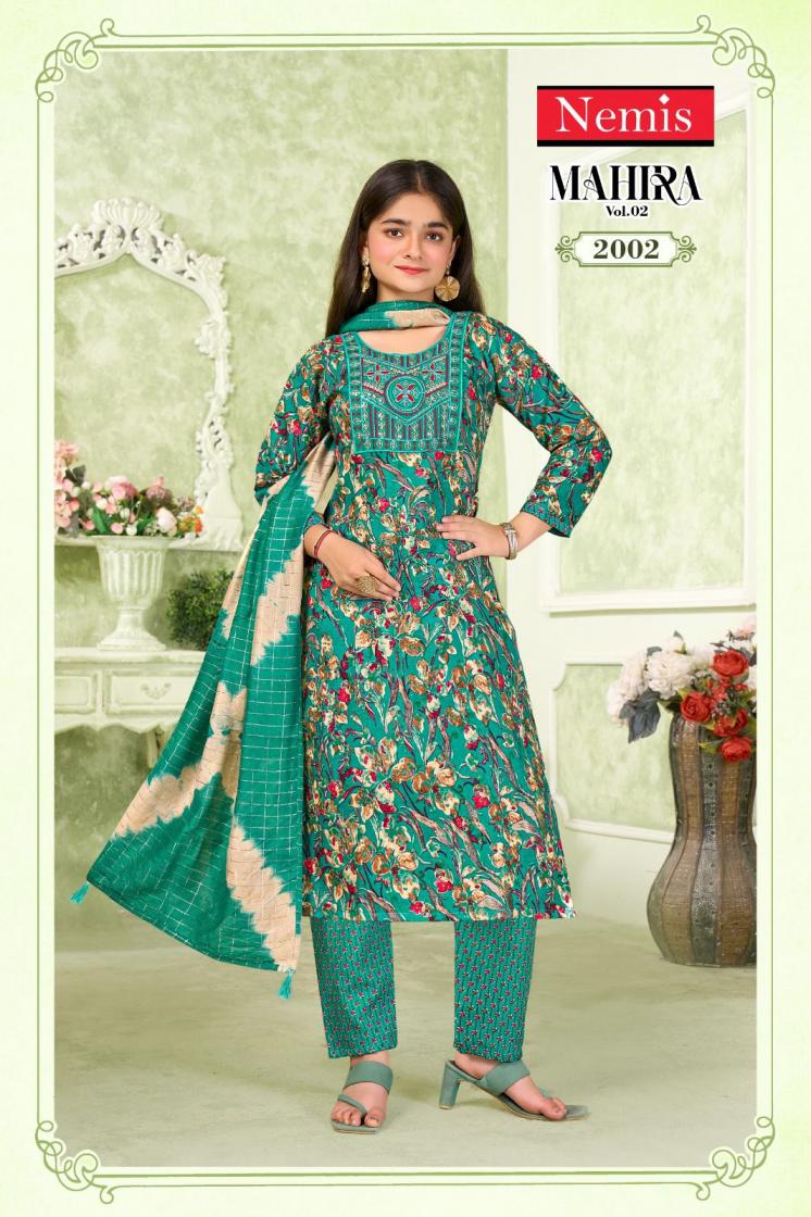Looking for MAHIRA VOL 2 BY NEMIS FULL STITCH KIDS CAPSULE PRINT COMBO SUIT FOR WOMEN Full Catalouge at Best Price? Buy Now MAHIRA VOL 2 BY NEMIS FULL STITCH KIDS CAPSULE PRINT COMBO SUIT FOR WOMEN at Wholesale Rate of Rs 8280 with Total 24 Pcs from authroized dealer and supplier of Nemis Brand. Cost of Each piece is just only Rs 345 which is very low and affordable price to resale the product in your retail store. rrgandhi is Surat based Wholesale Supplier & Dealer of Nemis Brand. Click on Brand name to Know more about Brand's products.