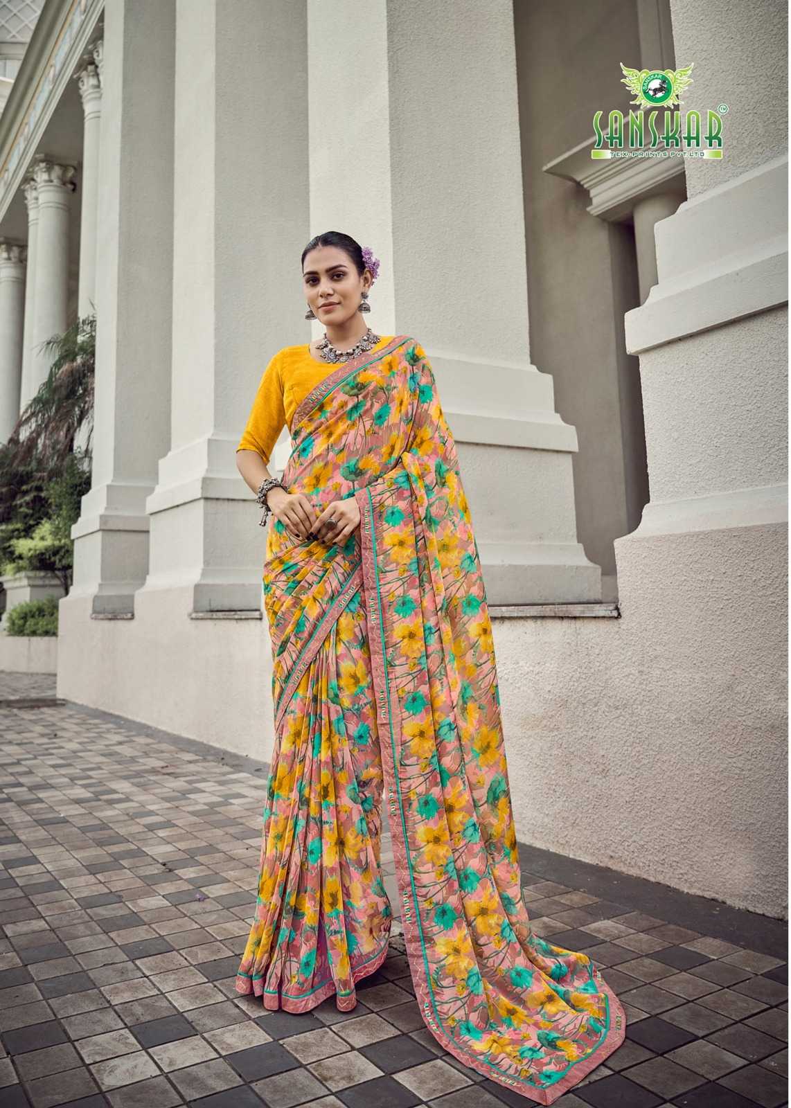 Looking for malaika by sanskar tex prints unique embroidery georgette saree Full Catalouge at Best Price? Buy Now malaika by sanskar tex prints unique embroidery georgette saree at Wholesale Rate of Rs 7020 with Total 12 Pcs from authroized dealer and supplier of Brand. Cost of Each piece is just only Rs 585 which is very low and affordable price to resale the product in your retail store. rrgandhi is Surat based Wholesale Supplier & Dealer of Brand. Click on Brand name to Know more about Brand's products.