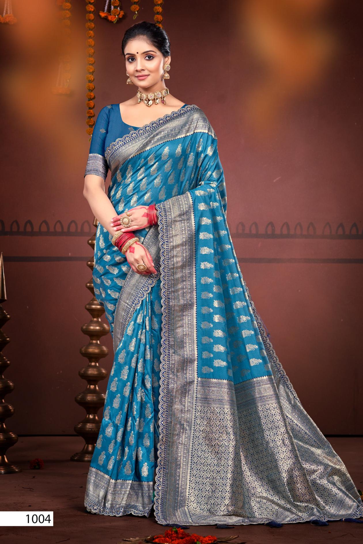 Looking for Man maryada silk saroski Saroj vol.1 50*600 silk saree Full Catalouge at Best Price? Buy Now Man maryada silk saroski Saroj vol.1 50*600 silk saree at Wholesale Rate of Rs 4420 with Total 4 Pcs from authroized dealer and supplier of Saroj Textiles Brand. Cost of Each piece is just only Rs 1105 which is very low and affordable price to resale the product in your retail store. rrgandhi is Surat based Wholesale Supplier & Dealer of Saroj Textiles Brand. Click on Brand name to Know more about Brand's products.