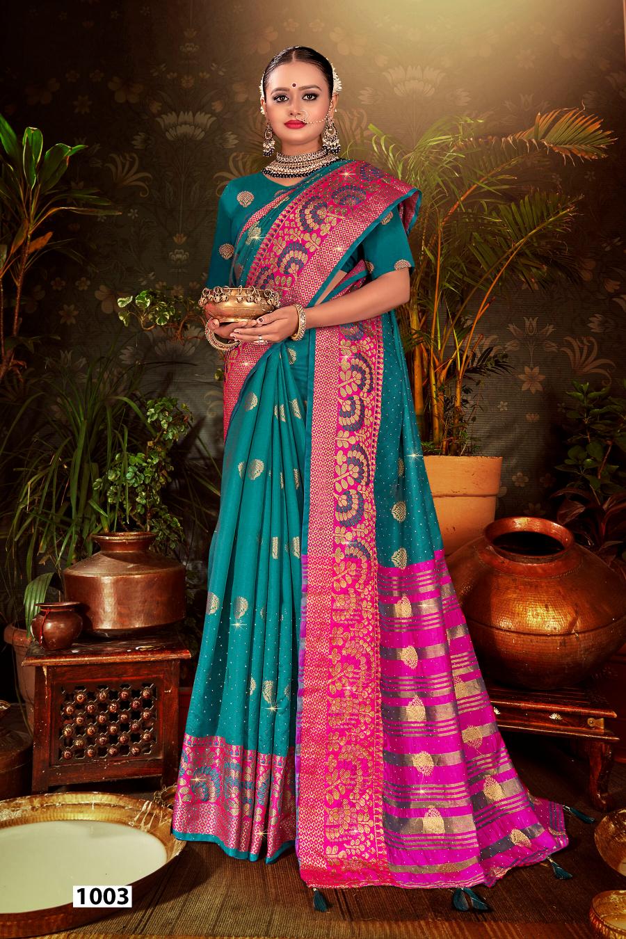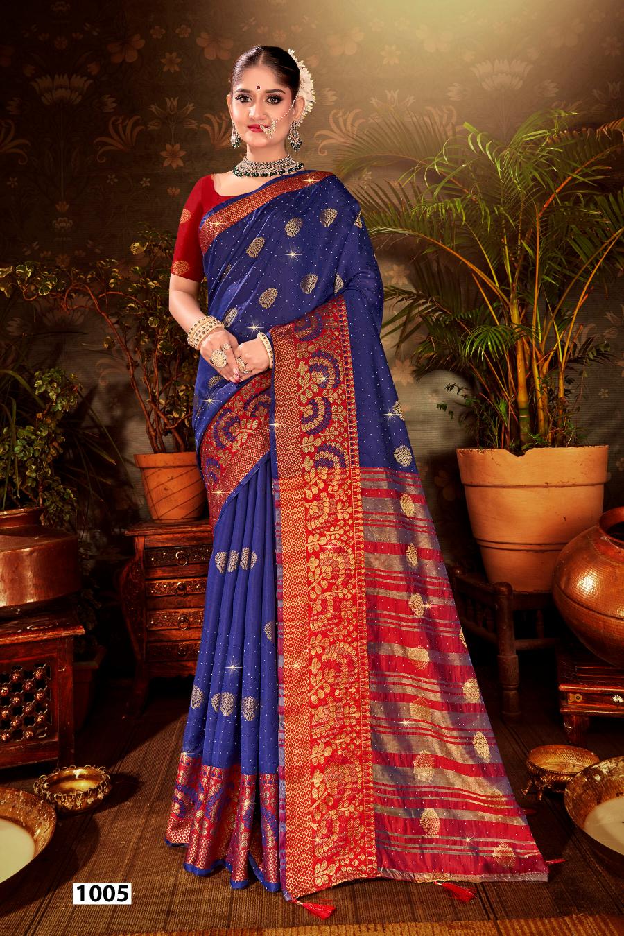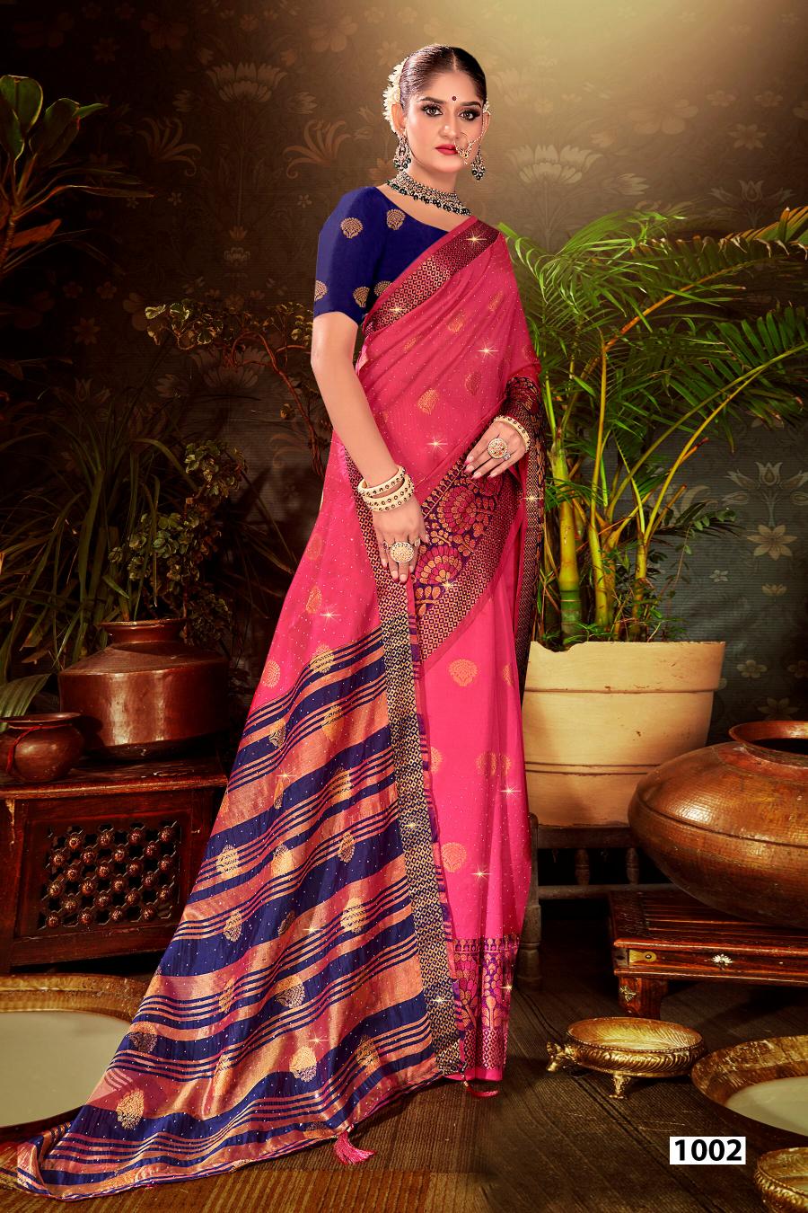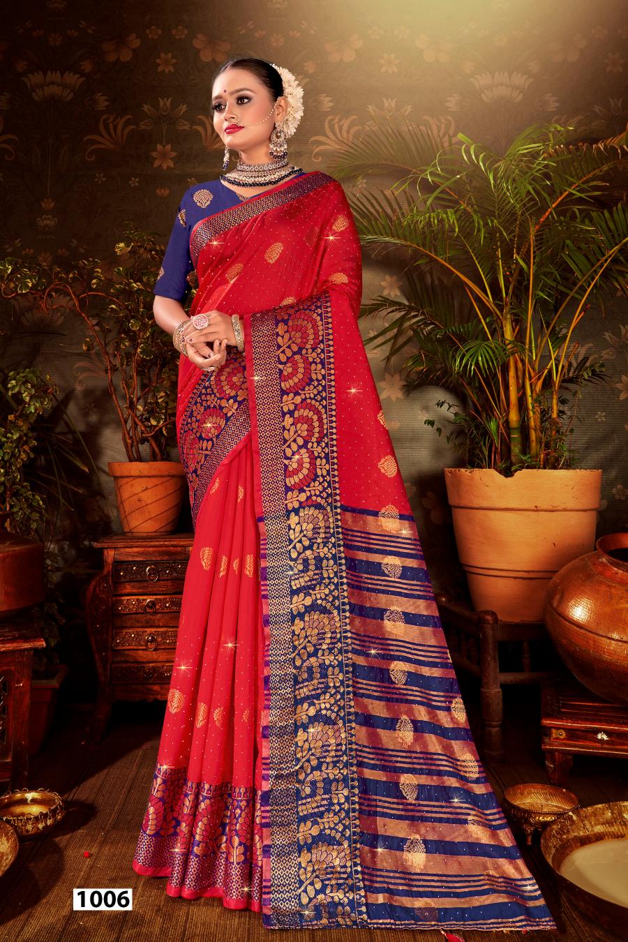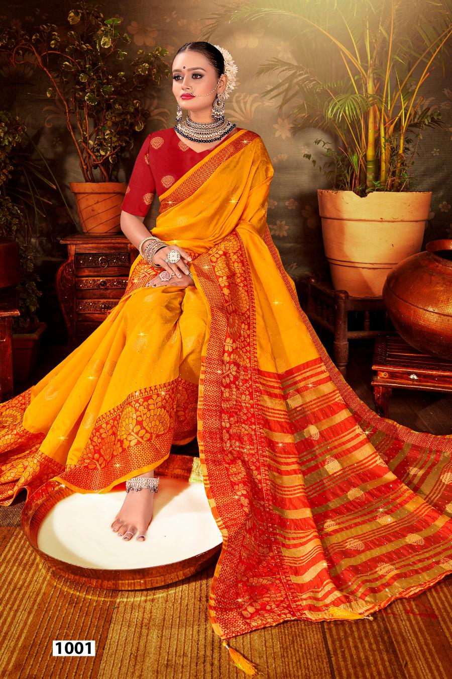 Looking for Mangalam Swarovski Saroj vol.1 Soft silk saree Full Catalouge at Best Price? Buy Now Mangalam Swarovski Saroj vol.1 Soft silk saree at Wholesale Rate of Rs 2700 with Total 6 Pcs from authroized dealer and supplier of Saroj Textiles Brand. Cost of Each piece is just only Rs 450 which is very low and affordable price to resale the product in your retail store. rrgandhi is Surat based Wholesale Supplier & Dealer of Saroj Textiles Brand. Click on Brand name to Know more about Brand's products.