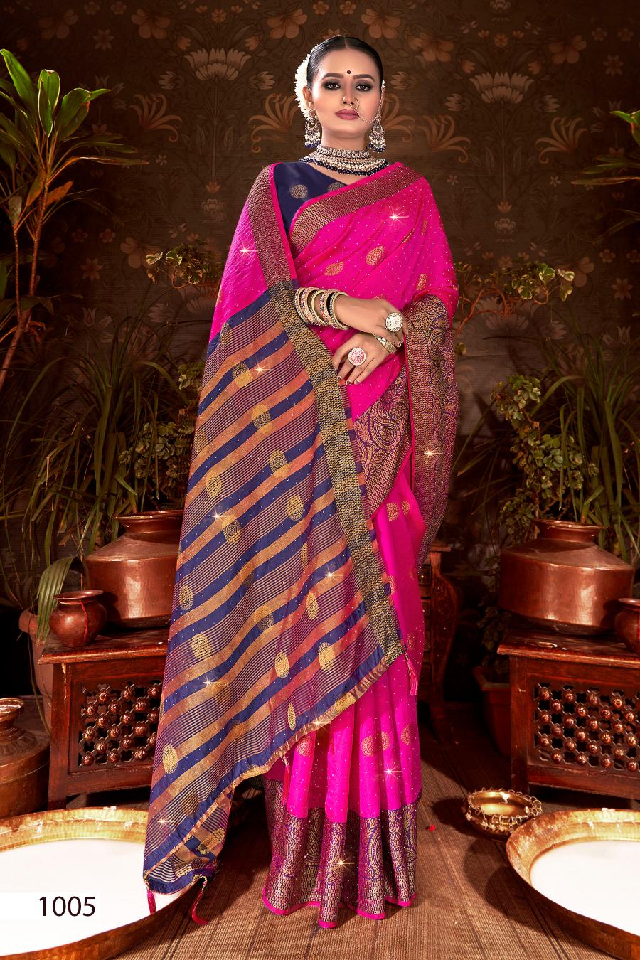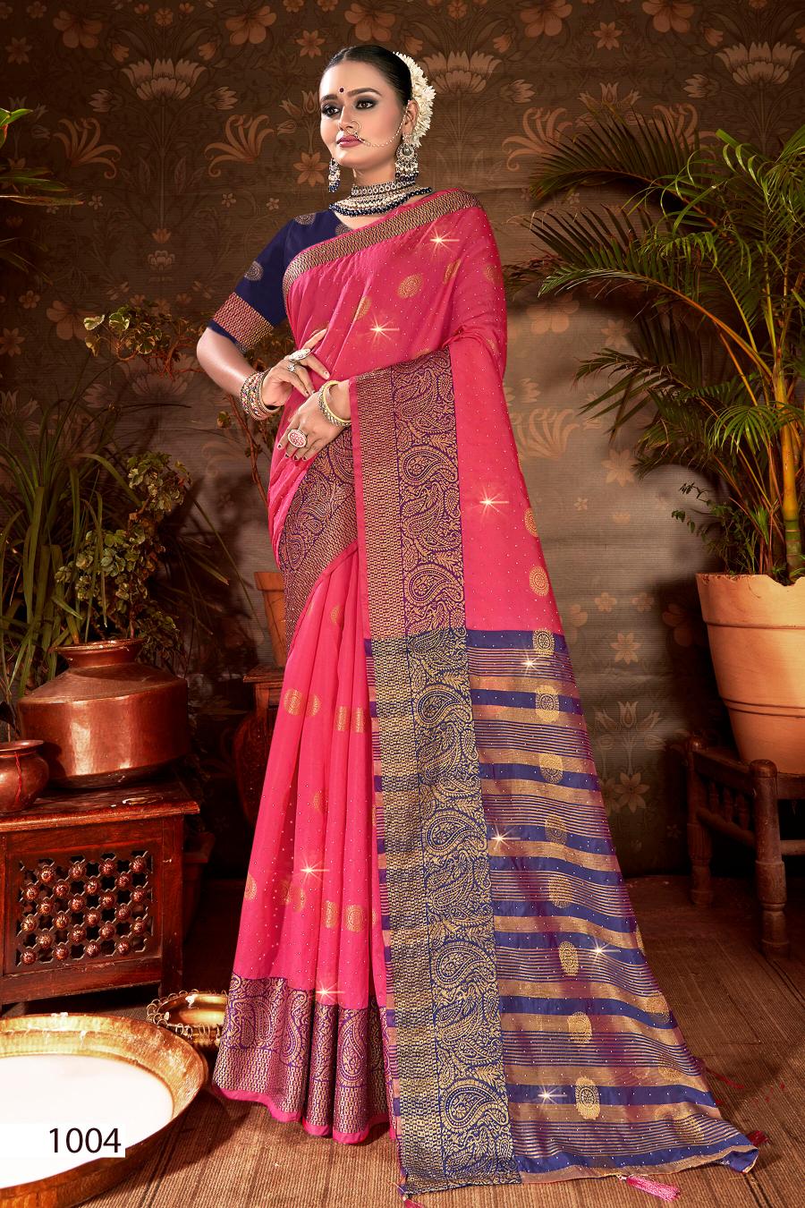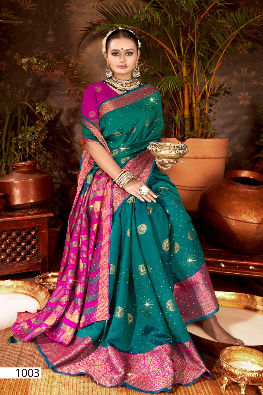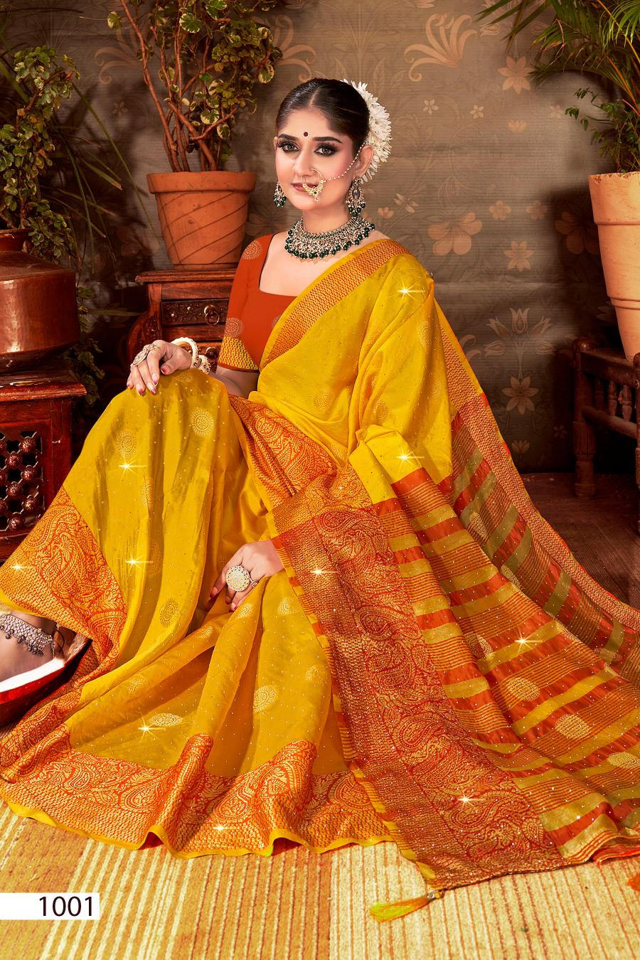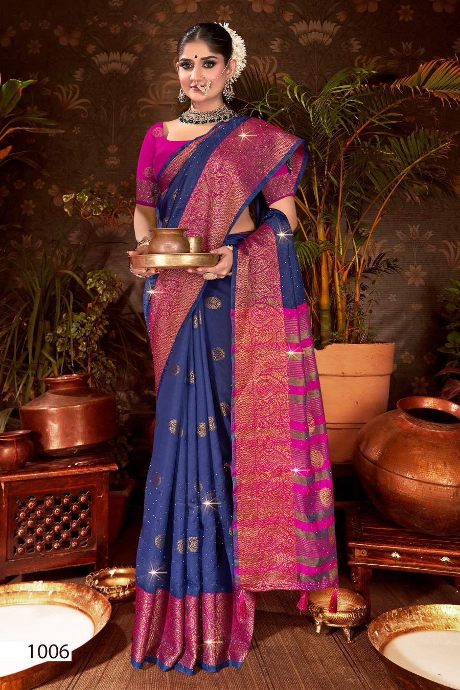 Looking for Mangalam Swarovski Saroj vol.3 Soft silk saree Full Catalouge at Best Price? Buy Now Mangalam Swarovski Saroj vol.3 Soft silk saree at Wholesale Rate of Rs 2700 with Total 6 Pcs from authroized dealer and supplier of Saroj Textiles Brand. Cost of Each piece is just only Rs 450 which is very low and affordable price to resale the product in your retail store. rrgandhi is Surat based Wholesale Supplier & Dealer of Saroj Textiles Brand. Click on Brand name to Know more about Brand's products.