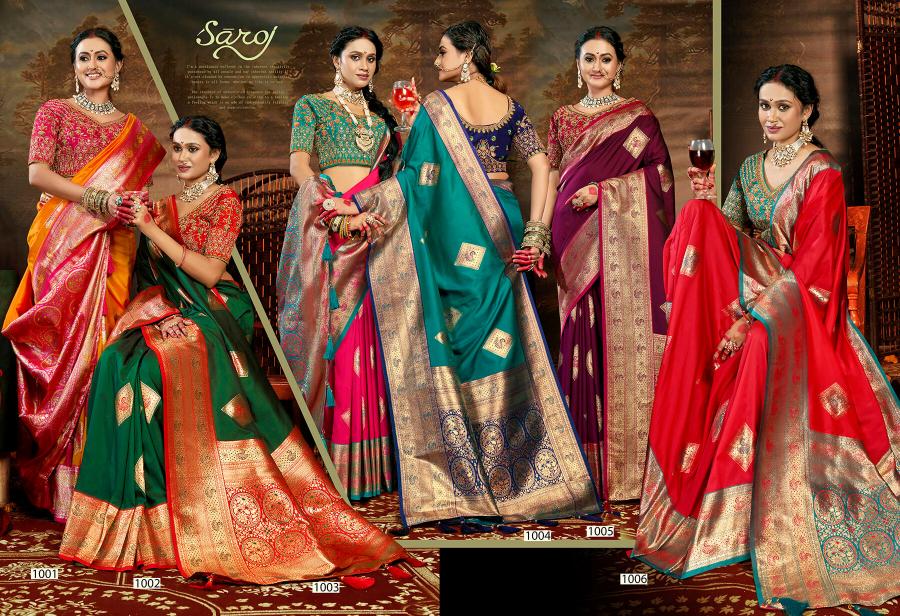 Looking for Mangalgiri silk Saroj vol.1 50*600 Silk saree Full Catalouge at Best Price? Buy Now Mangalgiri silk Saroj vol.1 50*600 Silk saree at Wholesale Rate of Rs 8340 with Total 6 Pcs from authroized dealer and supplier of Saroj Textiles Brand. Cost of Each piece is just only Rs 1390 which is very low and affordable price to resale the product in your retail store. rrgandhi is Surat based Wholesale Supplier & Dealer of Saroj Textiles Brand. Click on Brand name to Know more about Brand's products.