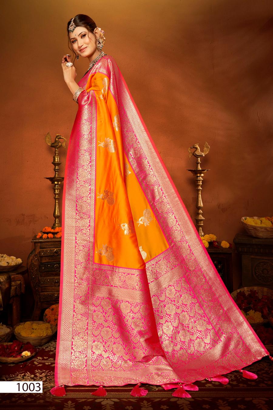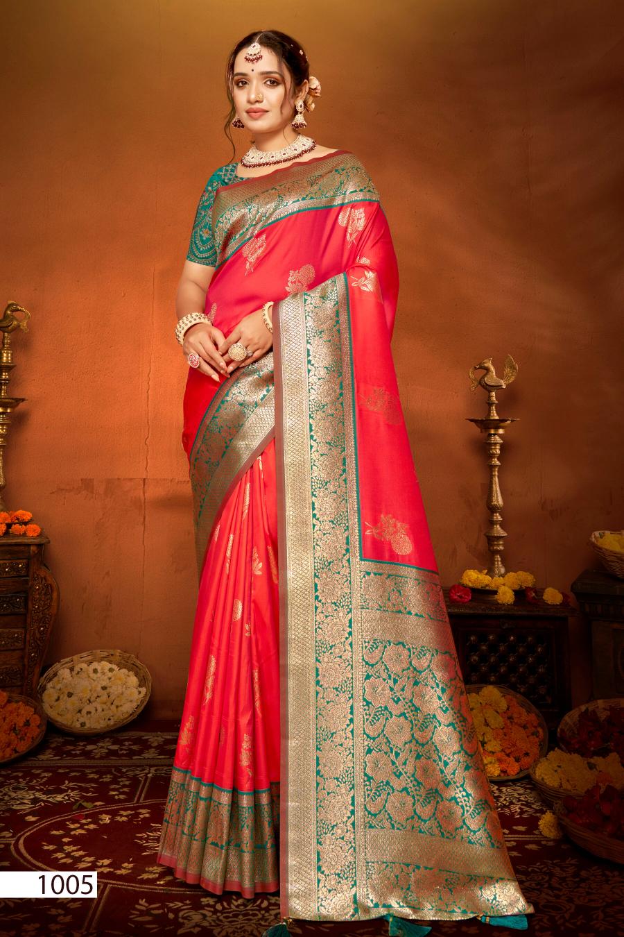 Looking for Mangalgiri silk Saroj vol.2 50*600 Silk saree Full Catalouge at Best Price? Buy Now Mangalgiri silk Saroj vol.2 50*600 Silk saree at Wholesale Rate of Rs 8340 with Total 6 Pcs from authroized dealer and supplier of Saroj Textiles Brand. Cost of Each piece is just only Rs 1390 which is very low and affordable price to resale the product in your retail store. rrgandhi is Surat based Wholesale Supplier & Dealer of Saroj Textiles Brand. Click on Brand name to Know more about Brand's products.
