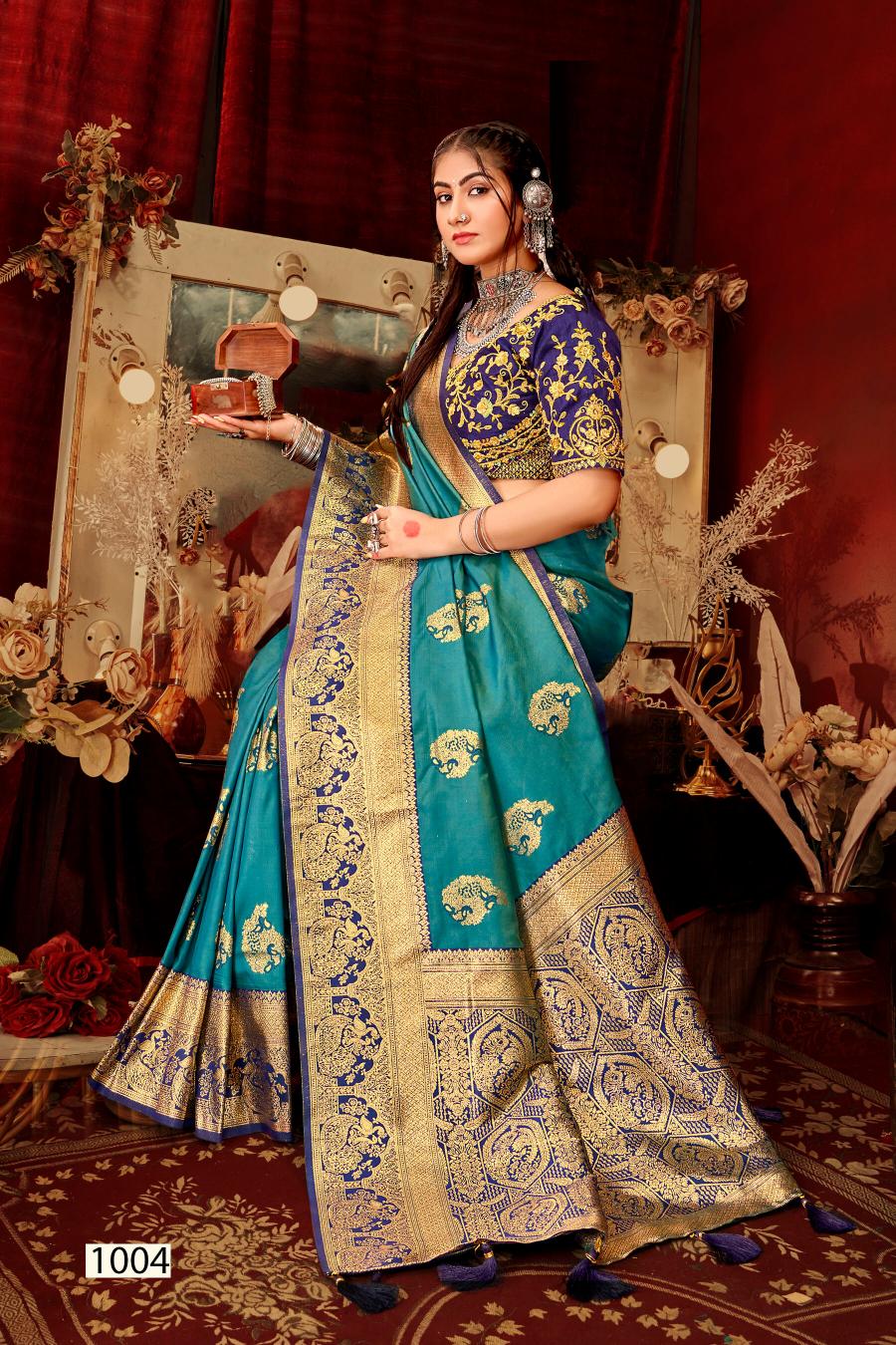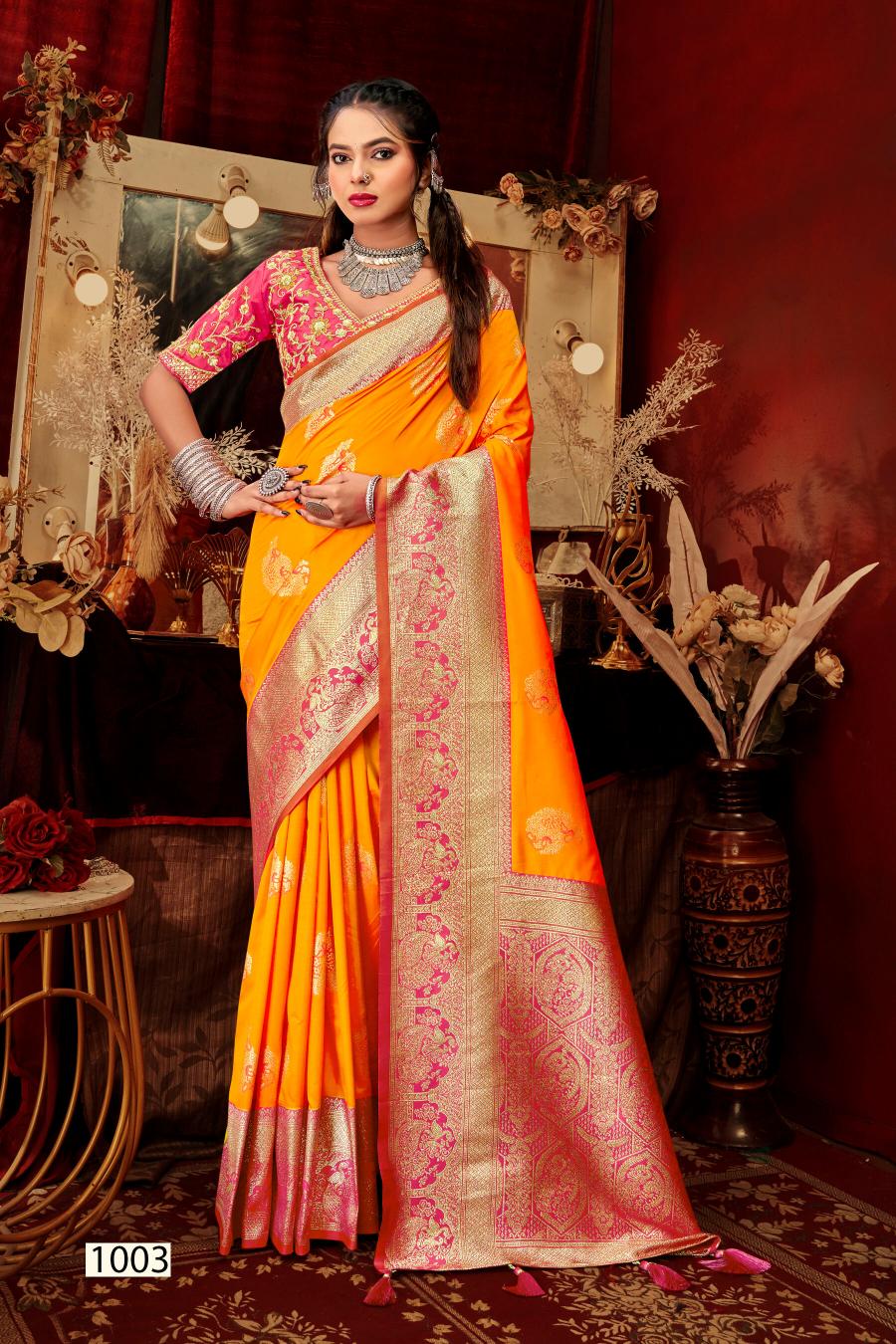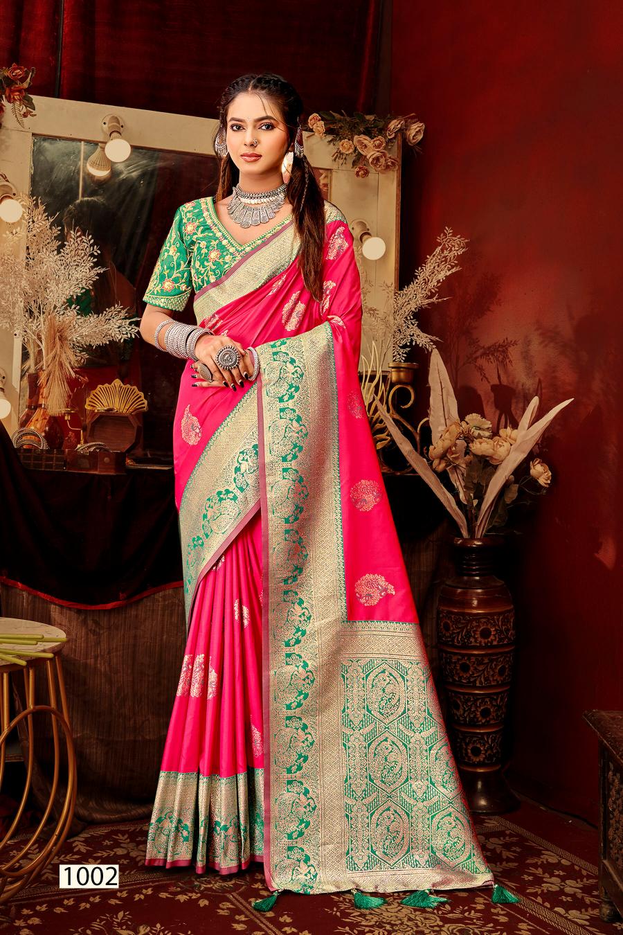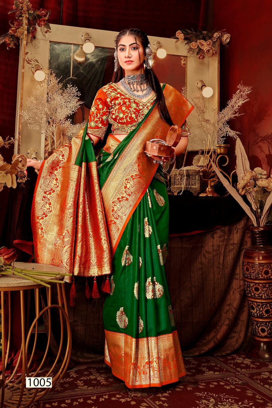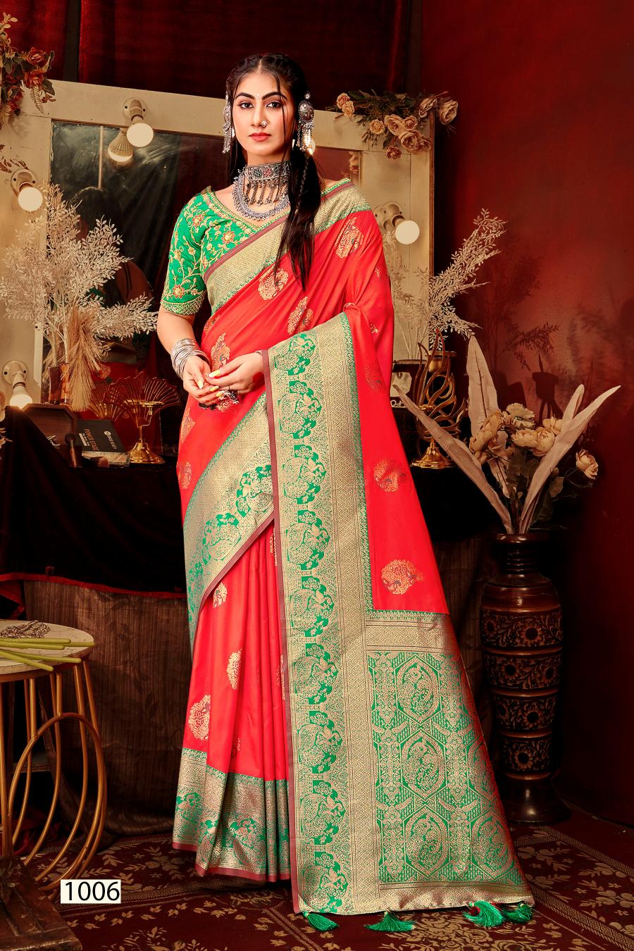 Looking for Mangalgiri silk Saroj vol.5 50*600 Silk saree Full Catalouge at Best Price? Buy Now Mangalgiri silk Saroj vol.5 50*600 Silk saree at Wholesale Rate of Rs 8340 with Total 6 Pcs from authroized dealer and supplier of Saroj Textiles Brand. Cost of Each piece is just only Rs 1390 which is very low and affordable price to resale the product in your retail store. rrgandhi is Surat based Wholesale Supplier & Dealer of Saroj Textiles Brand. Click on Brand name to Know more about Brand's products.