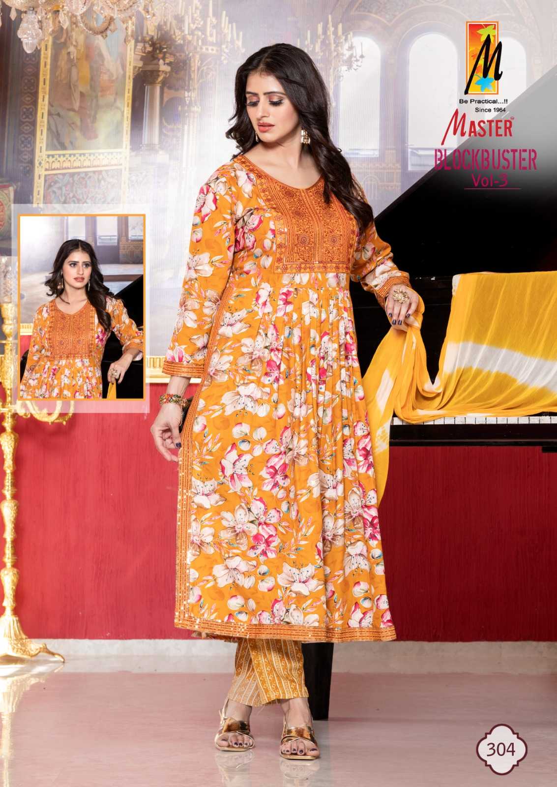 Looking for master presents block buster vol 3 trendy full stitch salwar kameez exports Full Catalouge at Best Price? Buy Now master presents block buster vol 3 trendy full stitch salwar kameez exports at Wholesale Rate of Rs 5192 with Total 8 Pcs from authroized dealer and supplier of Master Kurti Brand. Cost of Each piece is just only Rs 649 which is very low and affordable price to resale the product in your retail store. rrgandhi is Surat based Wholesale Supplier & Dealer of Master Kurti Brand. Click on Brand name to Know more about Brand's products.