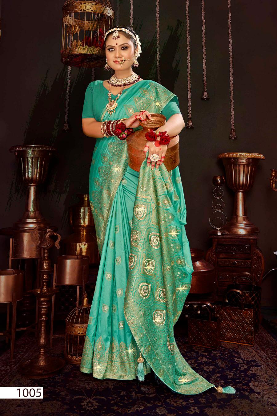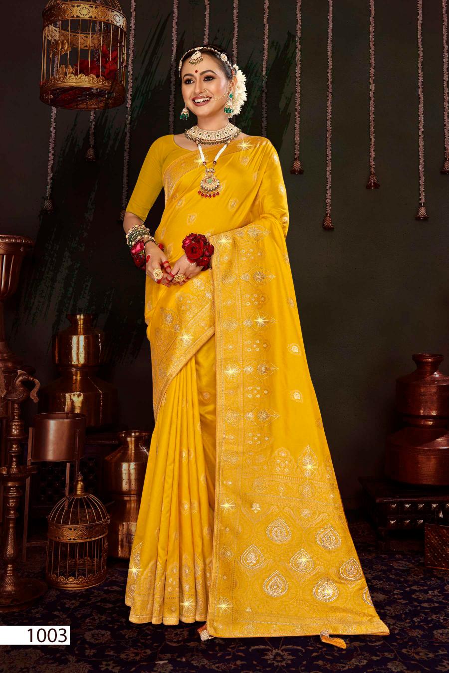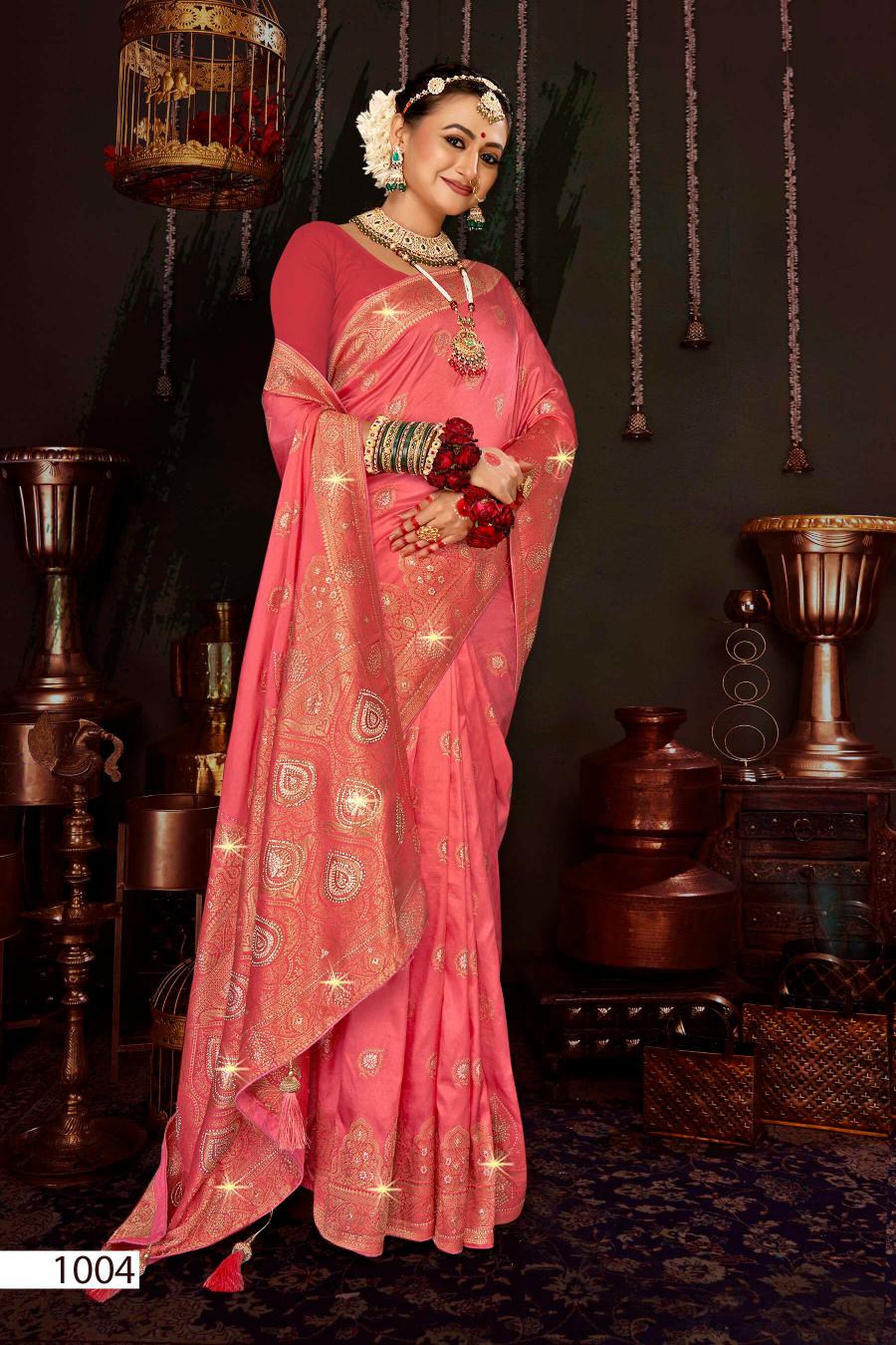Looking for Matushree Dola Saroj vol.4 Dola silk saree Full Catalouge at Best Price? Buy Now Matushree Dola Saroj vol.4 Dola silk saree at Wholesale Rate of Rs 8025 with Total 5 Pcs from authroized dealer and supplier of Saroj Textiles Brand. Cost of Each piece is just only Rs 1605 which is very low and affordable price to resale the product in your retail store. rrgandhi is Surat based Wholesale Supplier & Dealer of Saroj Textiles Brand. Click on Brand name to Know more about Brand's products.