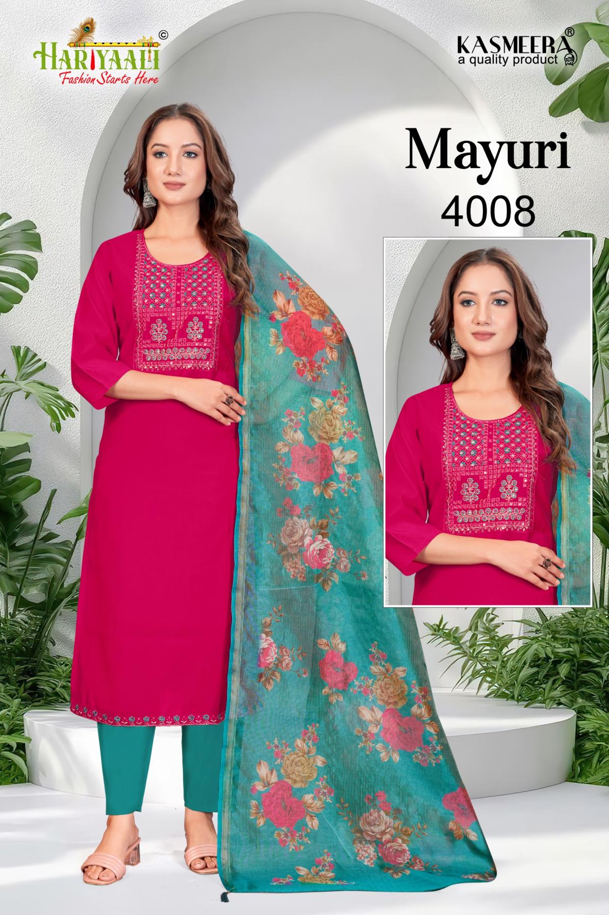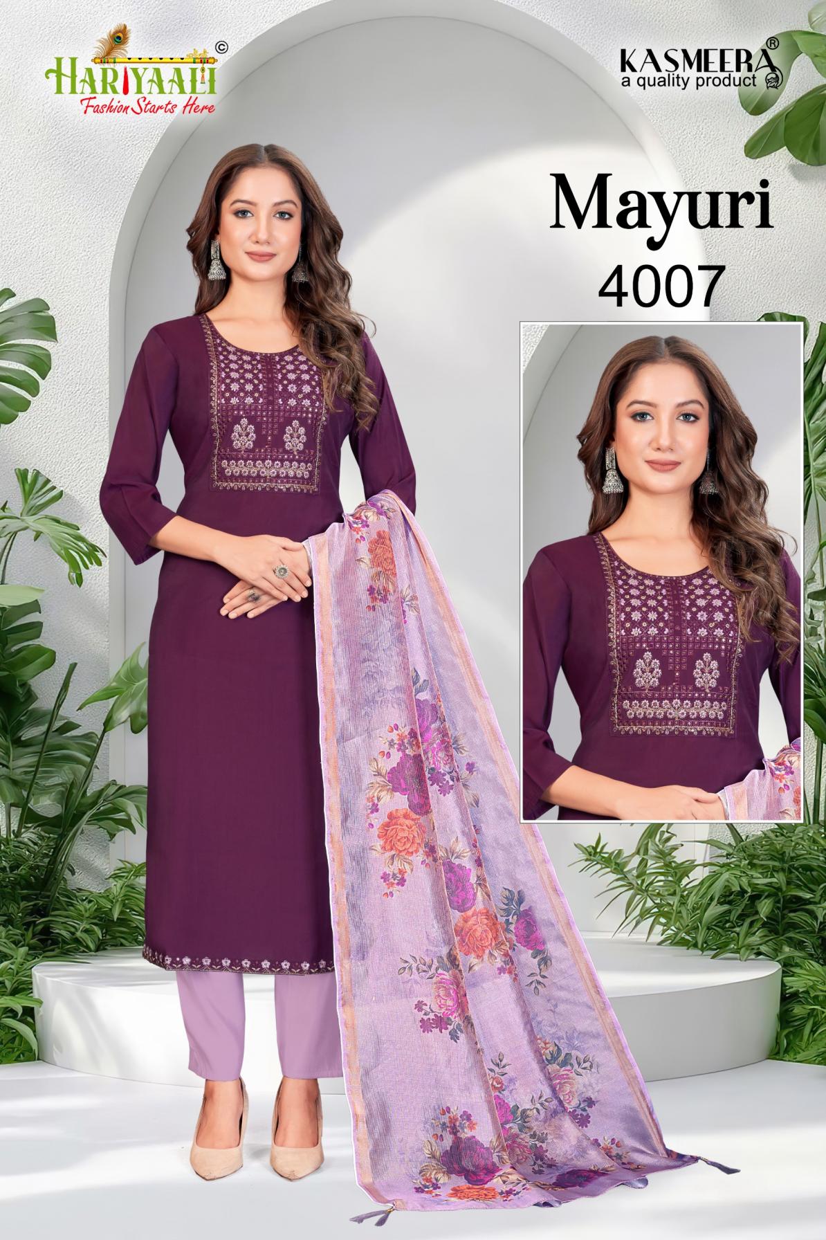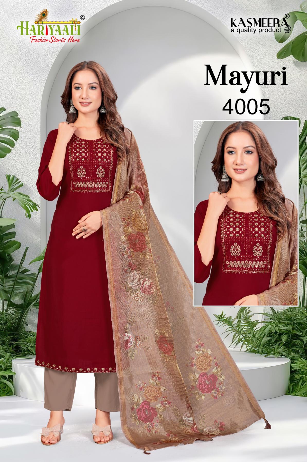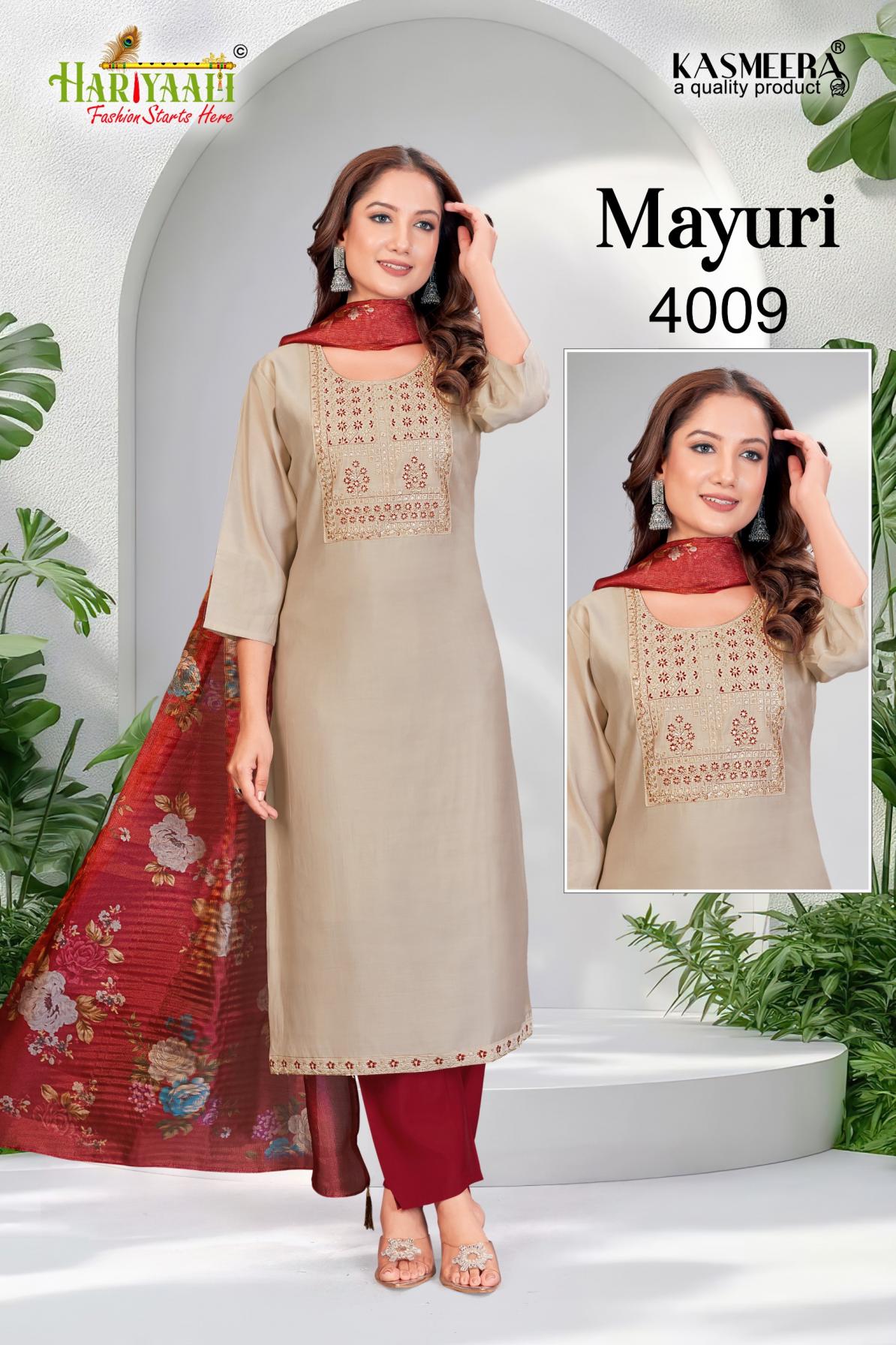 Looking for MAYURI VOL 4 BY HARIYAALI READYMADE UNIQUE SILK COMBO SALWAR SUIT Full Catalouge at Best Price? Buy Now MAYURI VOL 4 BY HARIYAALI READYMADE UNIQUE SILK COMBO SALWAR SUIT at Wholesale Rate of Rs 33200 with Total 40 Pcs from authroized dealer and supplier of Hariyaali Brand. Cost of Each piece is just only Rs 830 which is very low and affordable price to resale the product in your retail store. rrgandhi is Surat based Wholesale Supplier & Dealer of Hariyaali Brand. Click on Brand name to Know more about Brand's products.
