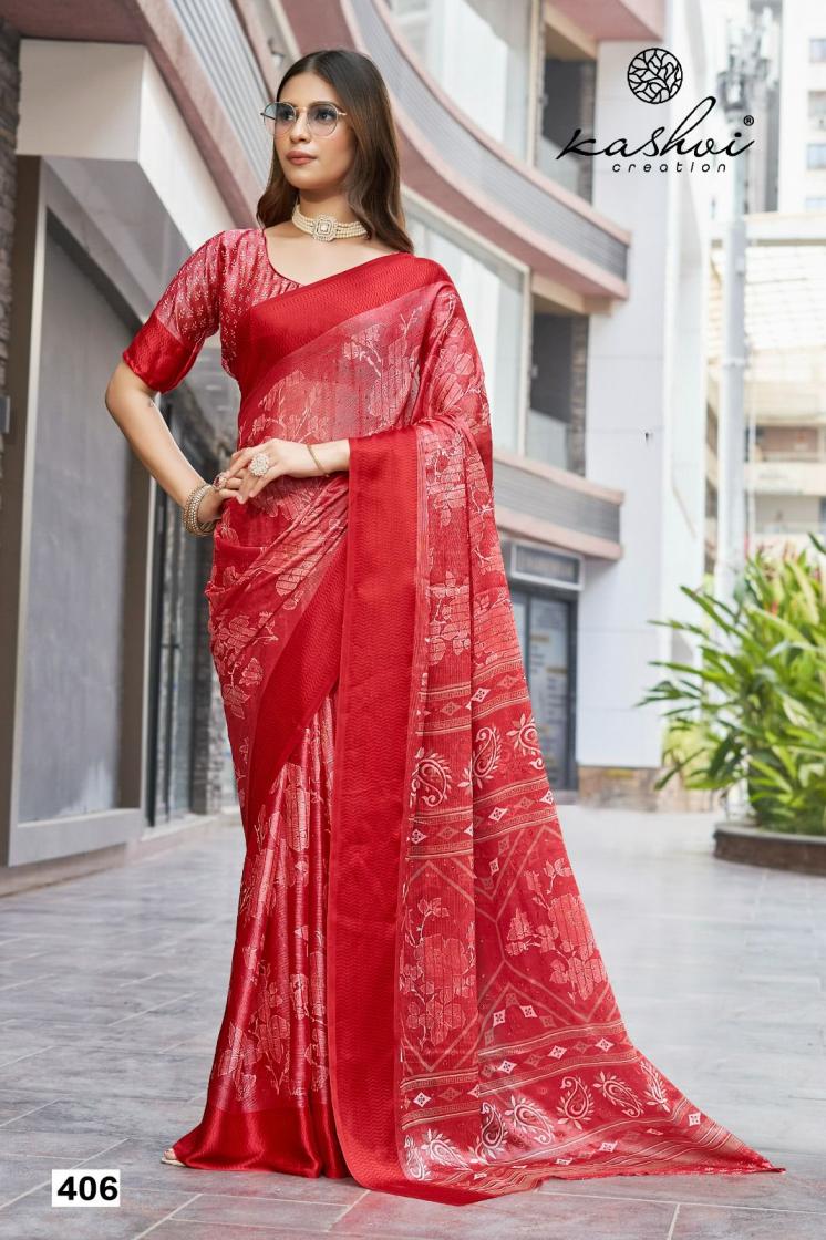 Looking for MEERA VOL 4 BY KASHVI CREATION BRASSO PRINTED SAREES FOR WOMEN Full Catalouge at Best Price? Buy Now MEERA VOL 4 BY KASHVI CREATION BRASSO PRINTED SAREES FOR WOMEN at Wholesale Rate of Rs 4840 with Total 8 Pcs from authroized dealer and supplier of Kashvi Creation Brand. Cost of Each piece is just only Rs 605 which is very low and affordable price to resale the product in your retail store. rrgandhi is Surat based Wholesale Supplier & Dealer of Kashvi Creation Brand. Click on Brand name to Know more about Brand's products.
