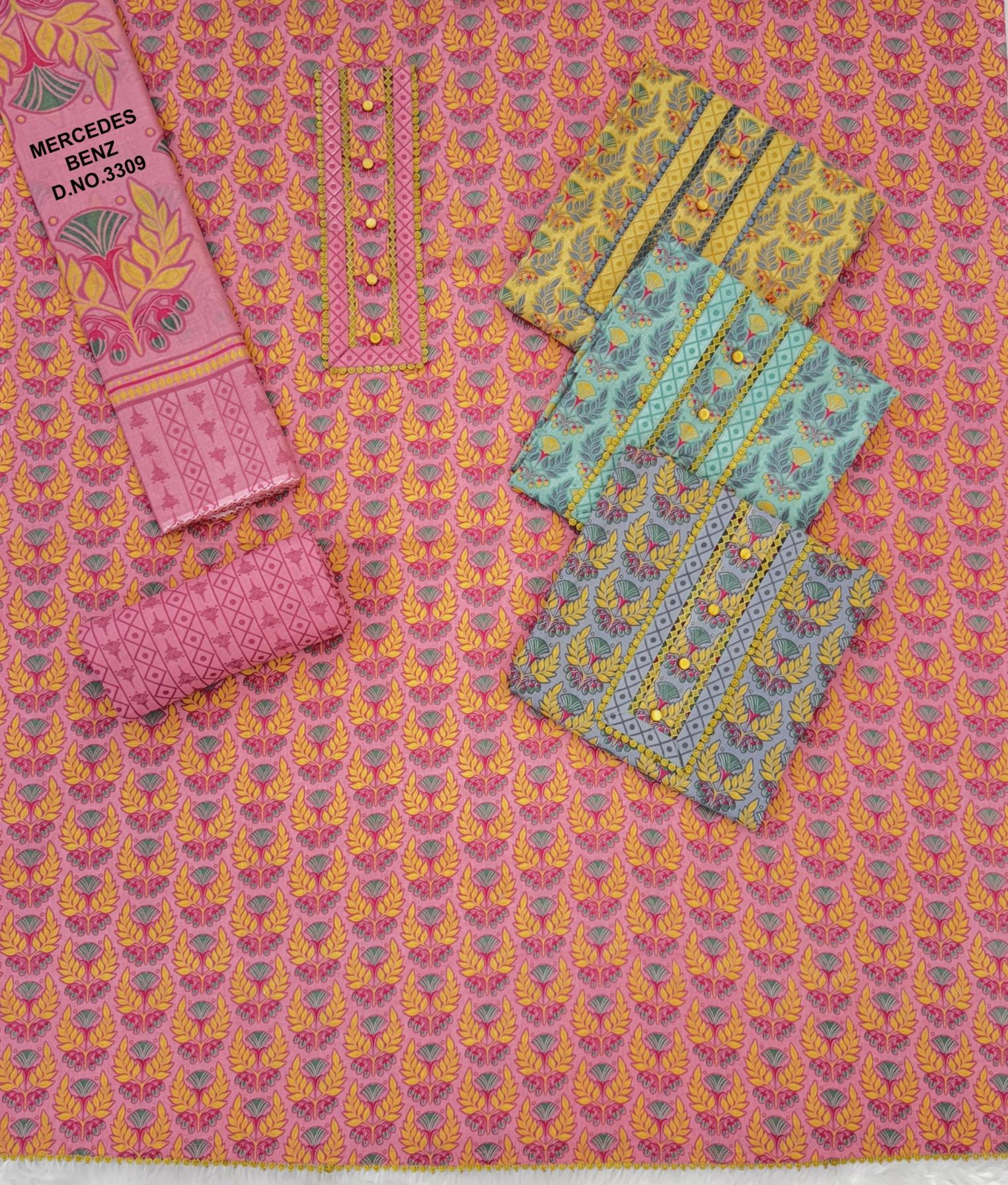 Looking for MERCEDES 3309 BY BIPSON PRINTS COTTON FANCY UNSTITCH 3PCS DRESS Full Catalouge at Best Price? Buy Now MERCEDES 3309 BY BIPSON PRINTS COTTON FANCY UNSTITCH 3PCS DRESS at Wholesale Rate of Rs 2380 with Total 4 Pcs from authroized dealer and supplier of Bipson Fashion Brand. Cost of Each piece is just only Rs 595 which is very low and affordable price to resale the product in your retail store. rrgandhi is Surat based Wholesale Supplier & Dealer of Bipson Fashion Brand. Click on Brand name to Know more about Brand's products.