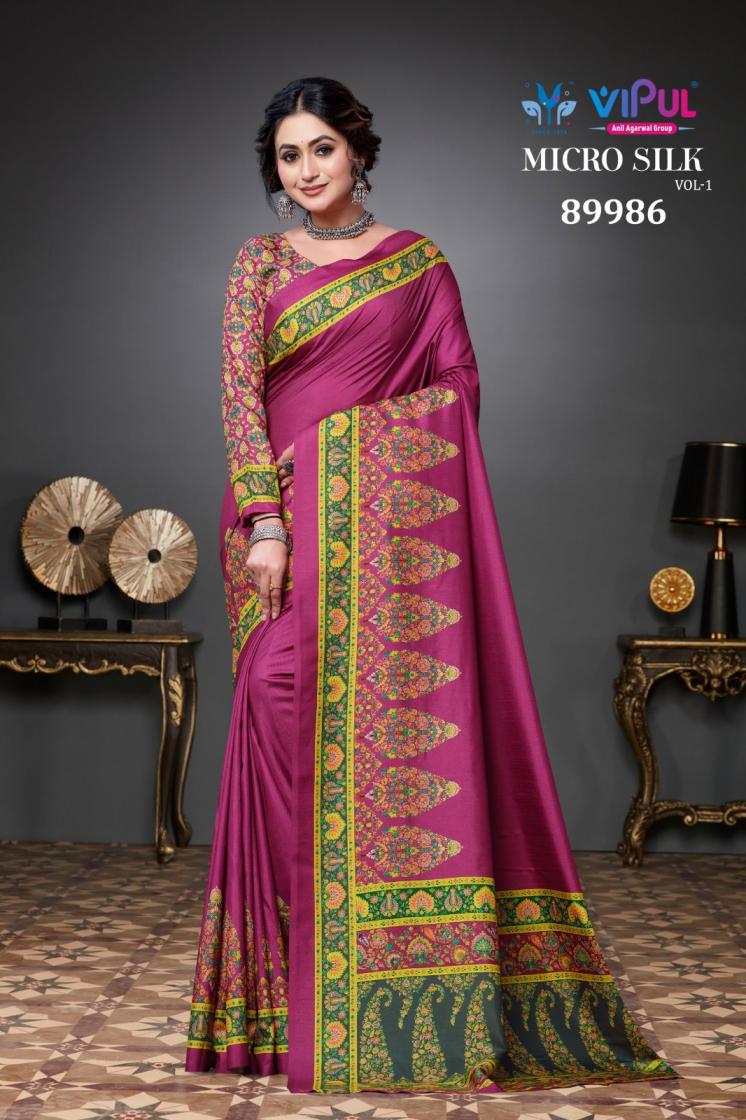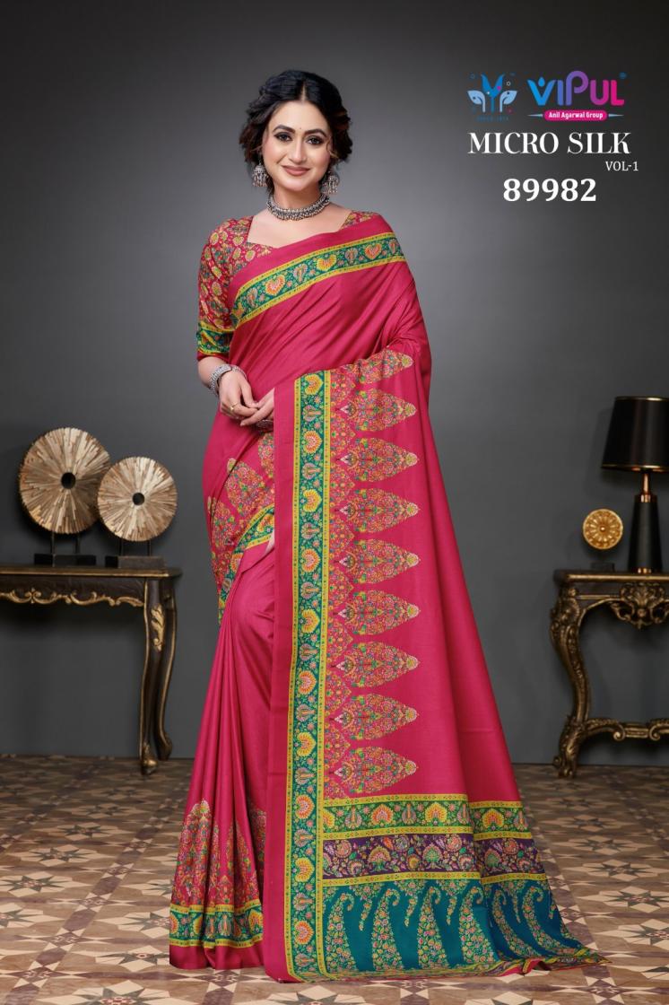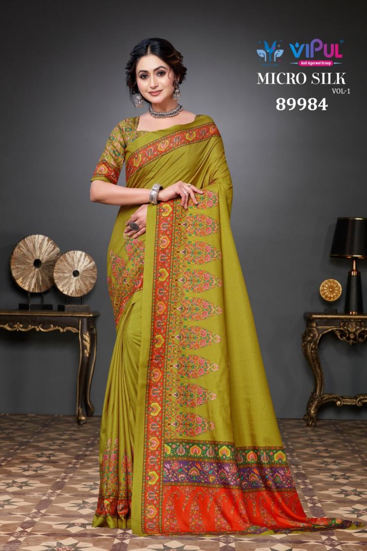 Looking for MICRO SILK VOL 1 BY VIPUL PRESENTS SILK SAREE FOR WOMEN Full Catalouge at Best Price? Buy Now MICRO SILK VOL 1 BY VIPUL PRESENTS SILK SAREE FOR WOMEN at Wholesale Rate of Rs 4392 with Total 6 Pcs from authroized dealer and supplier of Vipul Fashion Brand. Cost of Each piece is just only Rs 732 which is very low and affordable price to resale the product in your retail store. rrgandhi is Surat based Wholesale Supplier & Dealer of Vipul Fashion Brand. Click on Brand name to Know more about Brand's products.