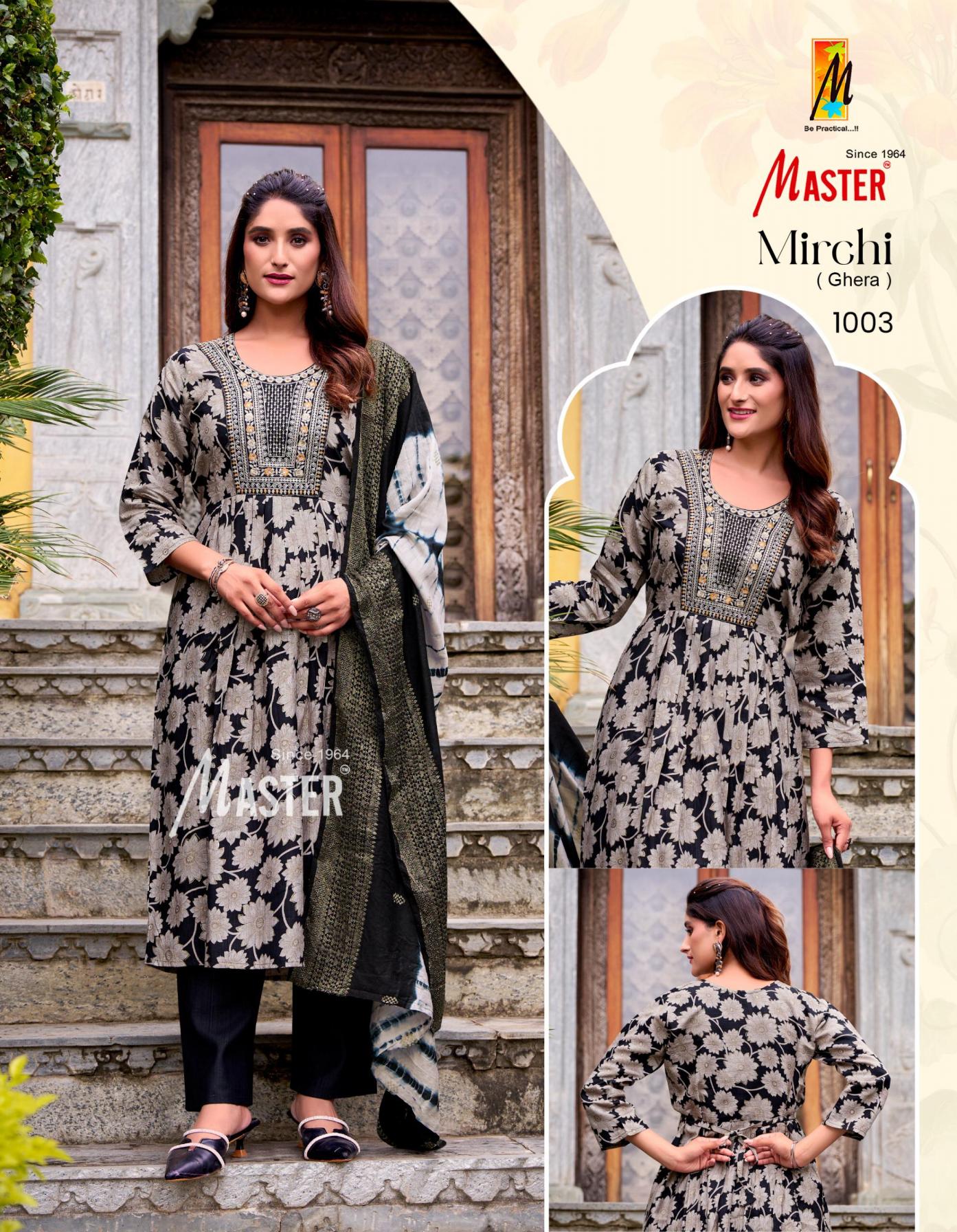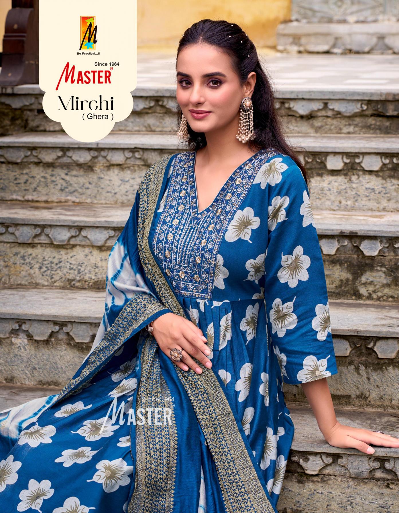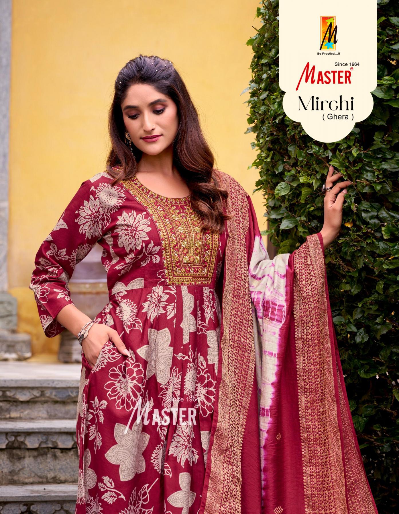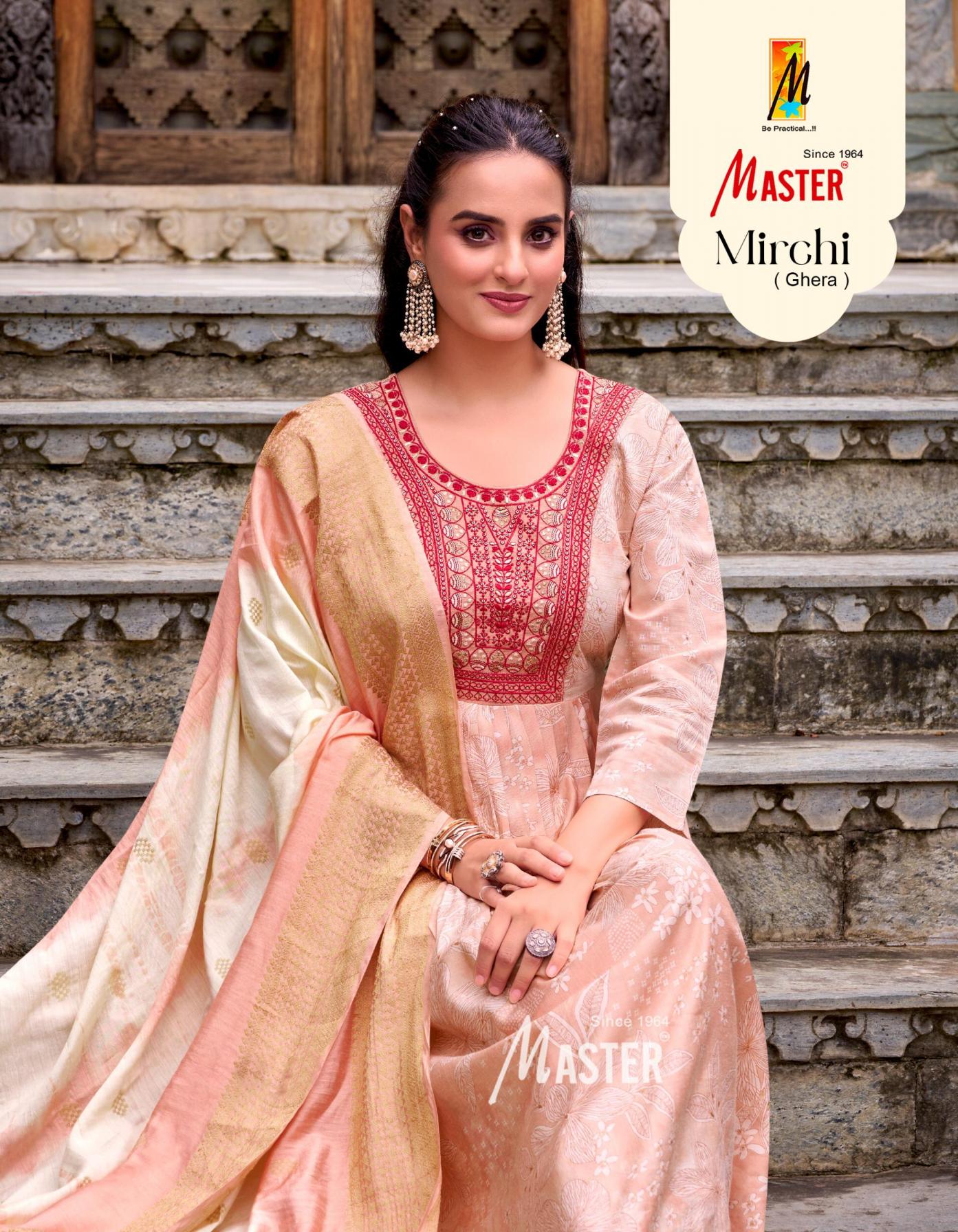 Looking for MIRCHI GHERA VOL 1 BY MASTER READYMADE STYLISH SALWAR KAMEEZ Full Catalouge at Best Price? Buy Now MIRCHI GHERA VOL 1 BY MASTER READYMADE STYLISH SALWAR KAMEEZ at Wholesale Rate of Rs 5240 with Total 8 Pcs from authroized dealer and supplier of Master Kurti Brand. Cost of Each piece is just only Rs 655 which is very low and affordable price to resale the product in your retail store. rrgandhi is Surat based Wholesale Supplier & Dealer of Master Kurti Brand. Click on Brand name to Know more about Brand's products.