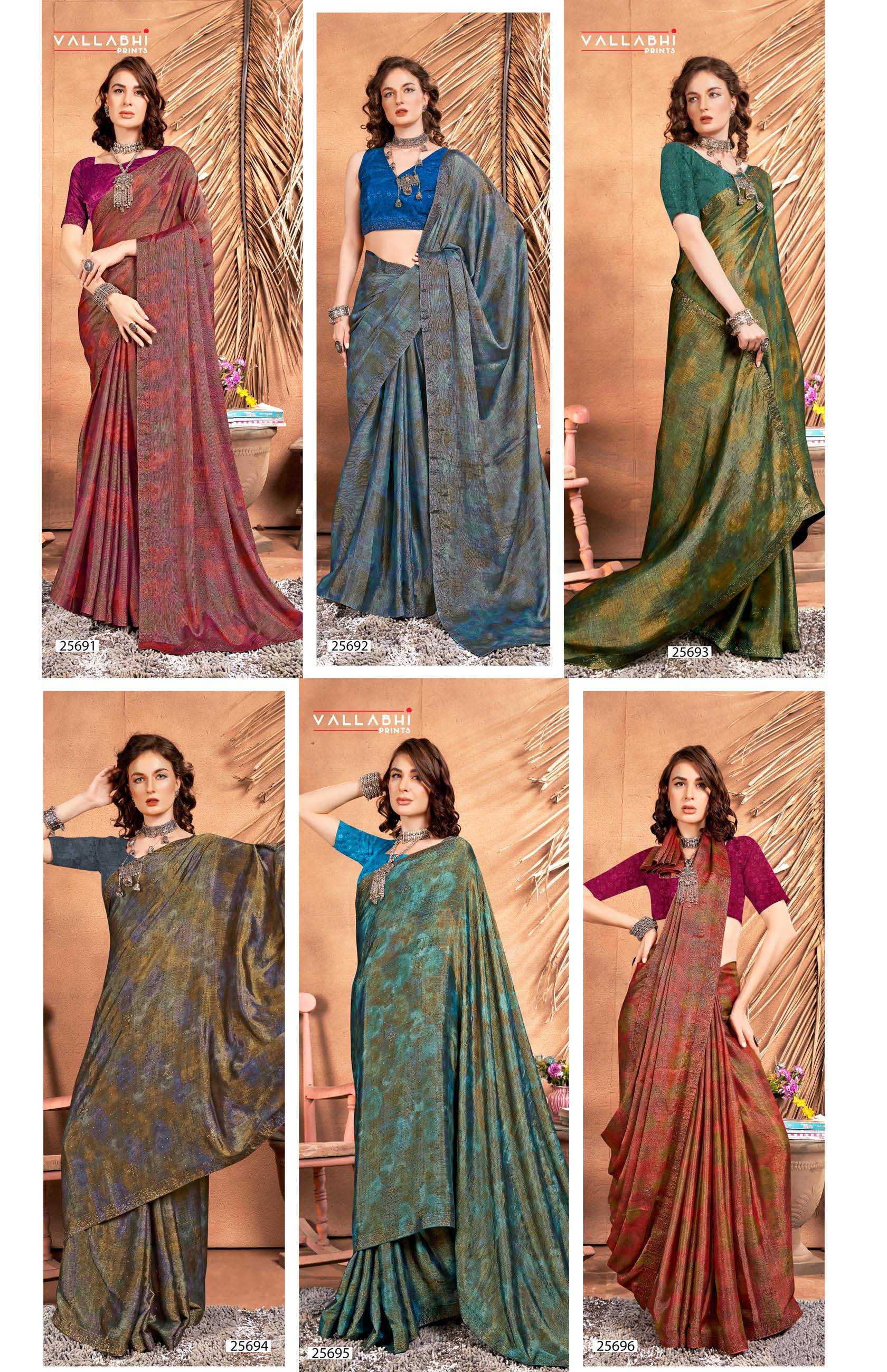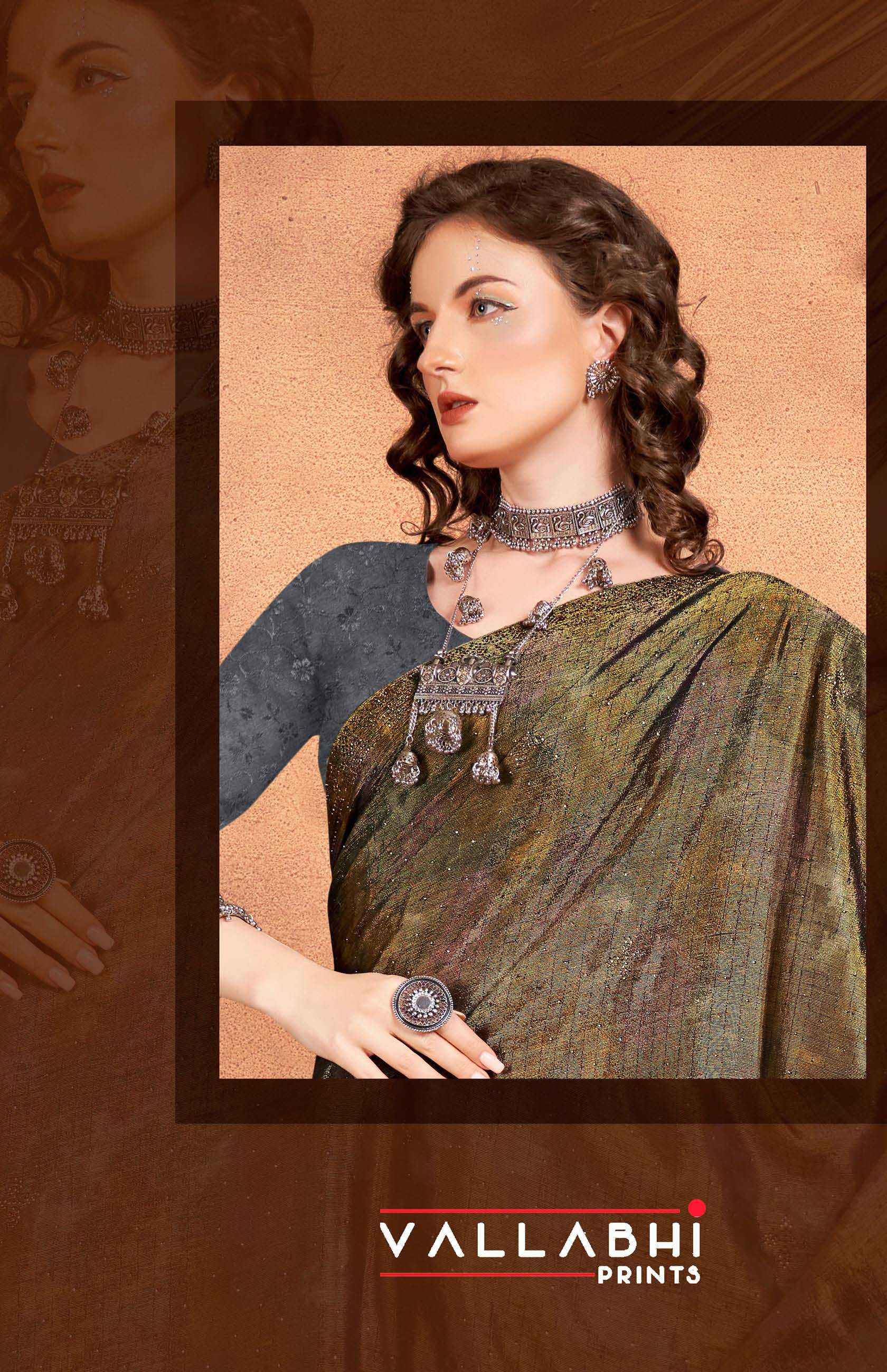 Looking for mishu vol 3 by vallabhi prints new trendy fancy brasso saree wholesaler & exports Full Catalouge at Best Price? Buy Now mishu vol 3 by vallabhi prints new trendy fancy brasso saree wholesaler & exports at Wholesale Rate of Rs 6870 with Total 6 Pcs from authroized dealer and supplier of Vallabhi Prints Brand. Cost of Each piece is just only Rs 1145 which is very low and affordable price to resale the product in your retail store. rrgandhi is Surat based Wholesale Supplier & Dealer of Vallabhi Prints Brand. Click on Brand name to Know more about Brand's products.