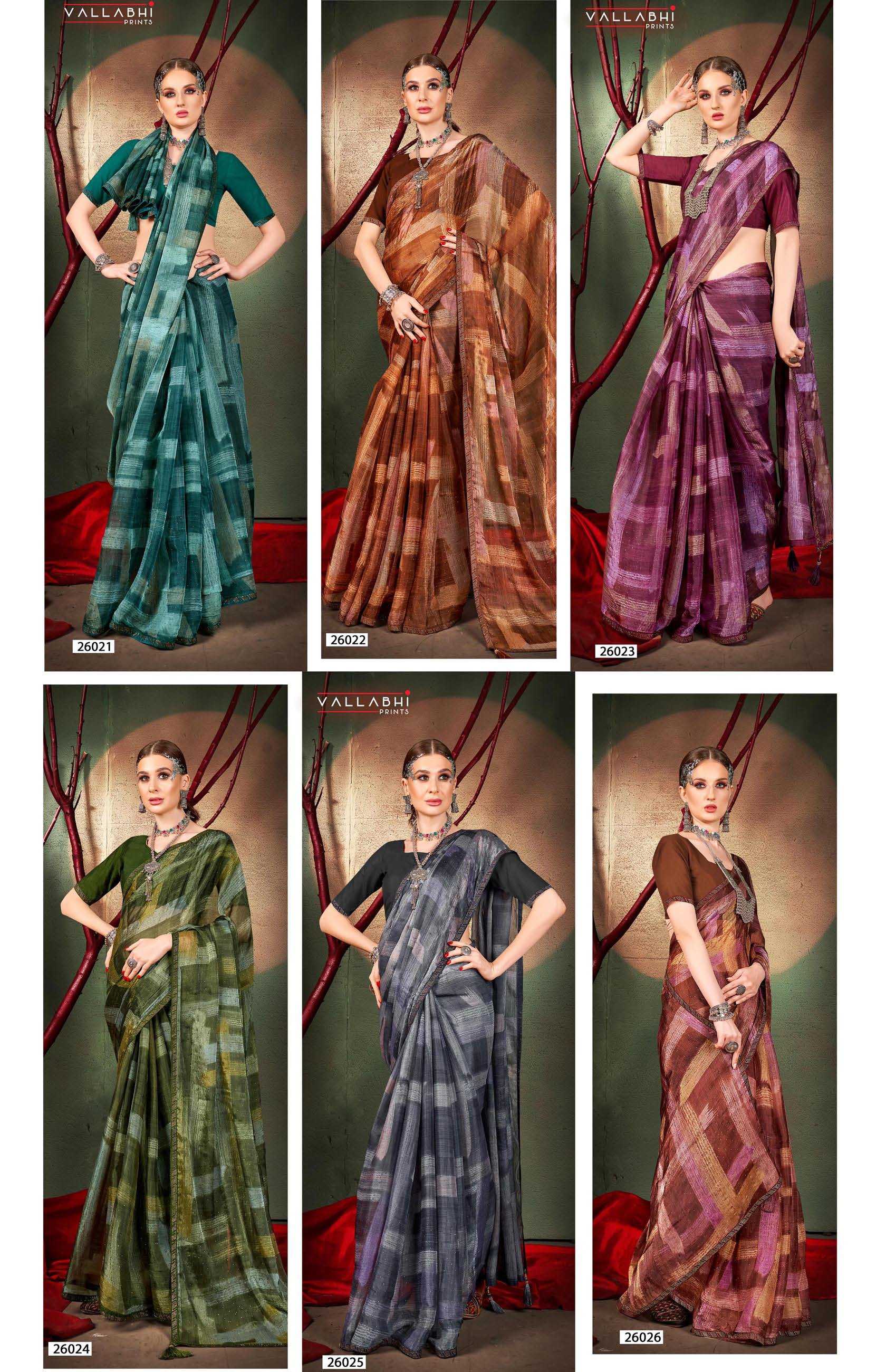 Looking for mishu vol 5 by vallabhi prints fancy saree exports Full Catalouge at Best Price? Buy Now mishu vol 5 by vallabhi prints fancy saree exports at Wholesale Rate of Rs 6870 with Total 6 Pcs from authroized dealer and supplier of Vallabhi Prints Brand. Cost of Each piece is just only Rs 1145 which is very low and affordable price to resale the product in your retail store. rrgandhi is Surat based Wholesale Supplier & Dealer of Vallabhi Prints Brand. Click on Brand name to Know more about Brand's products.