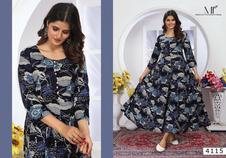 Looking for MOKSH HONEY VOL-1 KURTI- GOWN COMBO SET COLLECTION BY VARDAN Full Catalouge at Best Price? Buy Now MOKSH HONEY VOL-1 KURTI- GOWN COMBO SET COLLECTION BY VARDAN at Wholesale Rate of Rs 5440 with Total 5 Pcs from authroized dealer and supplier of MOKSH INTERNATIONAL Brand. Cost of Each piece is just only Rs 1088 which is very low and affordable price to resale the product in your retail store. rrgandhi is Surat based Wholesale Supplier & Dealer of MOKSH INTERNATIONAL Brand. Click on Brand name to Know more about Brand's products.